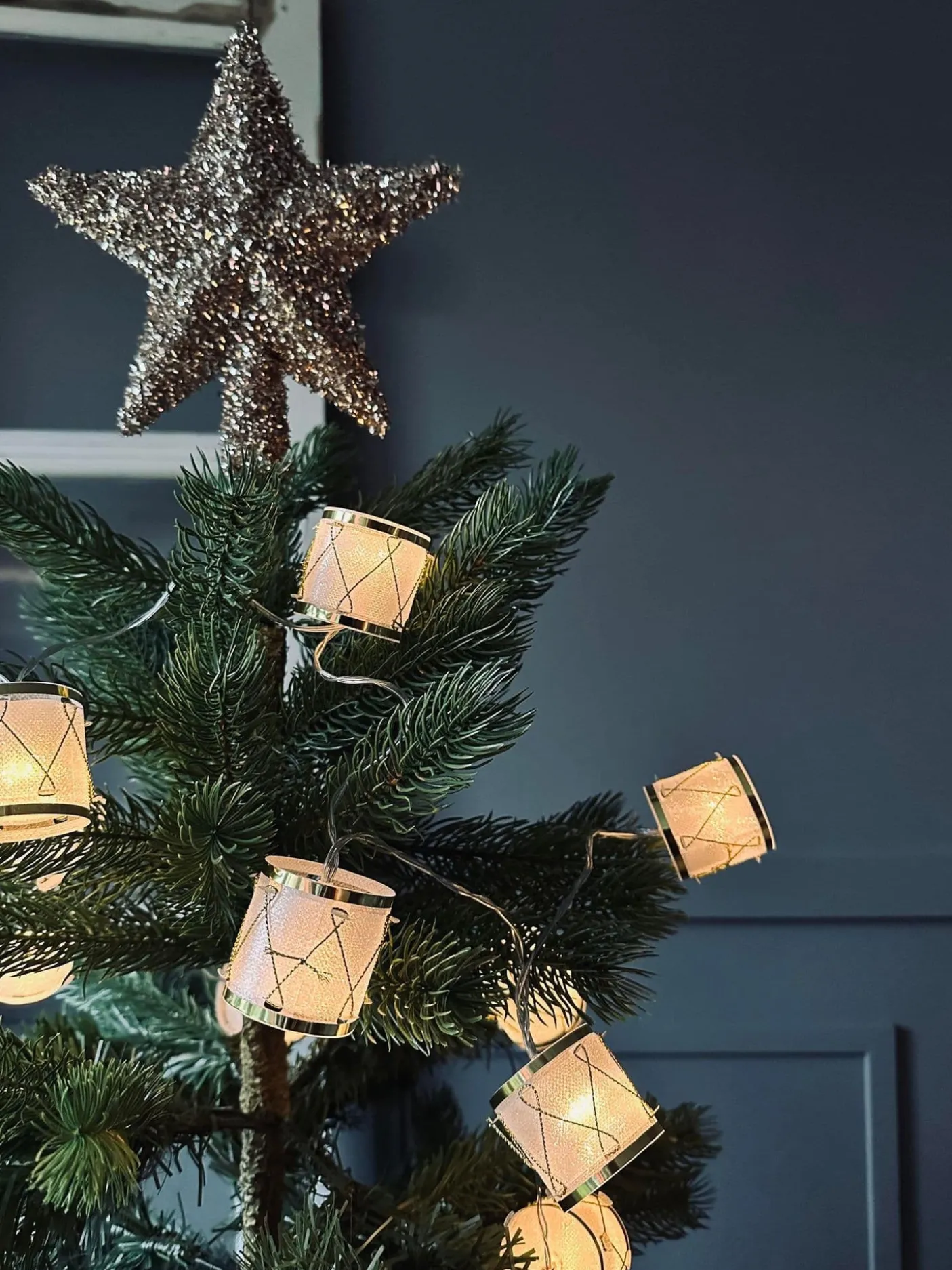 Dekorativ lyskæde med 10 trommer.