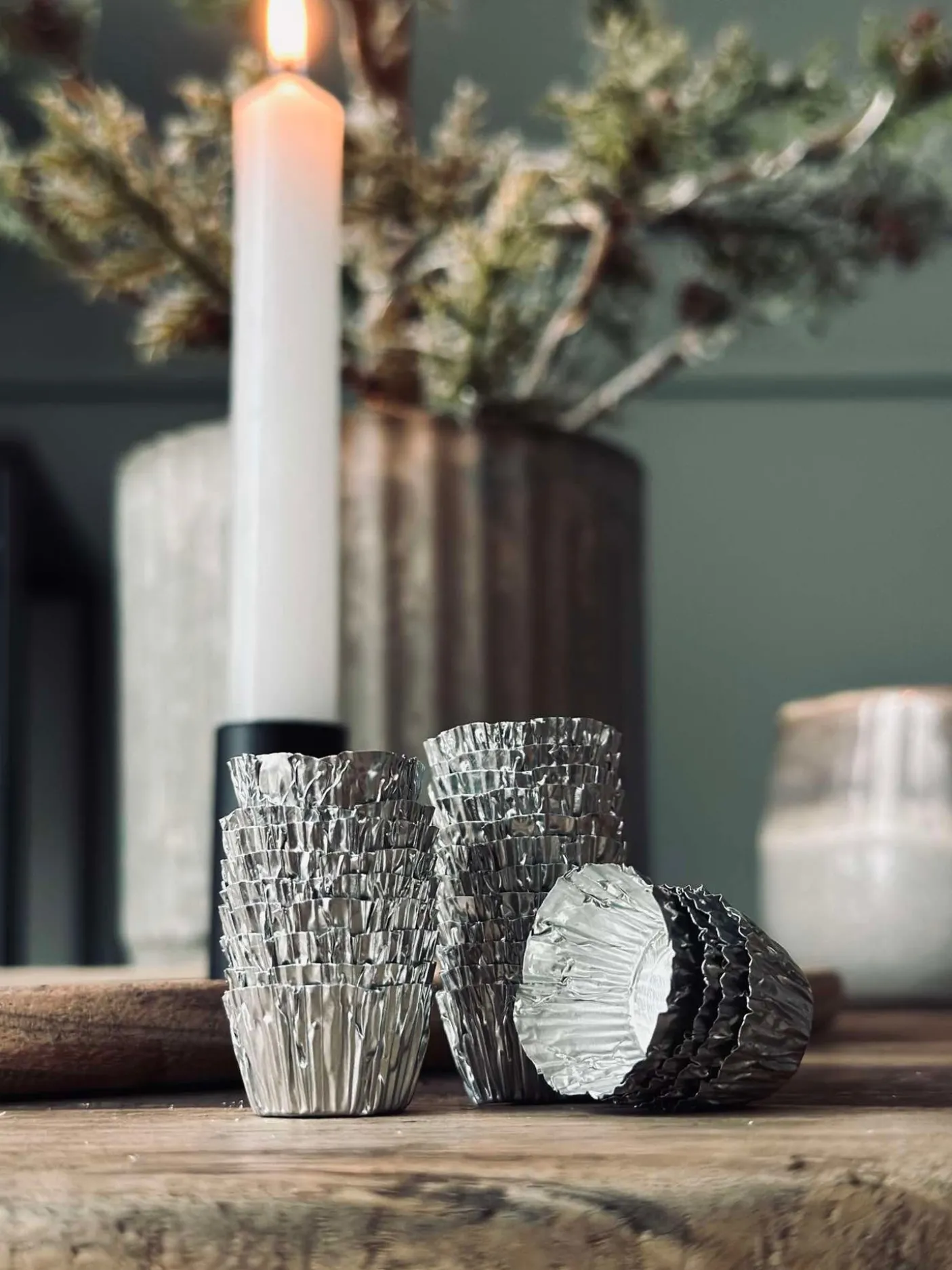 Lysmanchetter til stagelys i aluminium – 60 stk.