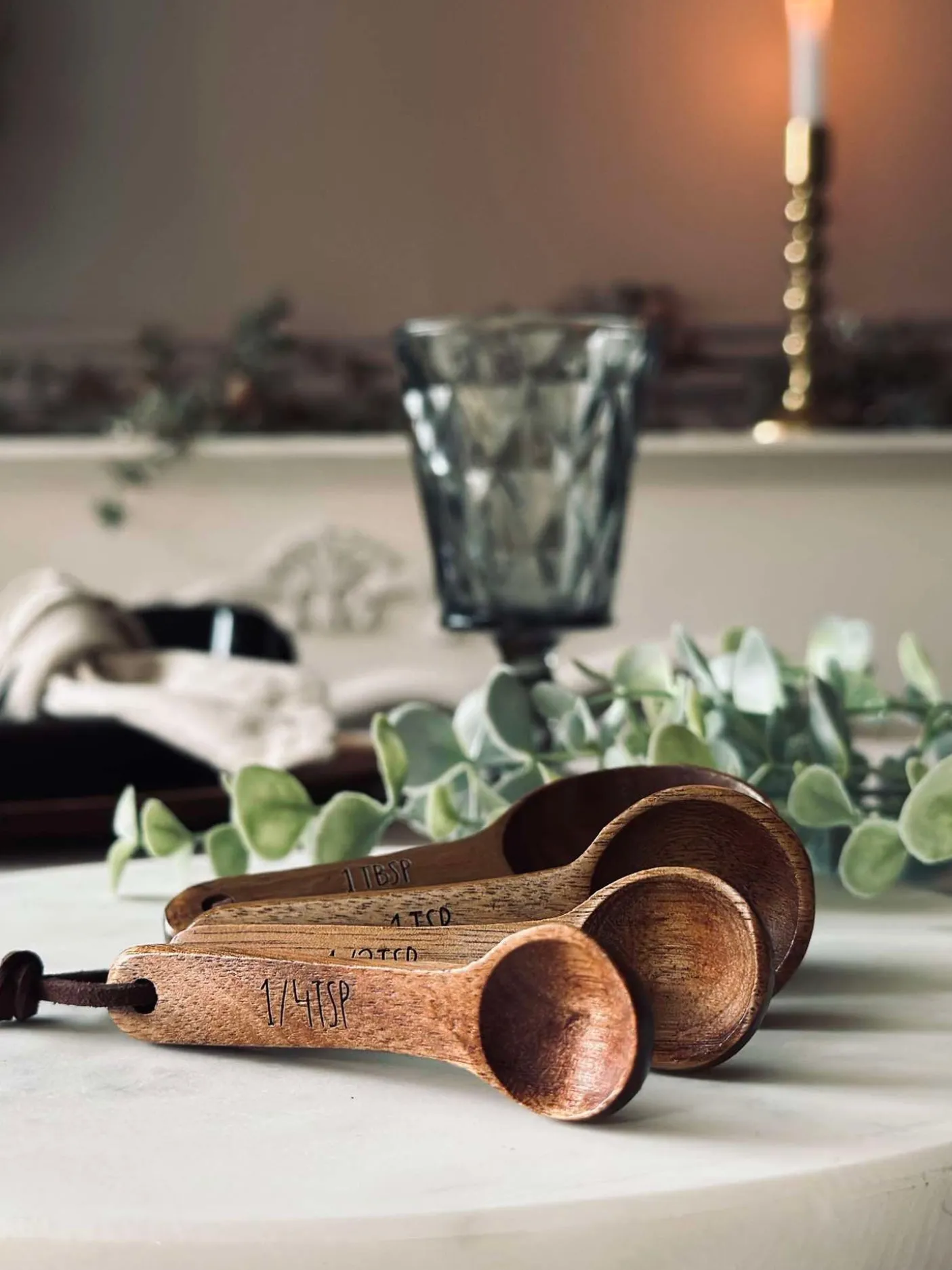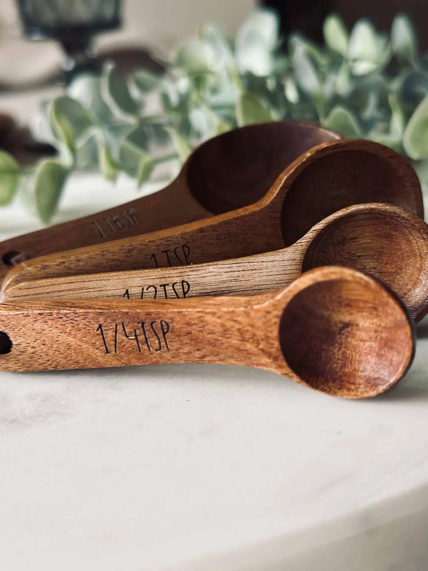 Måleskeer i akacietræ.