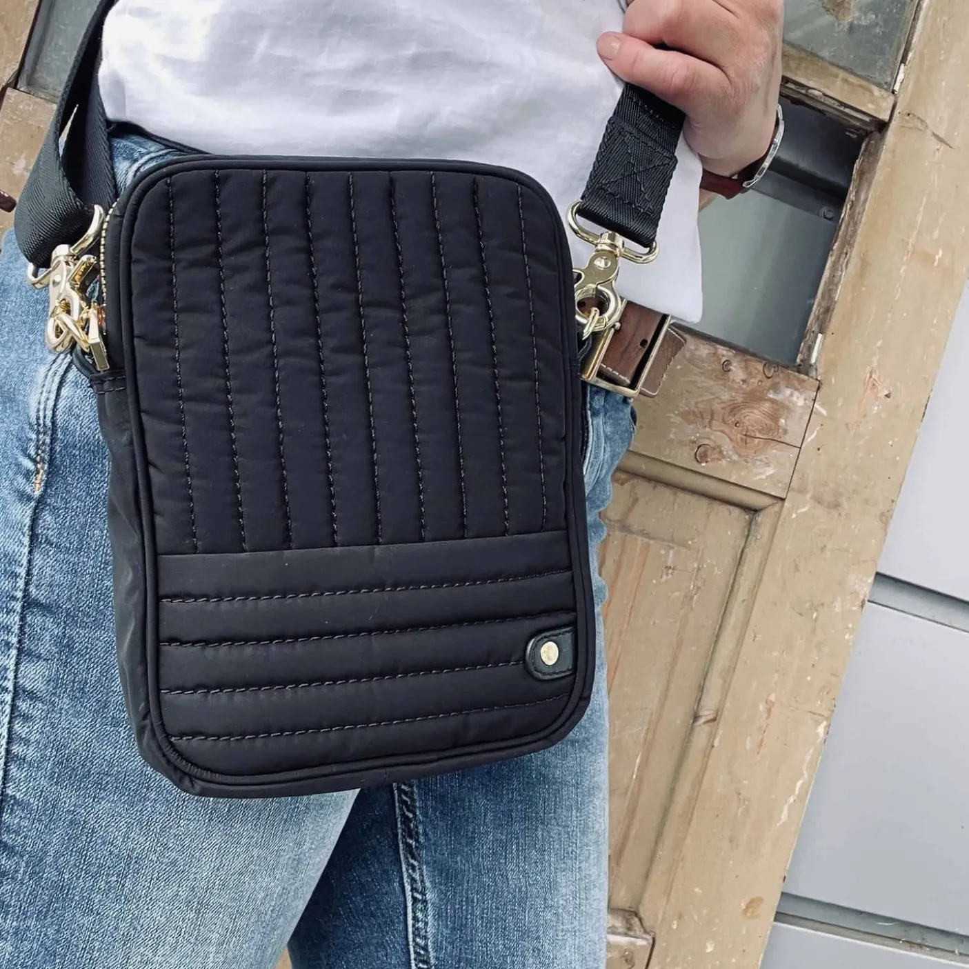 – Lang aftagelig og justerbar crossbody rem medfølger