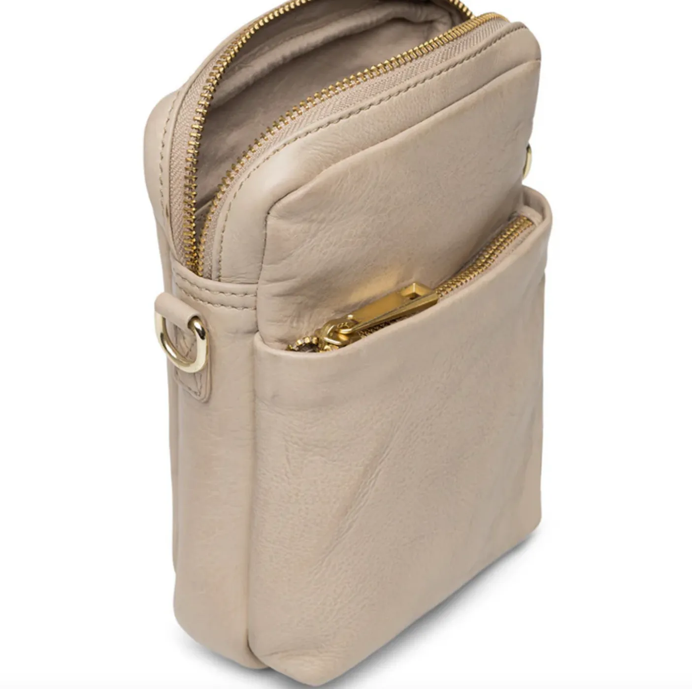 Indvendigt: Mobiltasken har et primært rum med plads til din smartphone, samt rum til dine kreditkort.