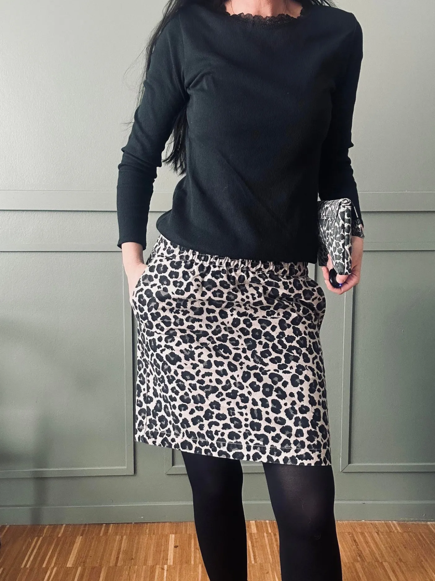 Jane nederdelen i grey leopardprint er en alsidig style til garderoben, der går til over knæet. Modellen har regular fit og er fremstillet i 100% bomuld, hvilket giver et klart udtryk gennem leopardmønstret. Elastisk talje og sidelommer tilføjer praktisk funktion til det stilfulde look.