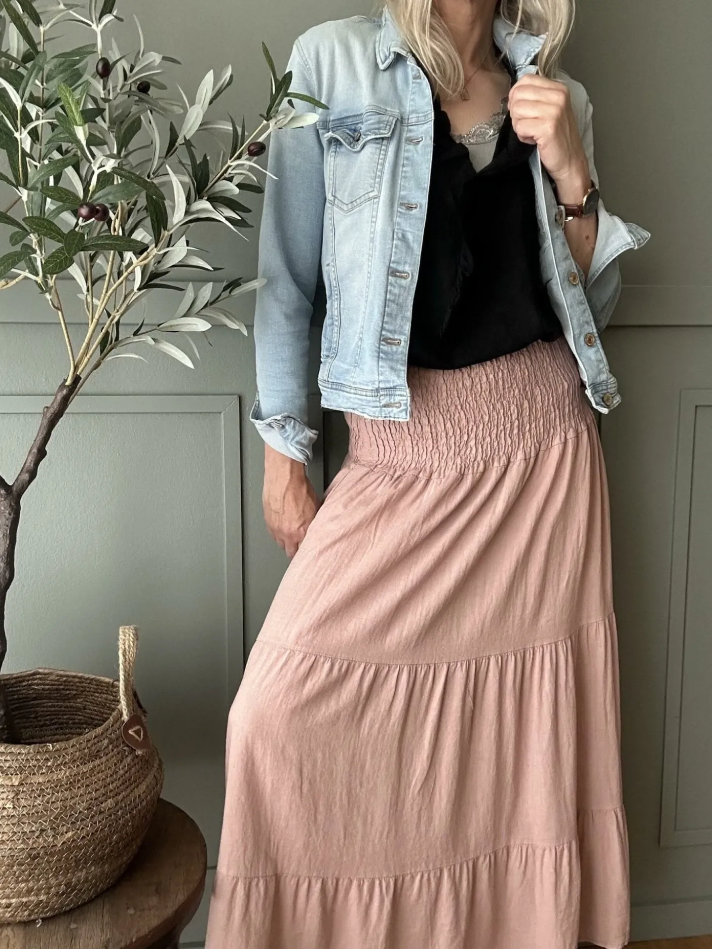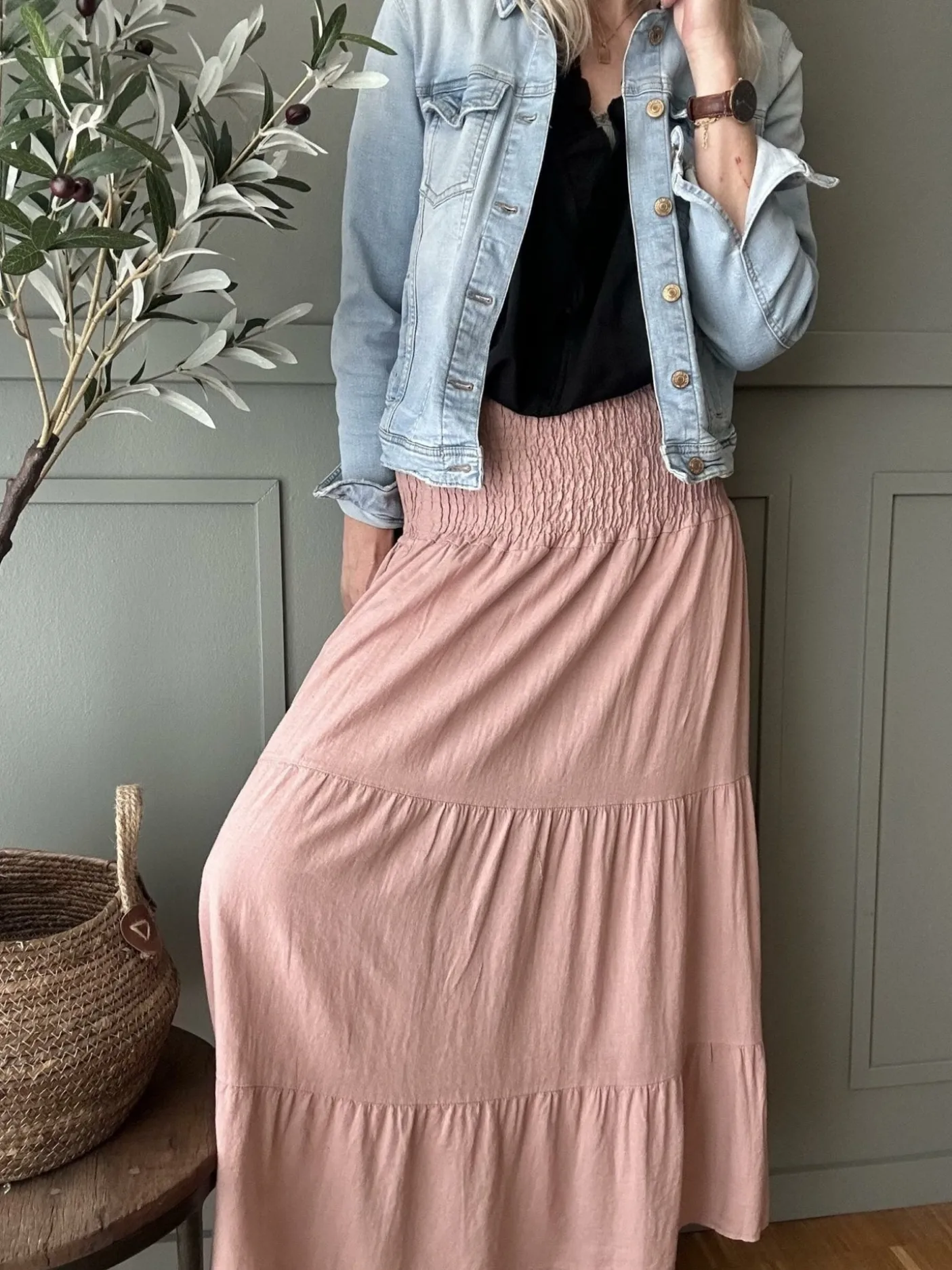 En ensfarvet rosa nederdel med smock i taljen og onesize‑pasform, lavet i 100% viskose. Den lange længde giver en tydelig silhuet uden at gå på kompromis med pasformen. Farven og det ensfarvede mønster skaber et roligt, afdæmpet udtryk der fungerer i sæsonerne forår, sommer og efterår.