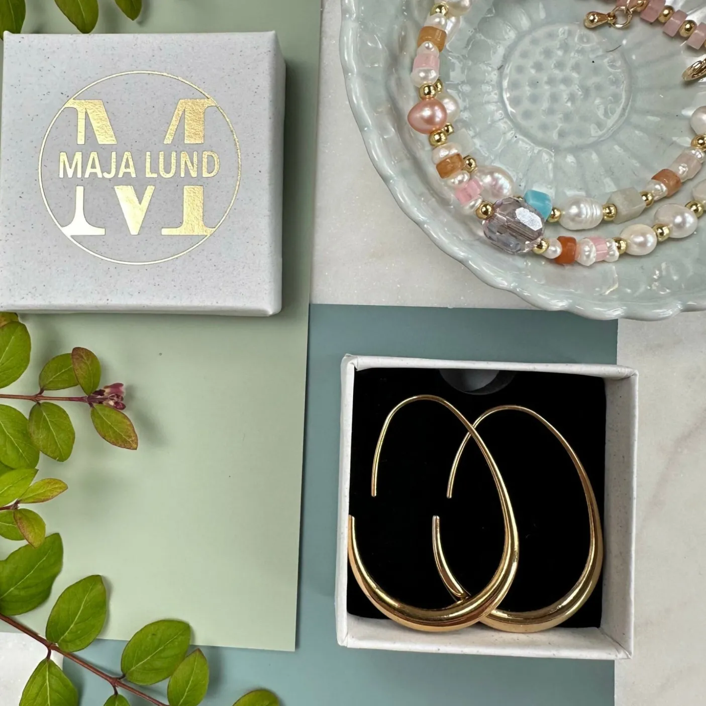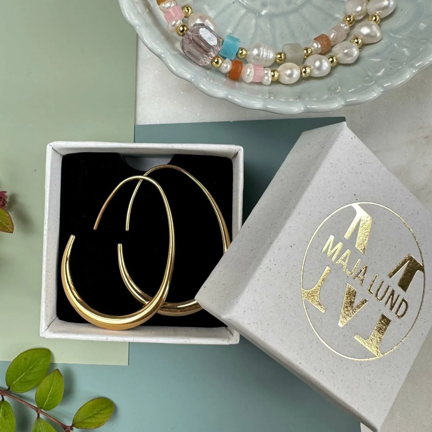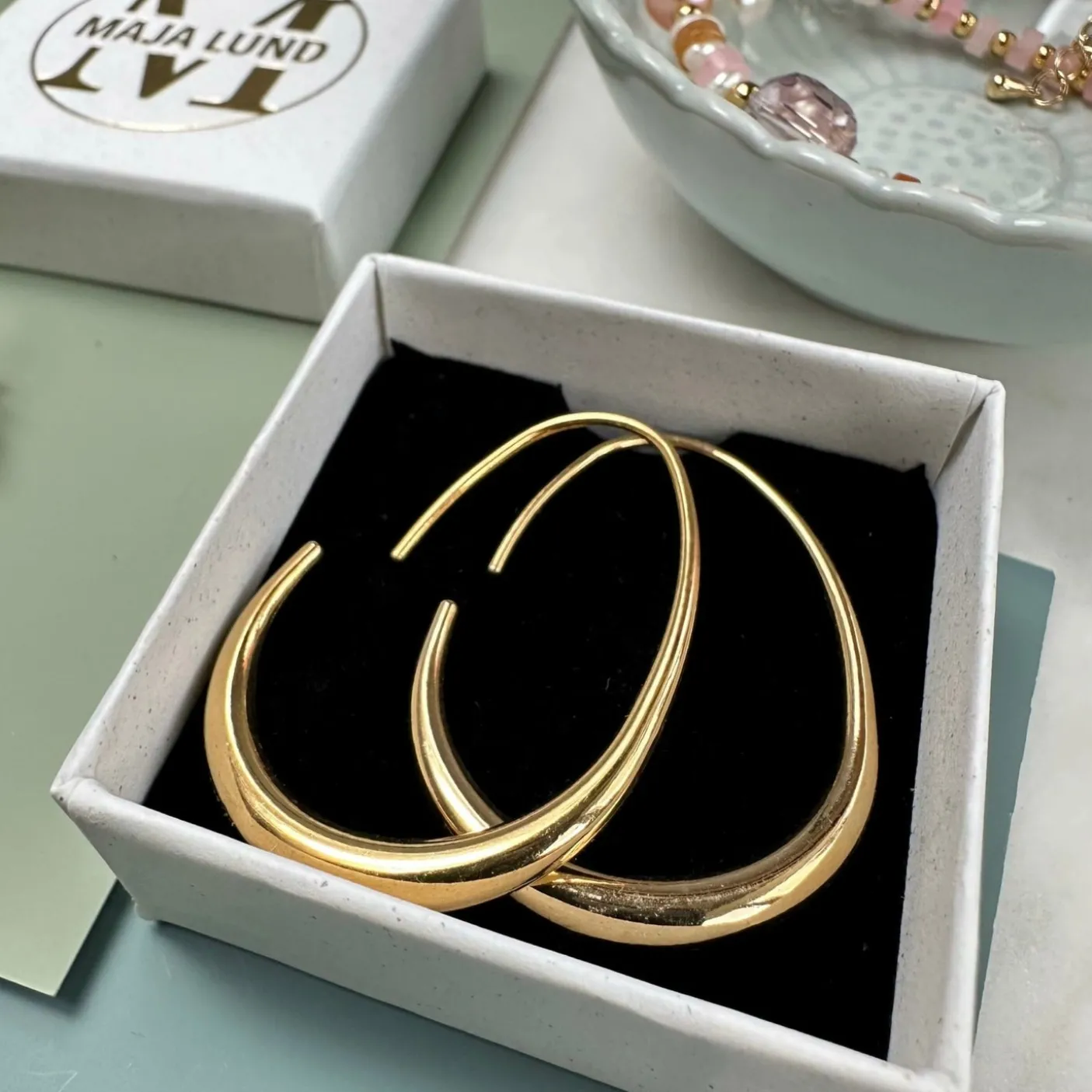 De er vandfaste, så glemmer du lige at tage dem af når du skal i bad, så fortvivl ikke. Det kan de nemlig sagtens holde til. Øreringene er fremstillet i rustfrit stål og belagt med 18k guld.