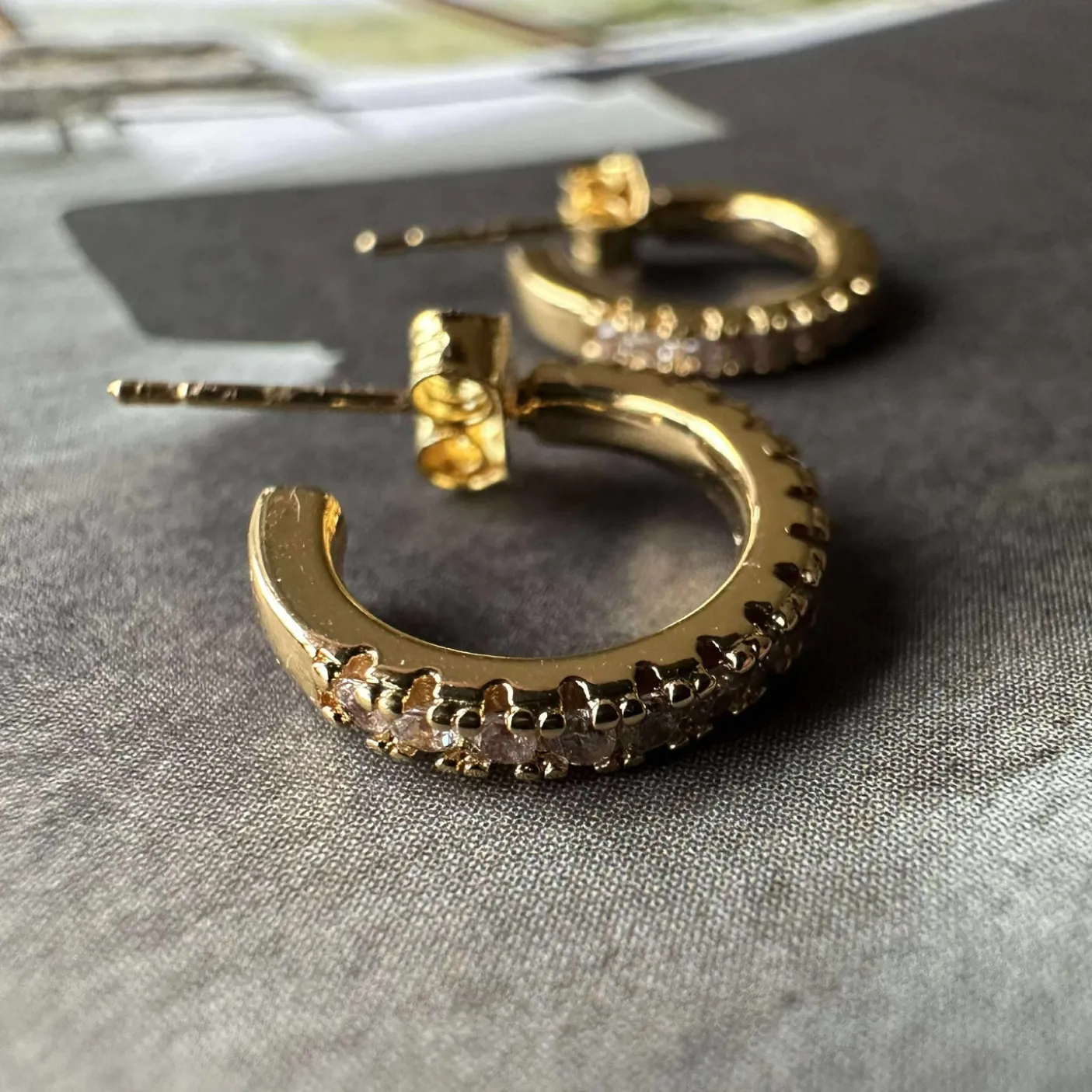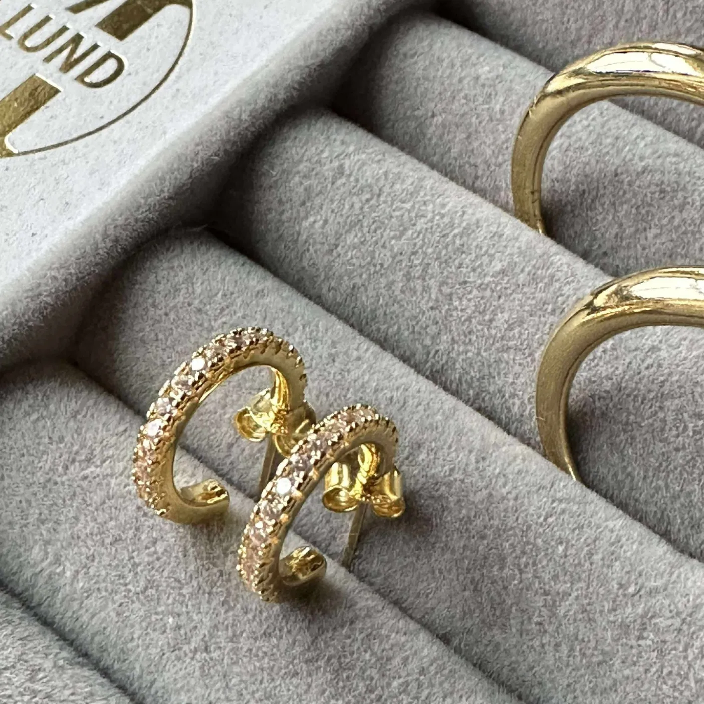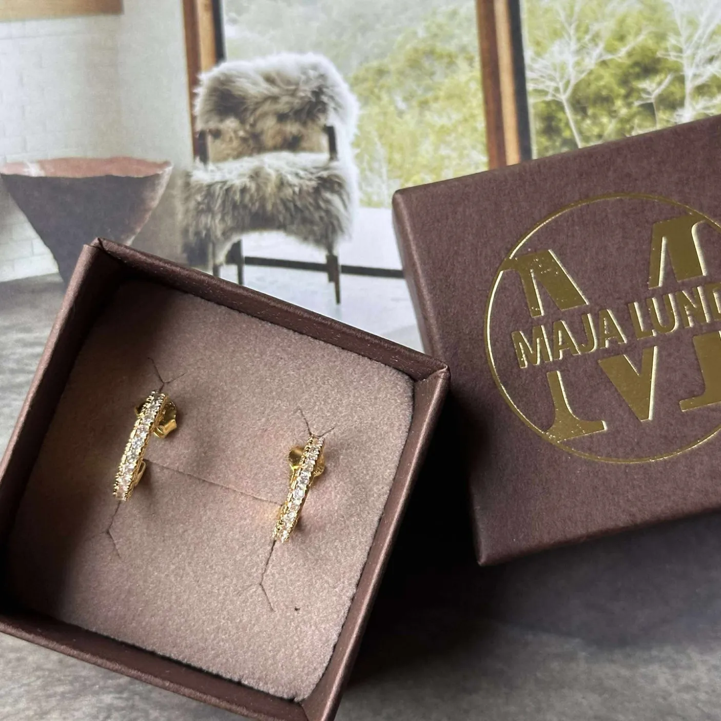 Smukke og klassiske øreringe , isat fine CZ Zirkoner i klar. De er gode til hverdag og så fine at mixe med f.eks. GIA ørestikker, som vi har i forskellige farver. Øreringene er belagt med en 18k guld-forgyldning.