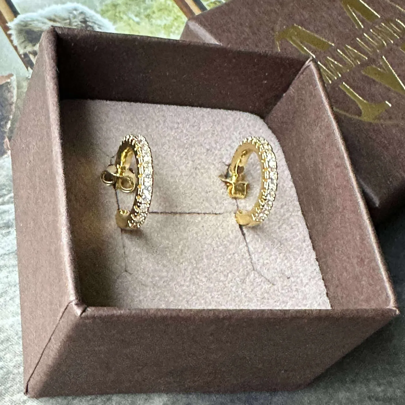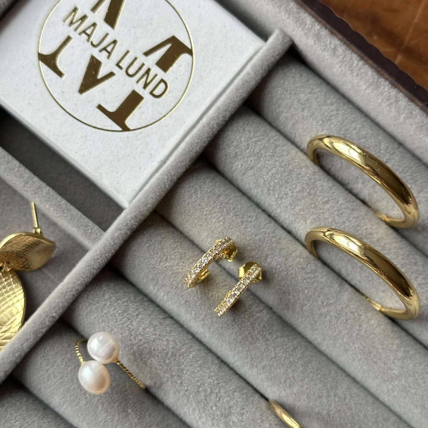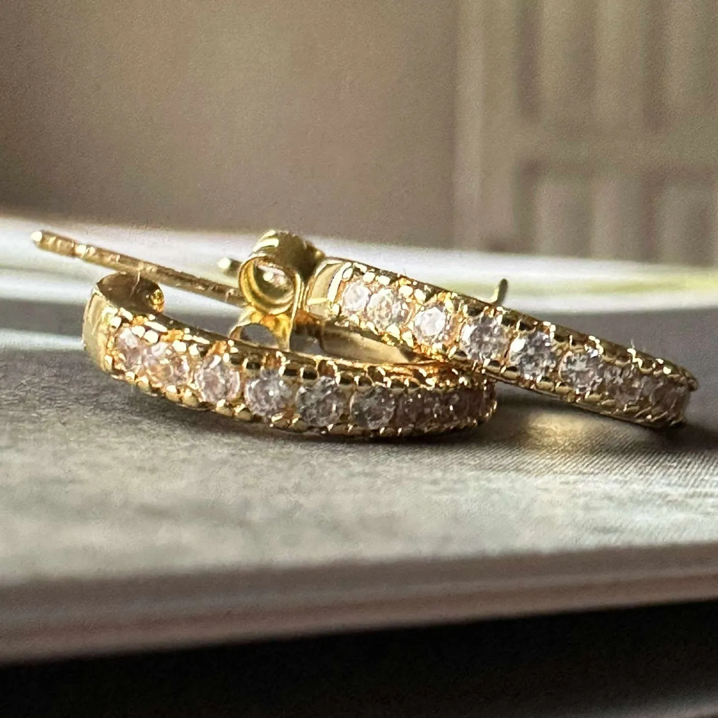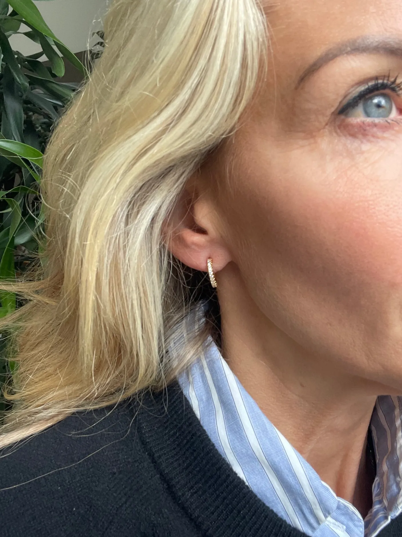 Smukke og klassiske øreringe , isat fine CZ Zirkoner i klar. De er gode til hverdag og så fine at mixe med f.eks. GIA ørestikker, som vi har i forskellige farver. Øreringene er belagt med en 18k guld-forgyldning.