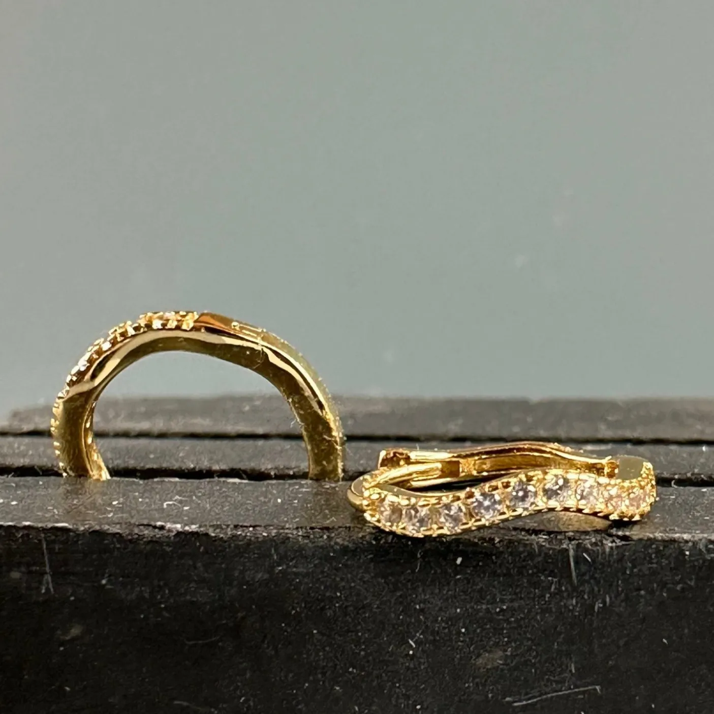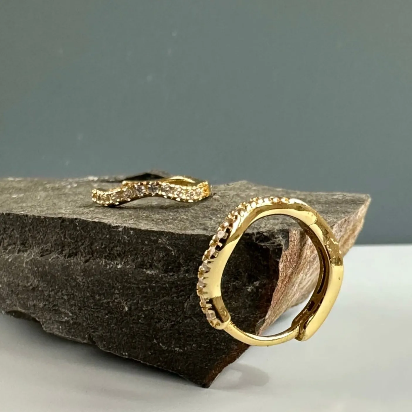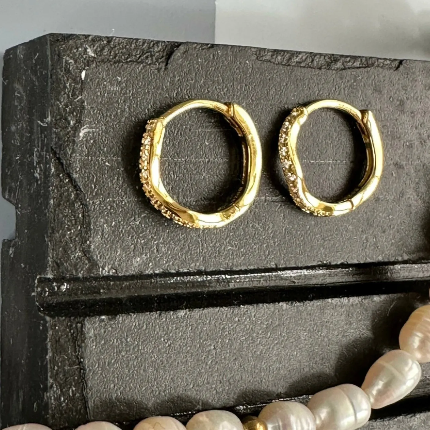 Hoops i wave design med CZ Zirkoner, super fine og fantastiske til at kombinere med flere hoops op ad øret eller med små ørestikker som f.eks. vores GIA serie.