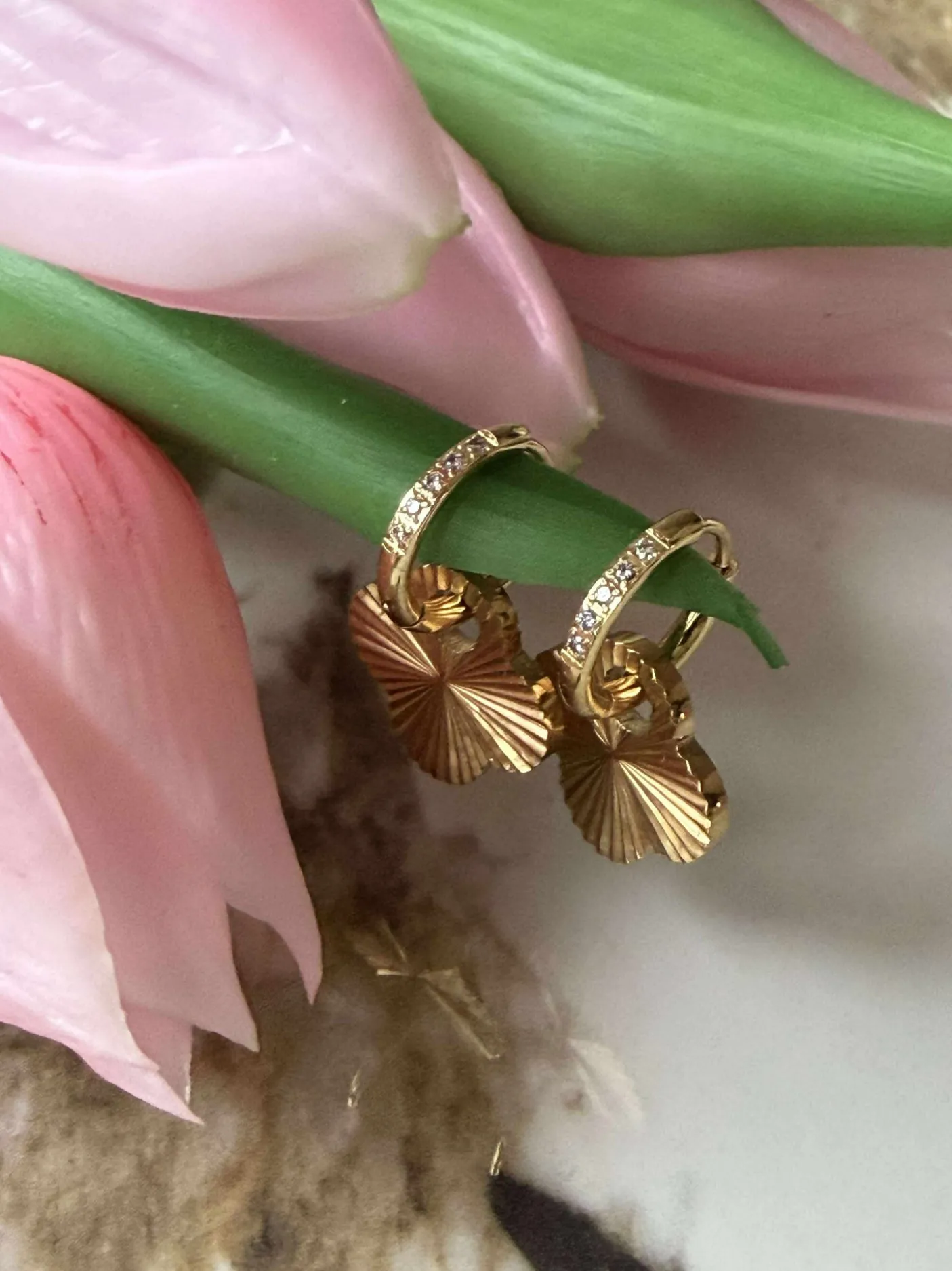Den forgyldte overflade giver et varmt, gyldent skær, der fremhæver øreringens fine form uden at være prangende.