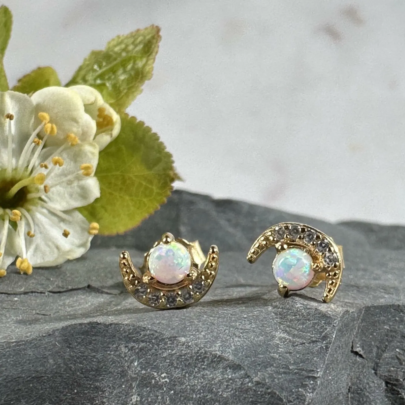 I midten sidder en flot månesten, omkranset af smukke CZ Zirkoner.