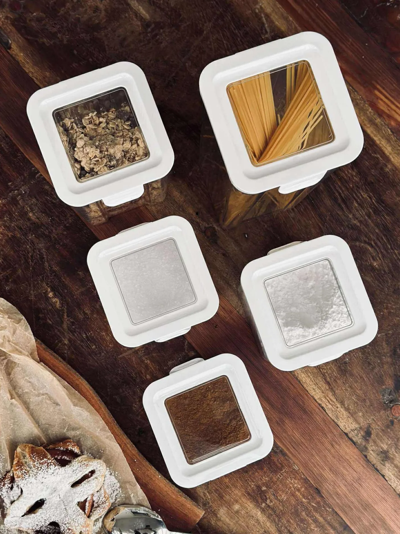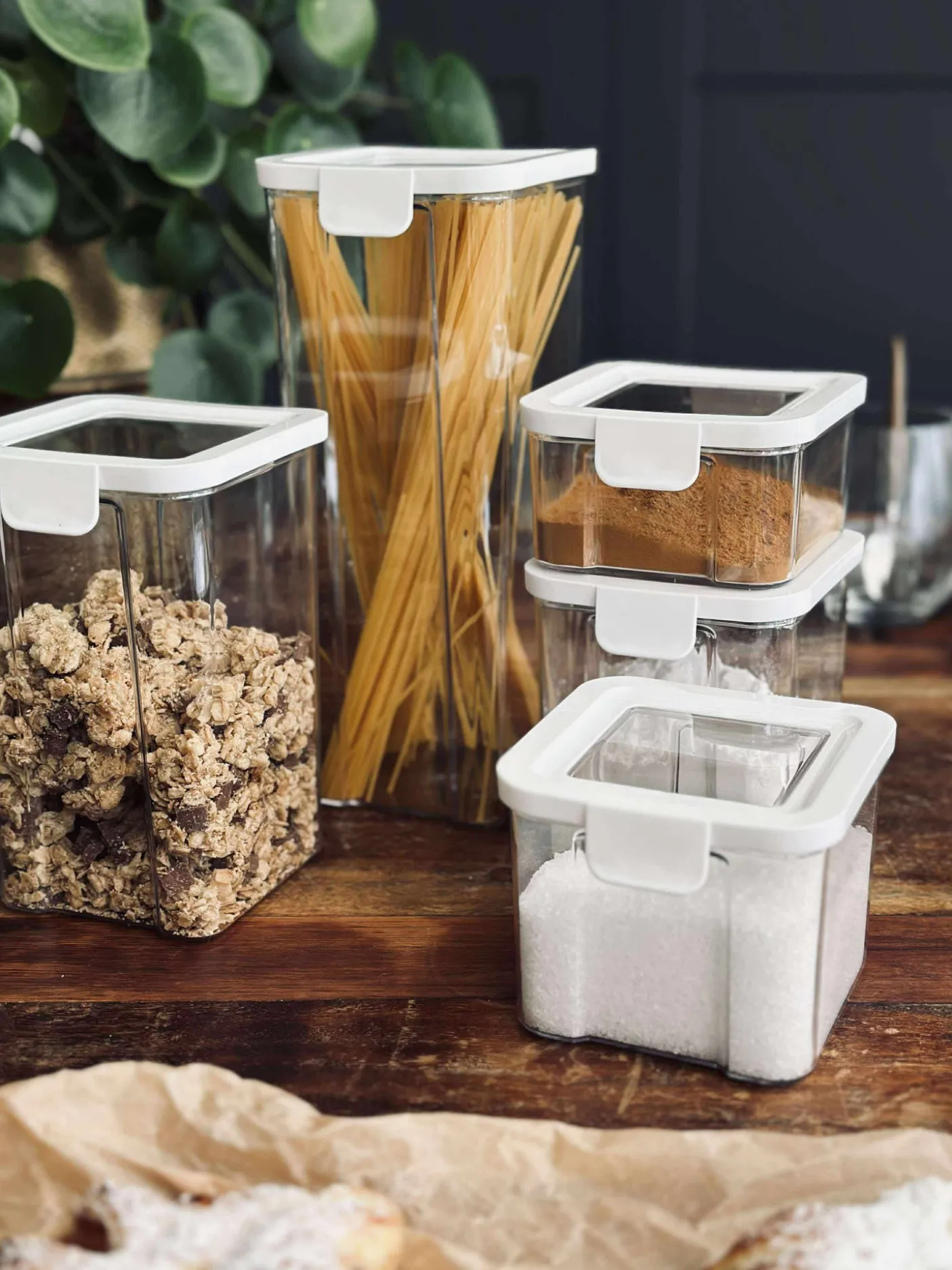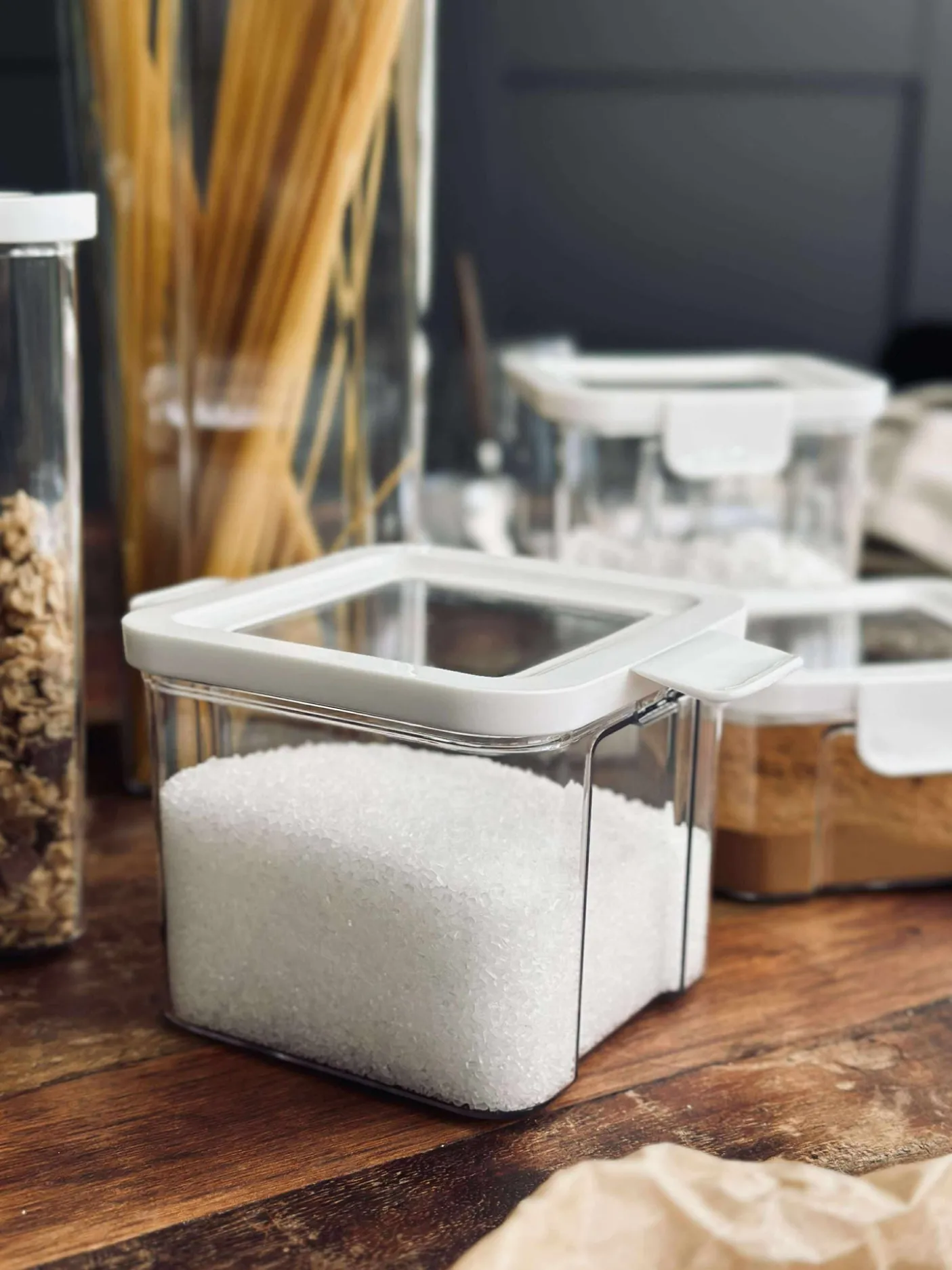 Opbevaringsbøtter med lufttæt låg til fødevarer.