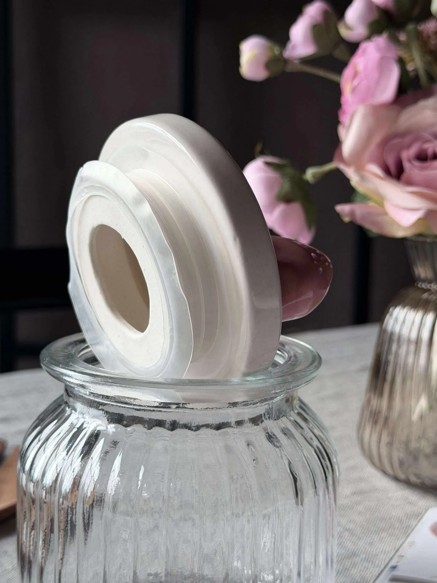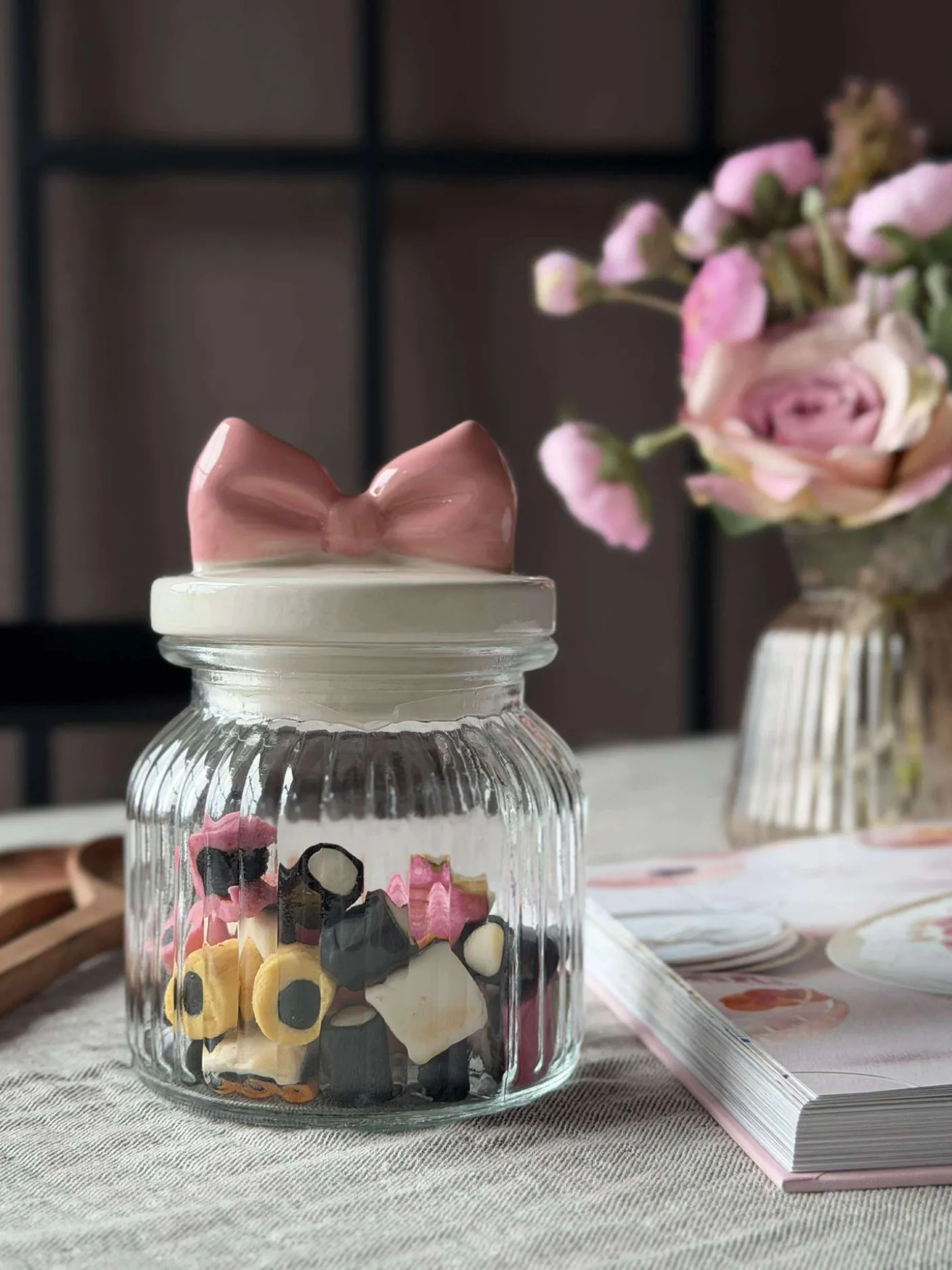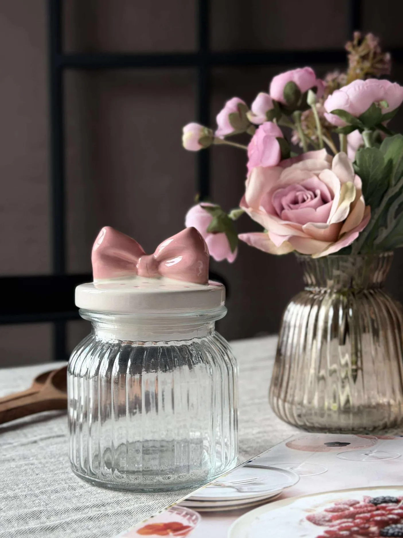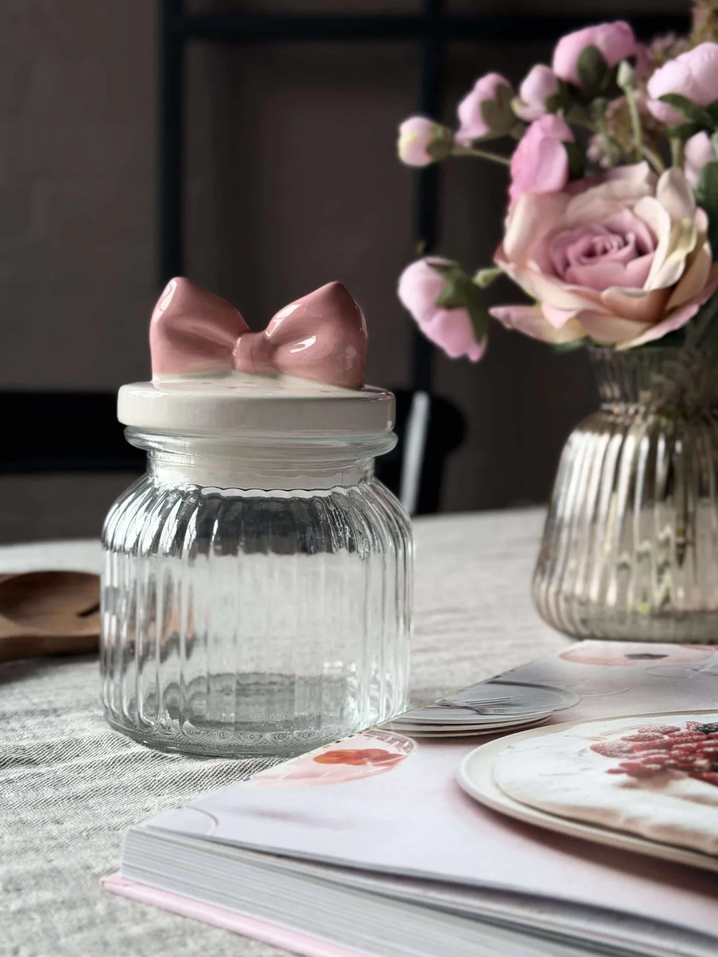 Sødeste krukke med sløjfe låg.