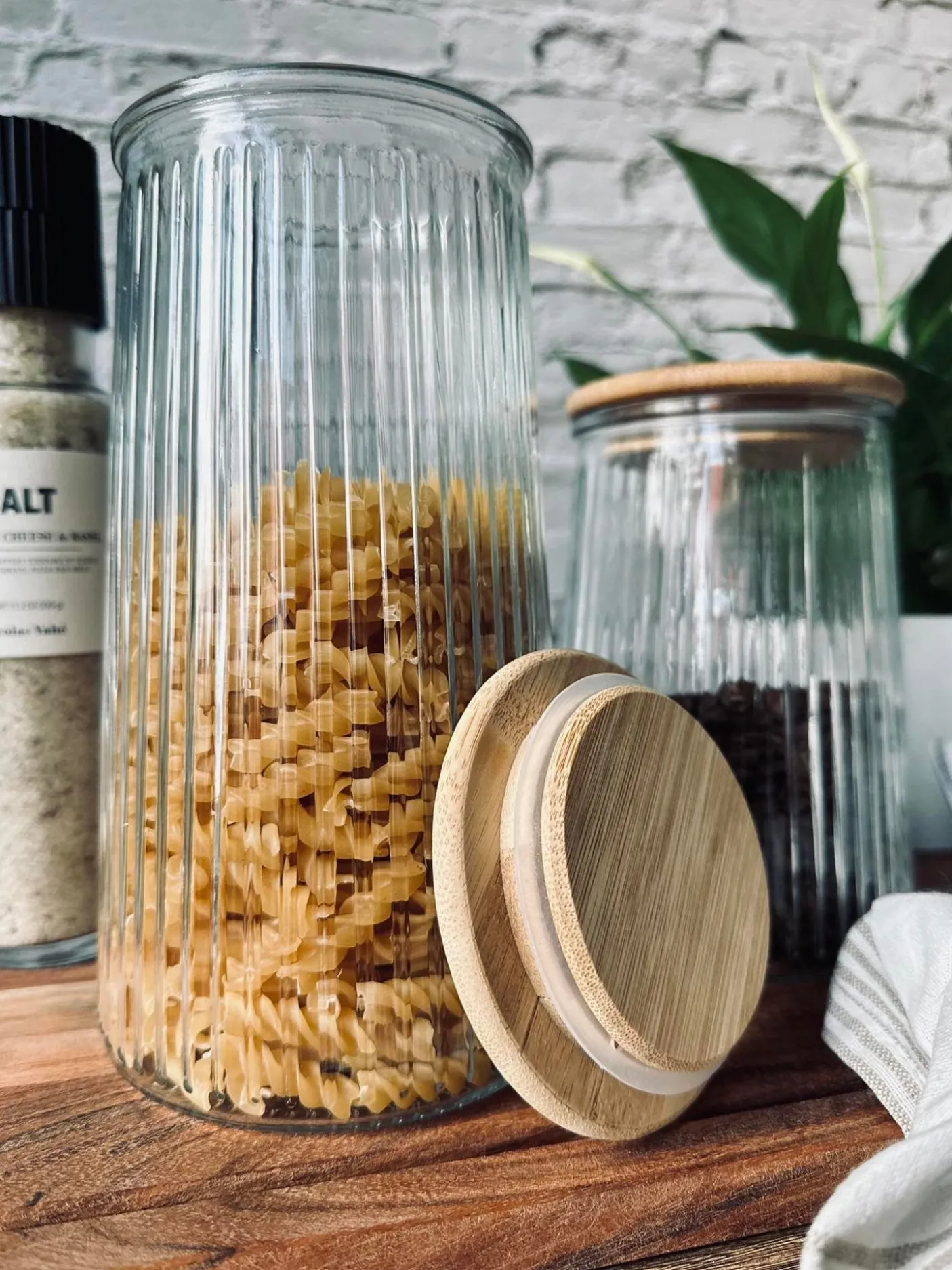 Opbevaringsglas m. trælåg.