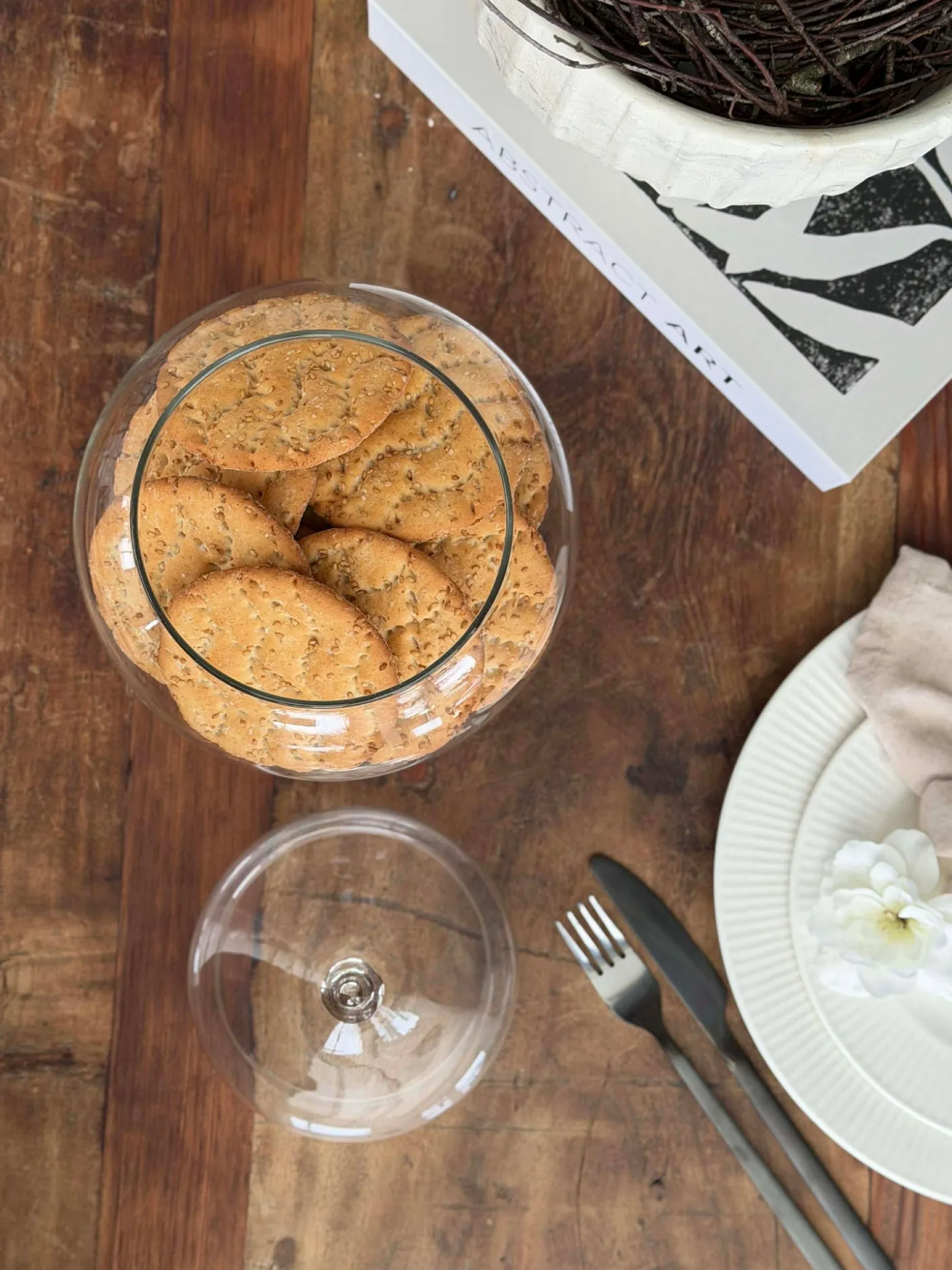 Opbevaringsglas på fod er et elegant opbevaringsglas med låg til køkkenet. Det enkle udtryk gør det let at have stående fremme, samtidig med at indholdet er samlet og overskueligt. Glasset er håndlavet, og der kan derfor forekomme variationer fra glas til glas.