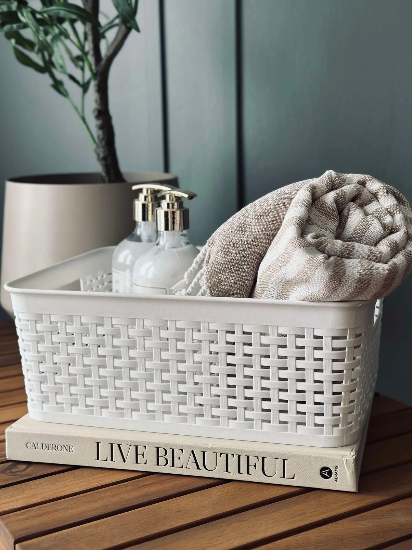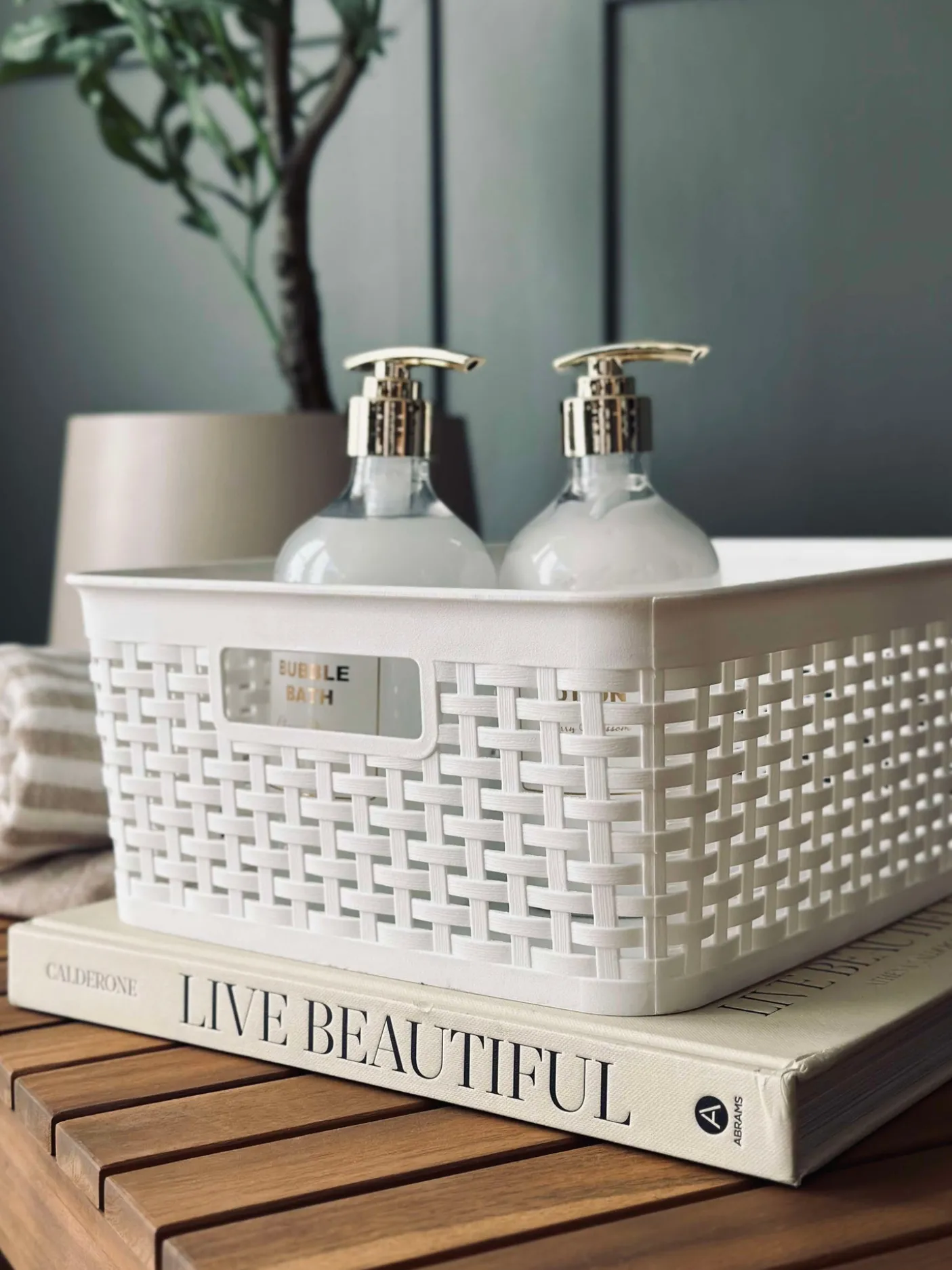 Opbevaringskasse med flet mønster.