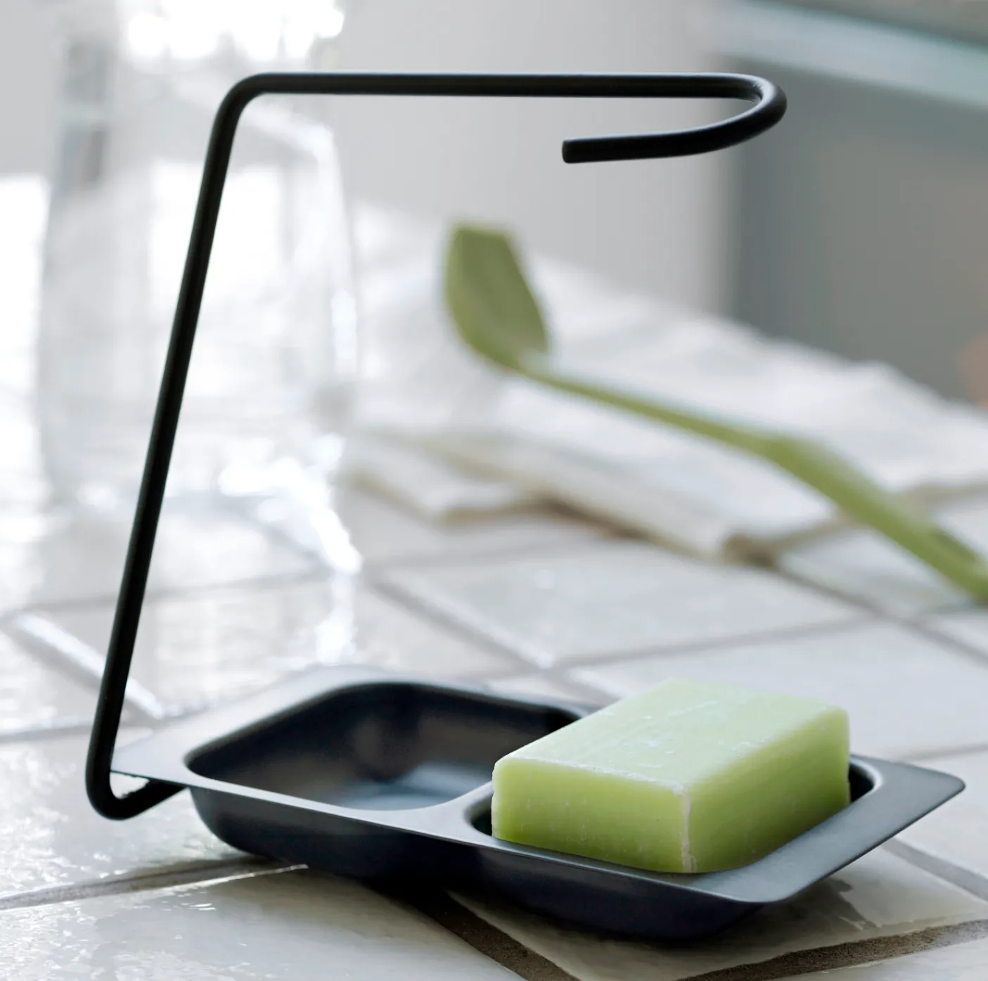 Denne organizer har 2 rum i bunden og en holder til klude til at tørre eller til at hvile børsten.