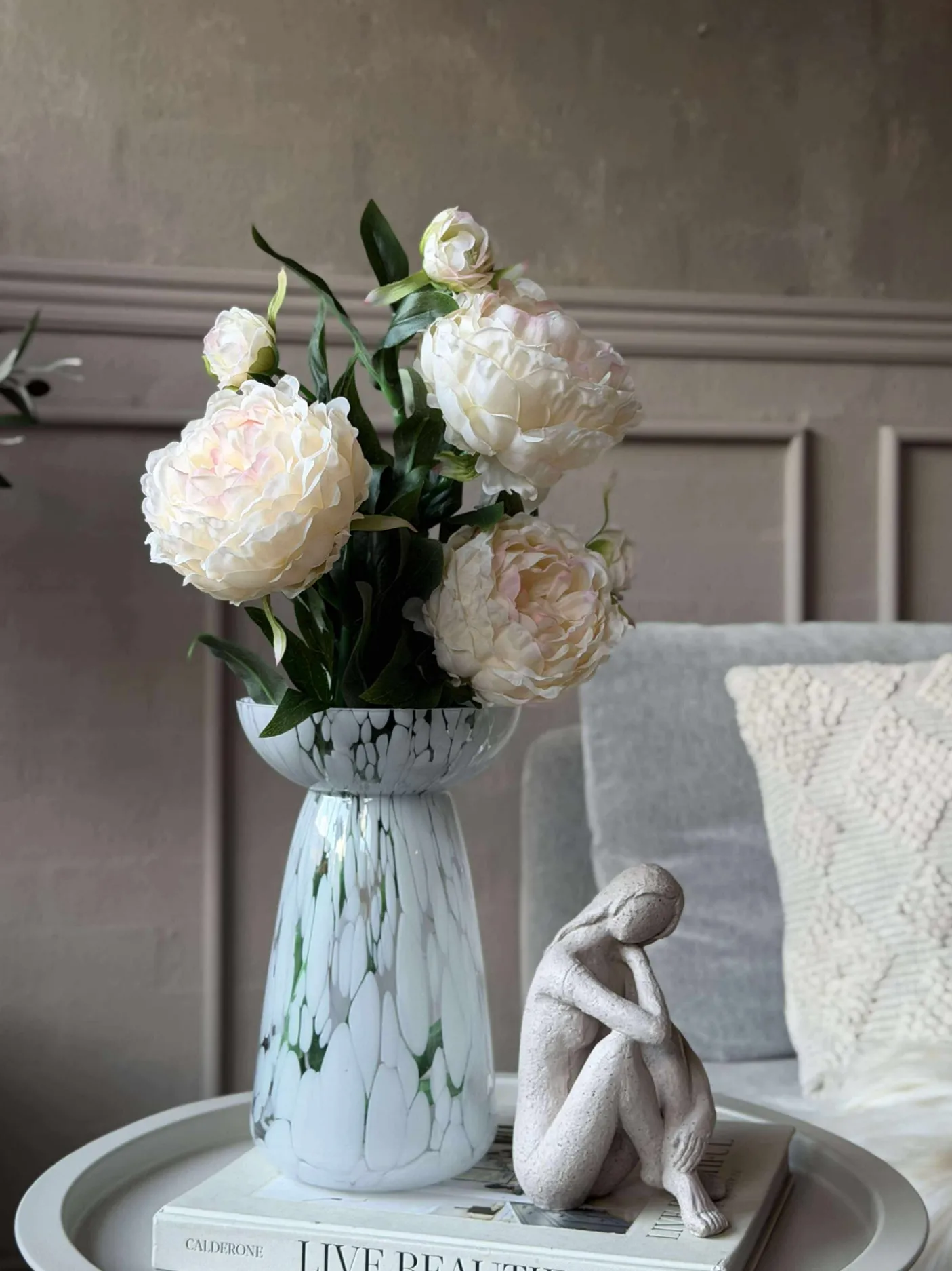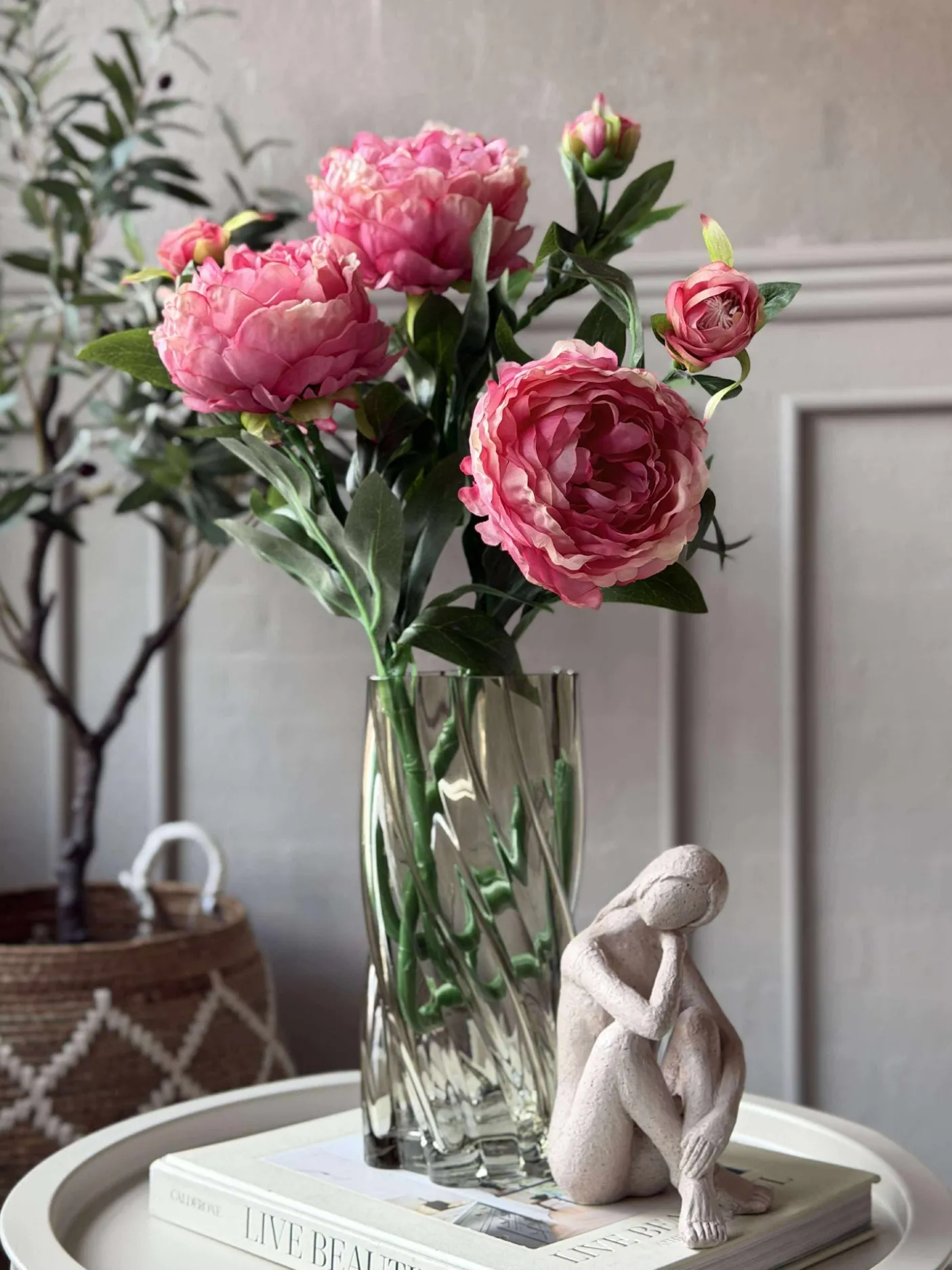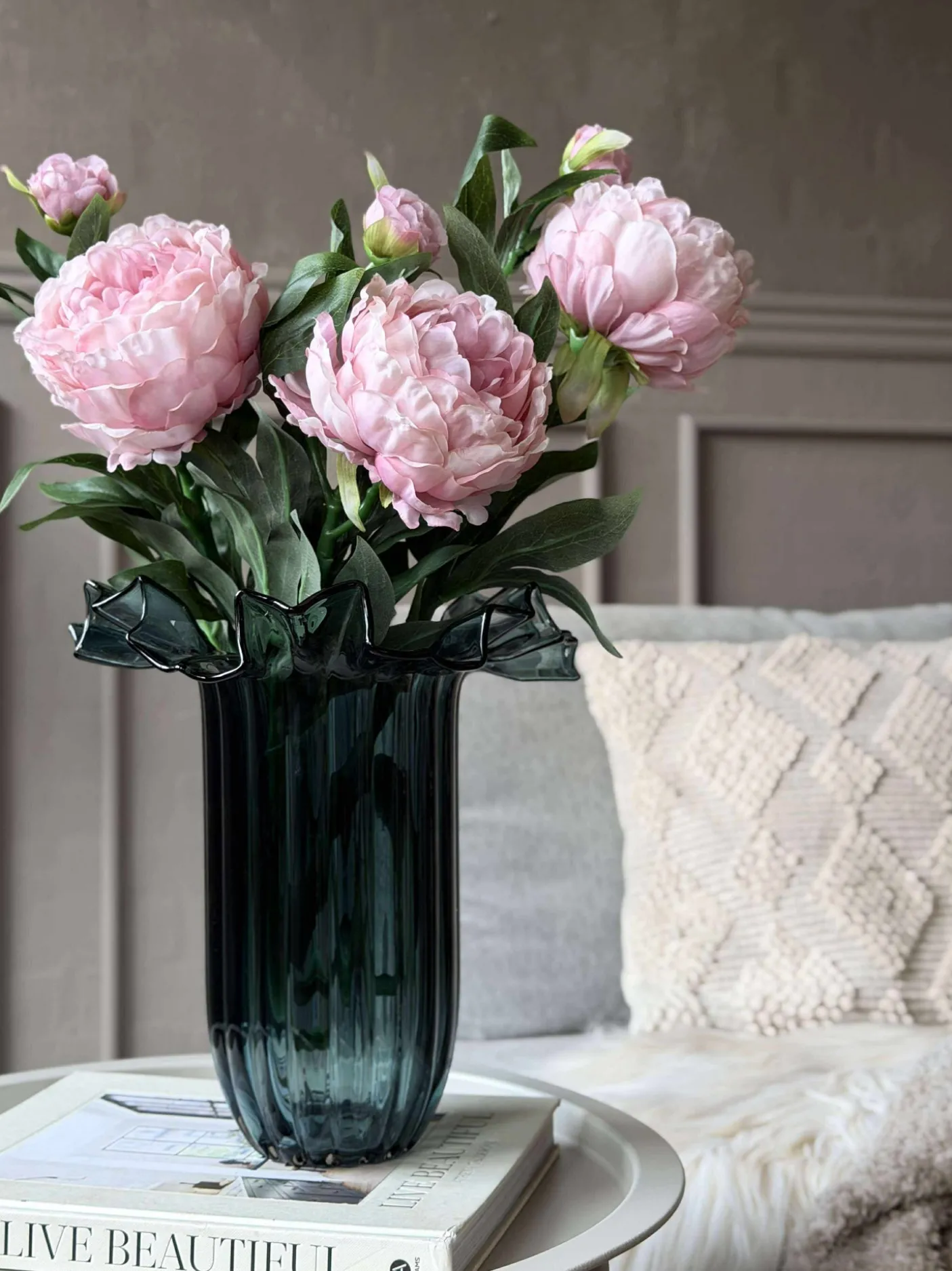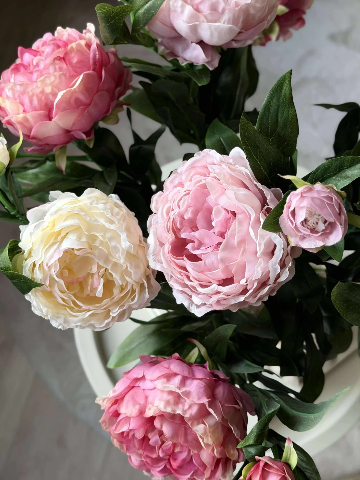 Forestil dig en dagligstue, der altid stråler af skønhed, uden at du skal bekymre dig om vanding eller visne blade. Vælg din favoritfarve, og se, hvordan kunstige pæonblomster skaber en harmonisk atmosfære i dit hjem. Gør din indretning tidløs med naturtro elegance og enkel vedligeholdelse.