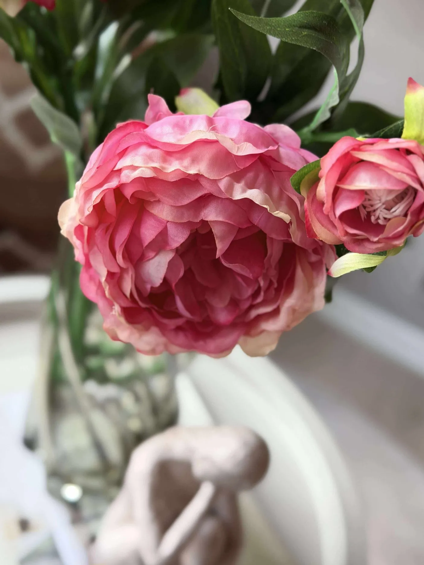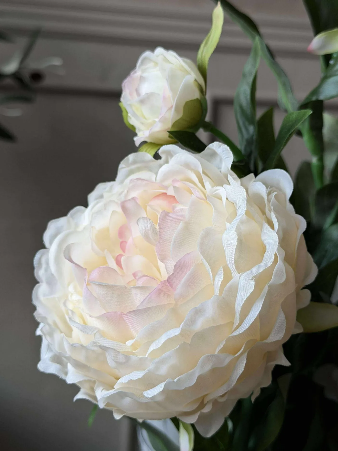 - Materialet til pæonblomsten er polyester