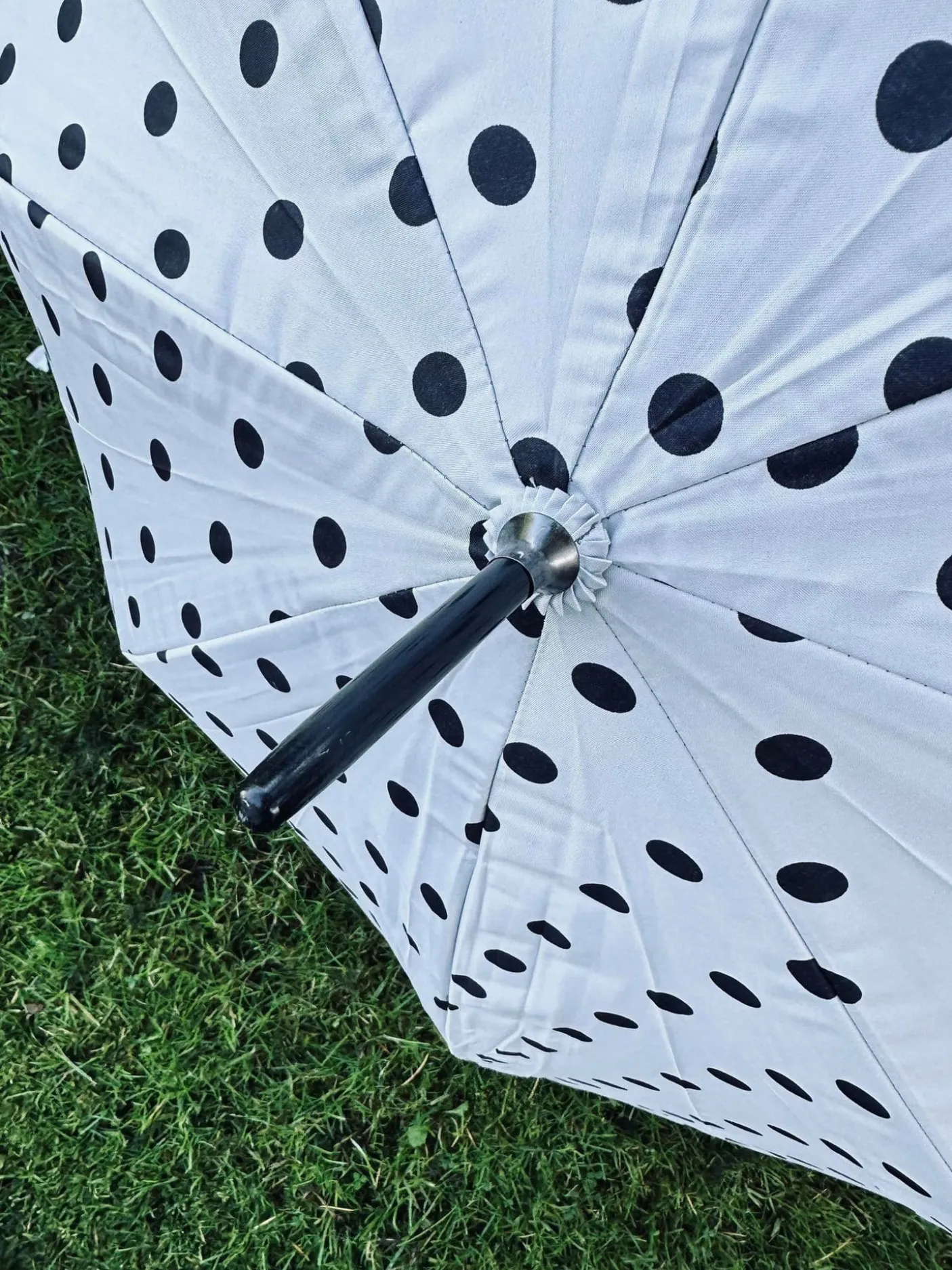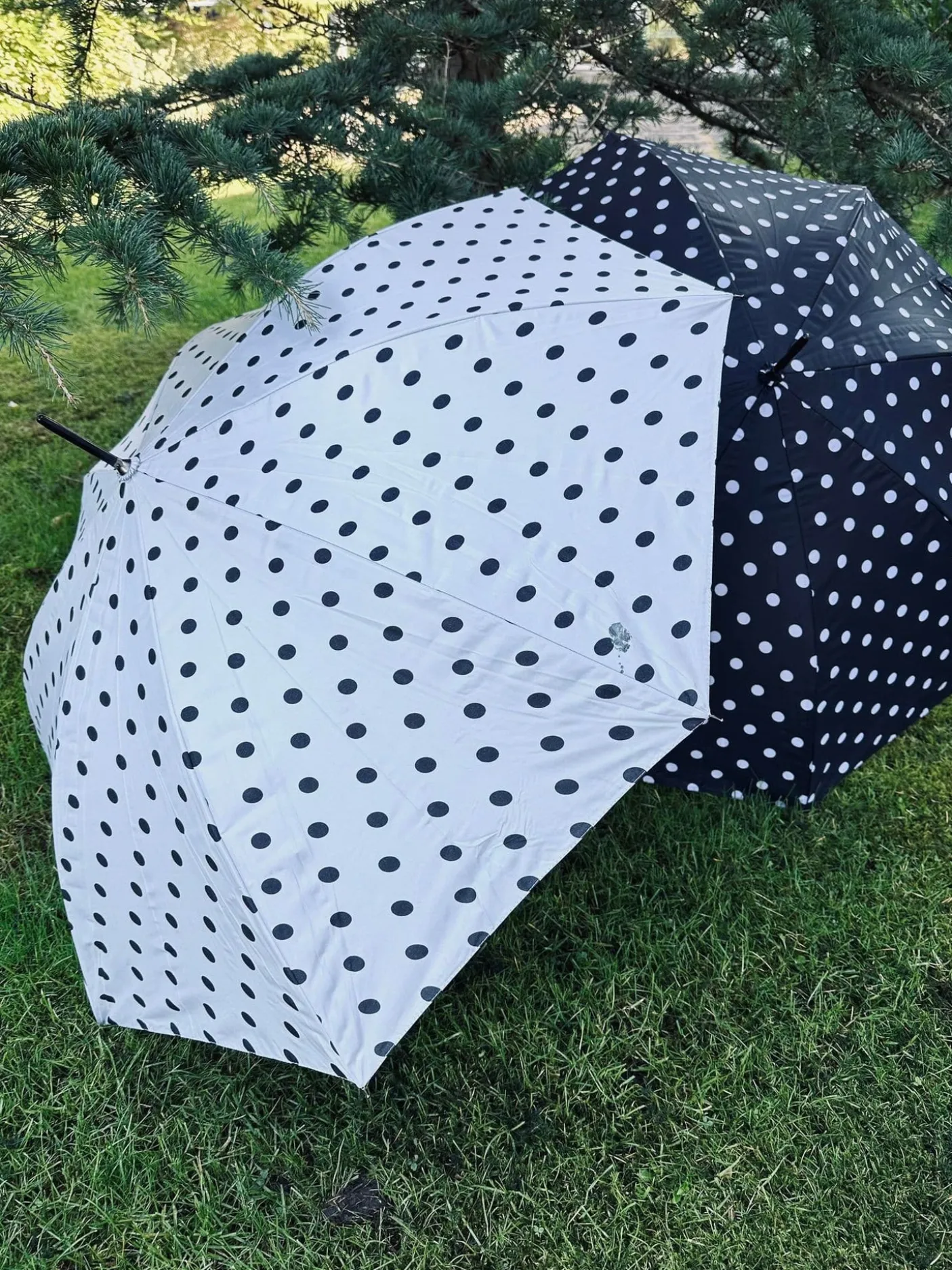 Fineste paraply med sort / hvide dots.