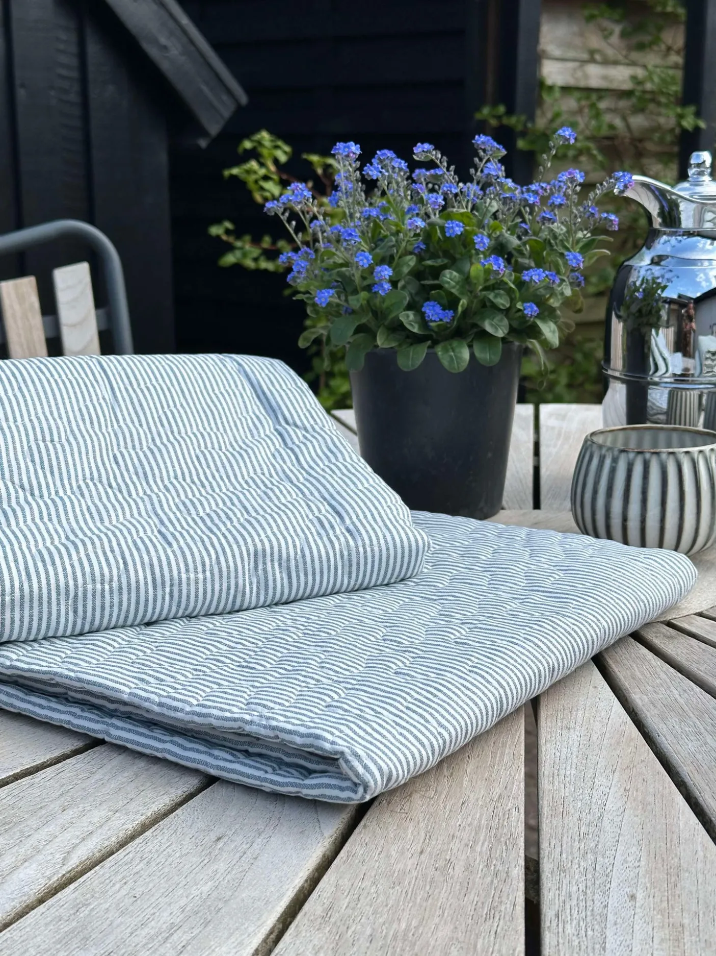 Picnictæppe med striber.