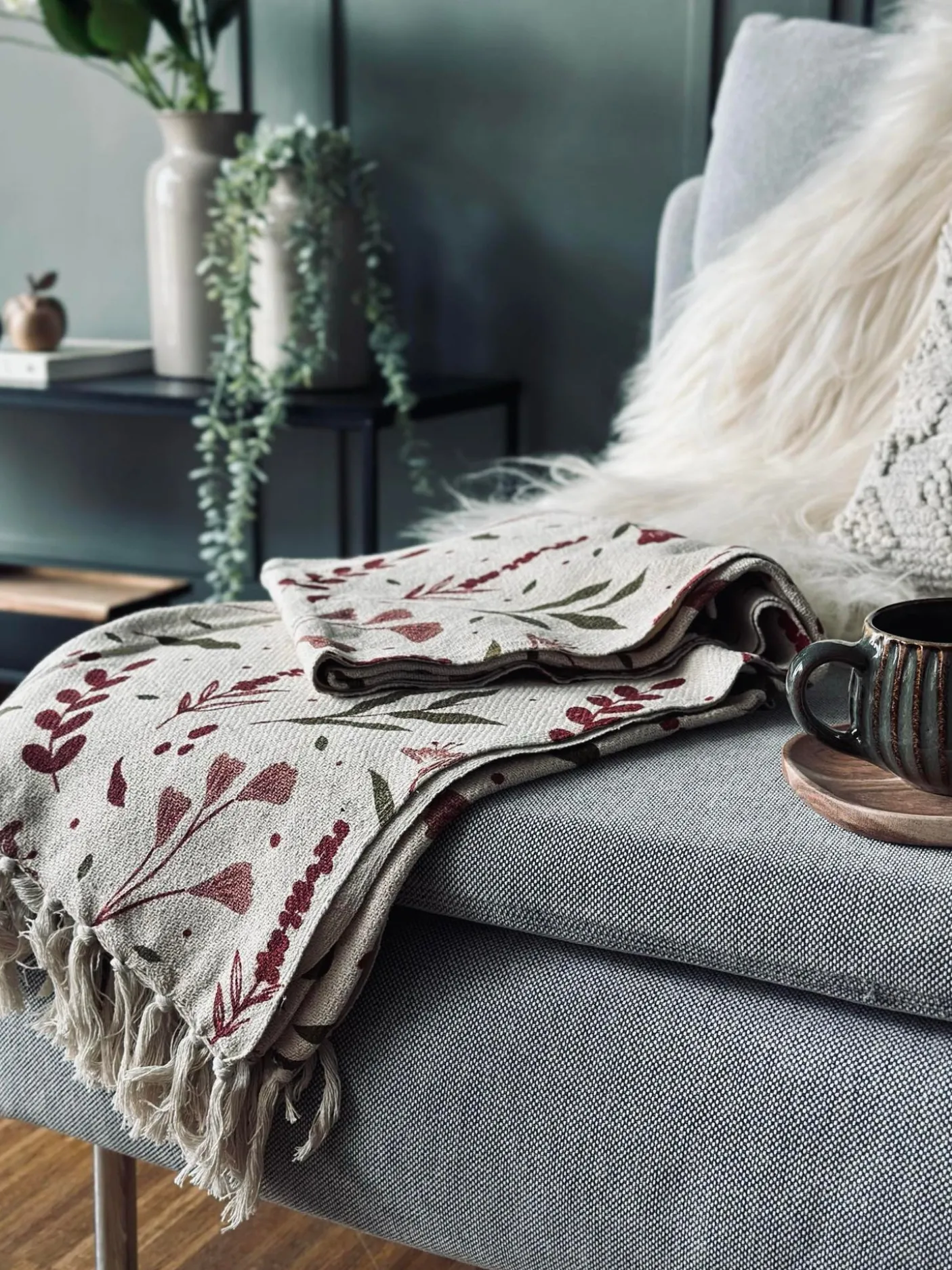 Plaid i vaflet recycling bomuld.