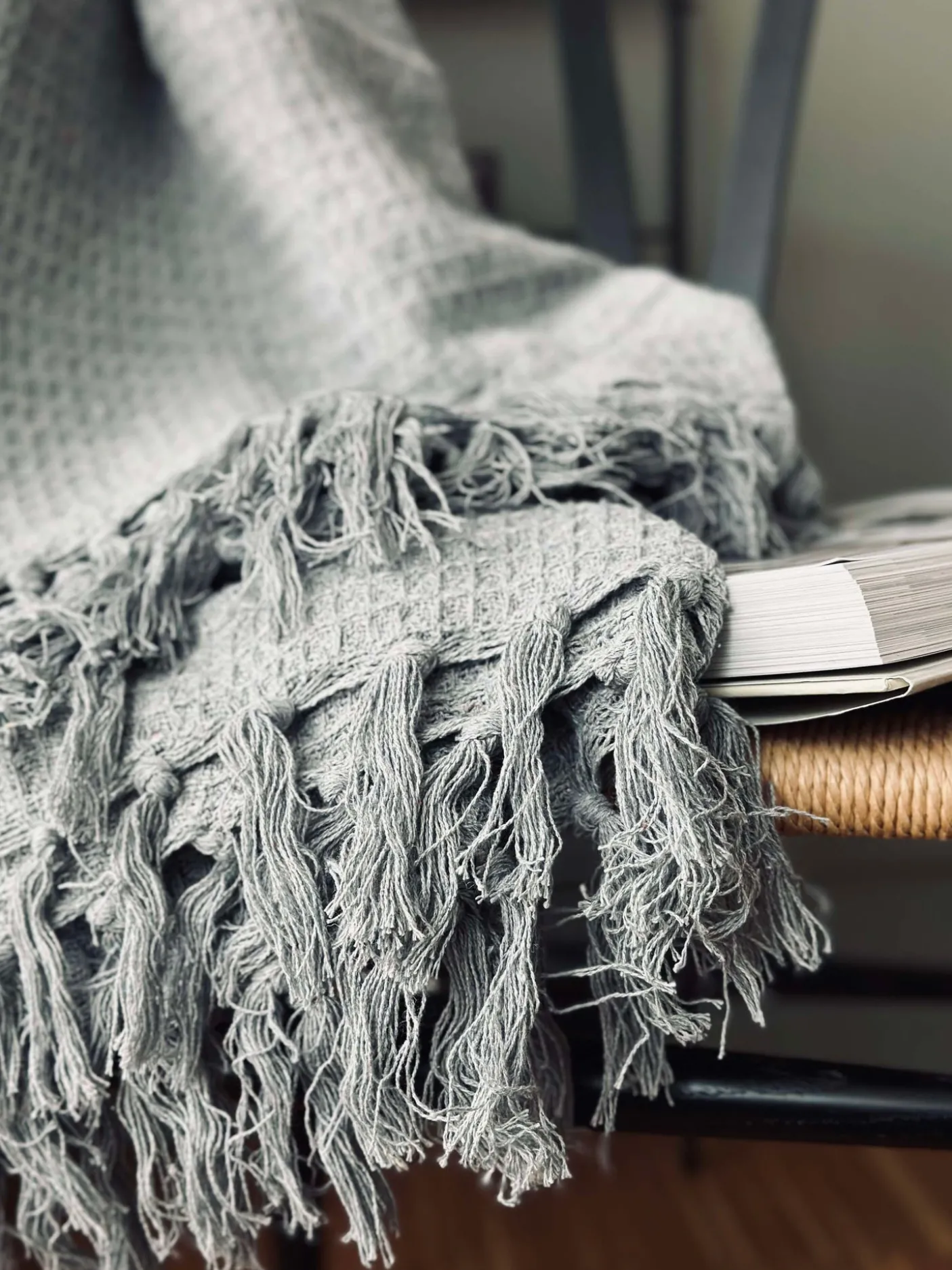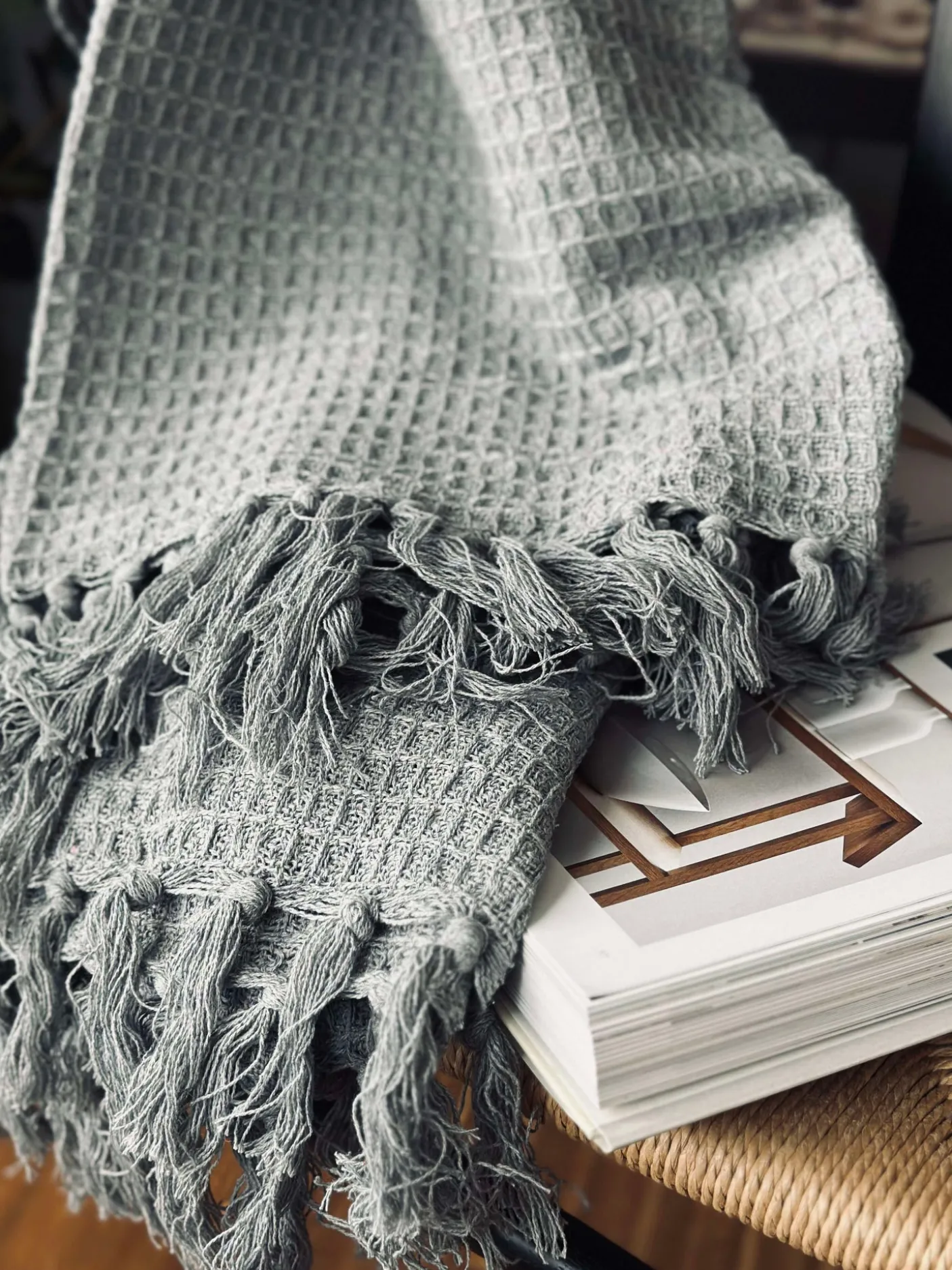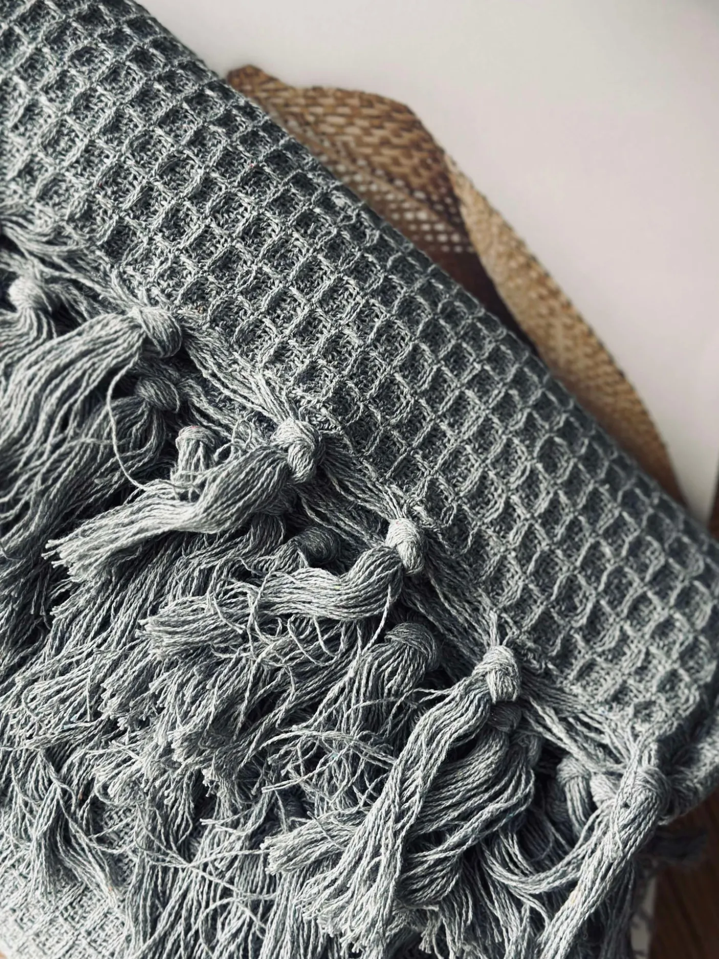 Plaid i vaflet genanvendt bomuld.
