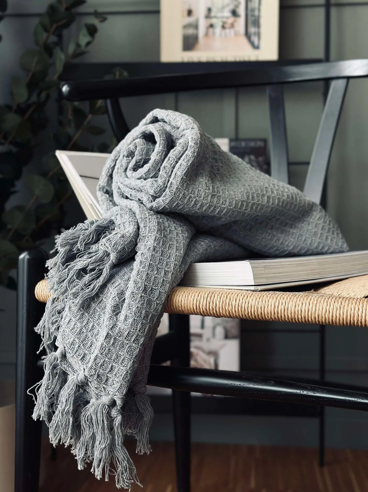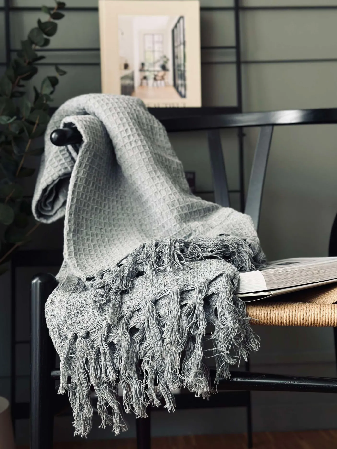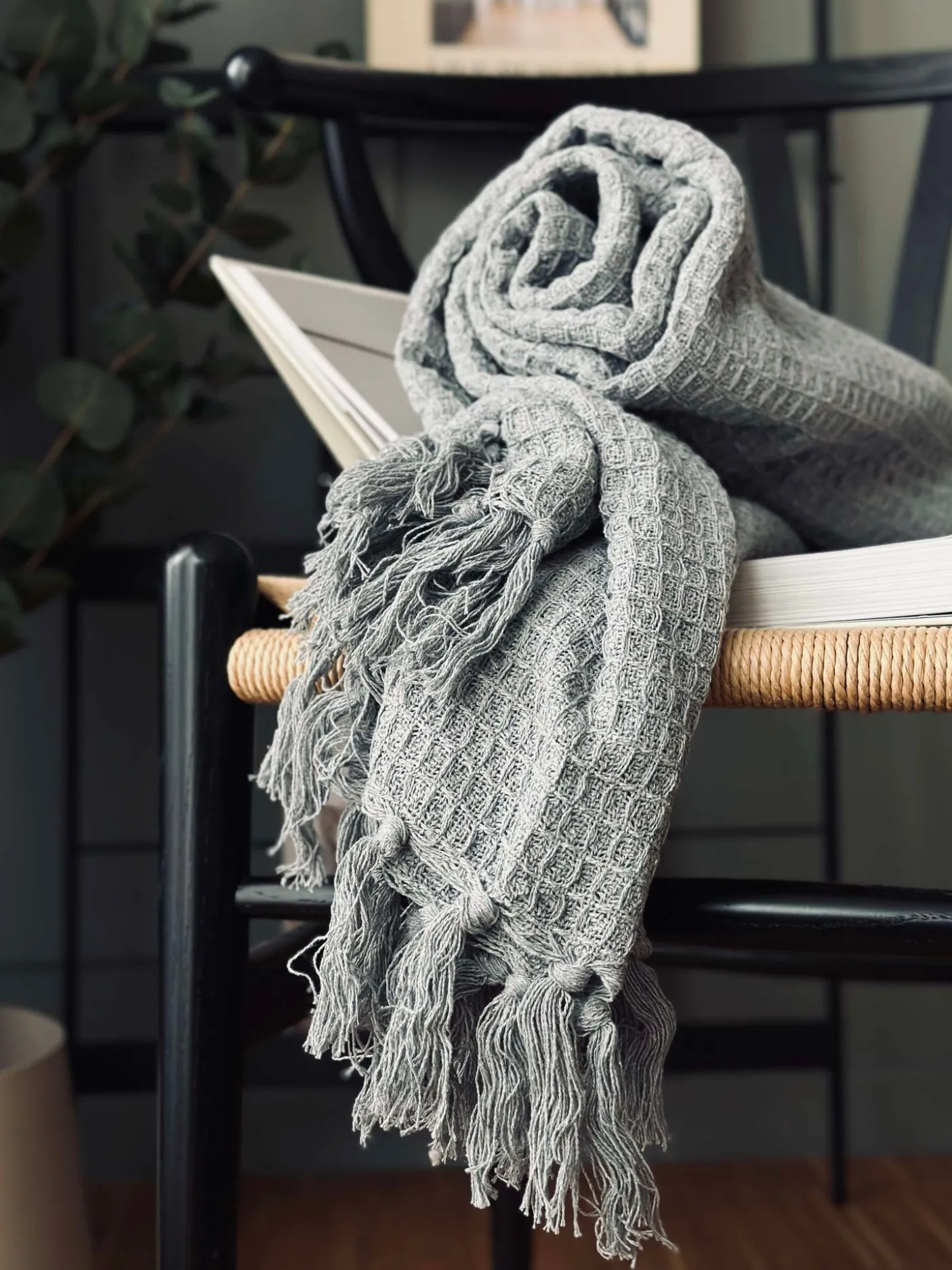 Plaid i vaflet genanvendt bomuld.