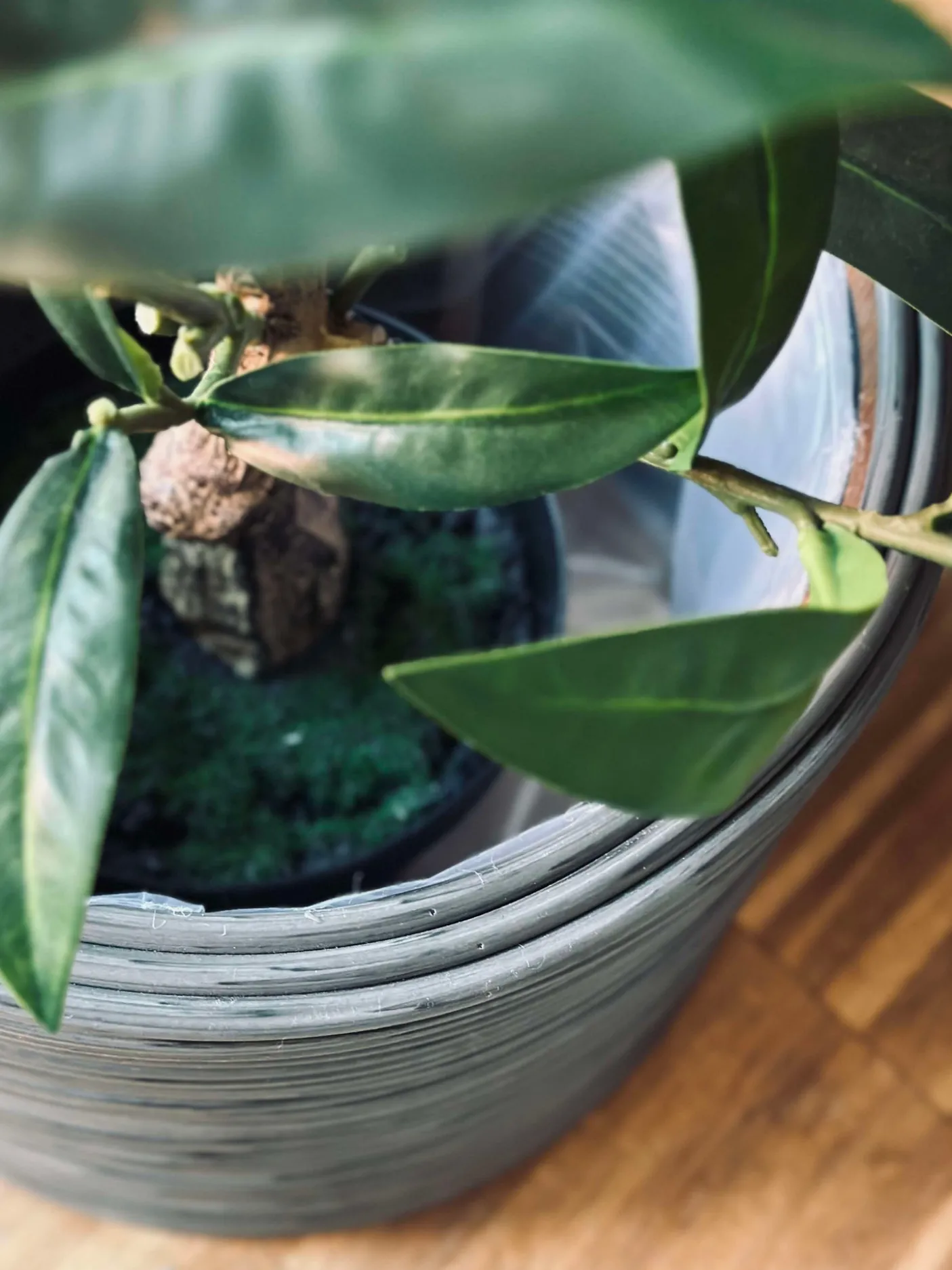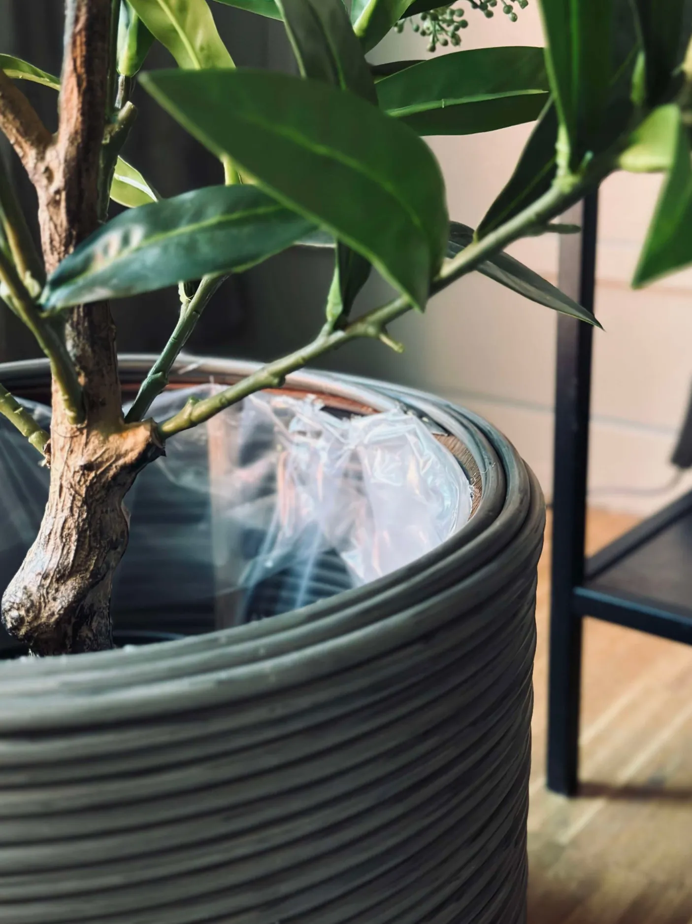 Plantekurve i grå plast.