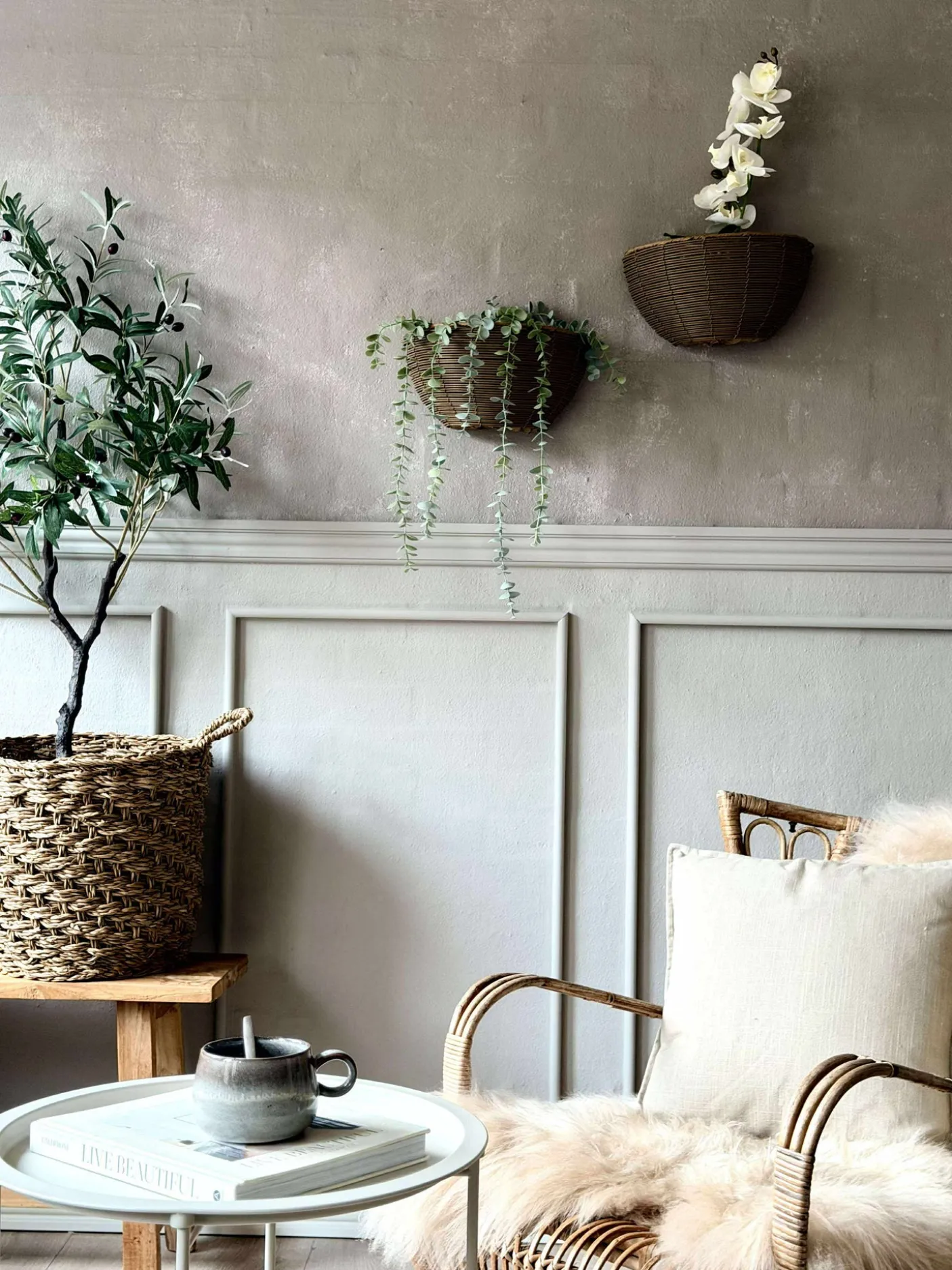 Plantekurv i rattan.