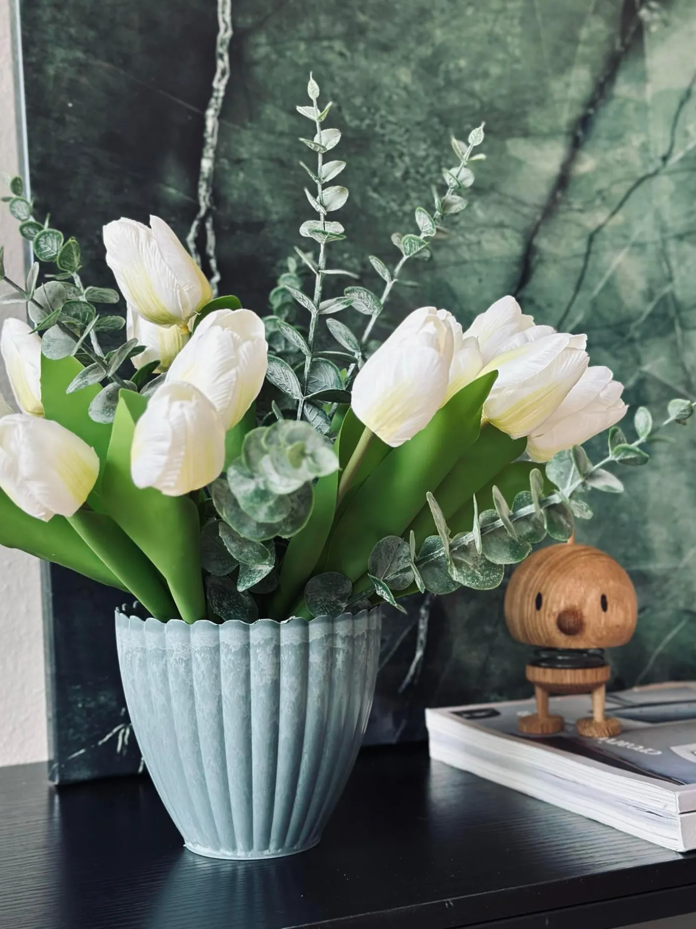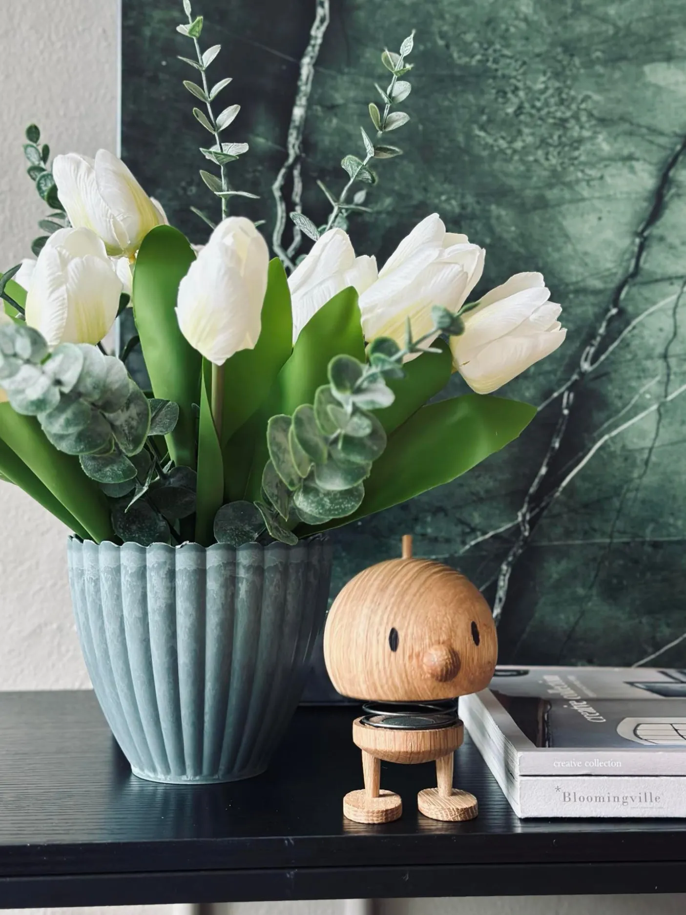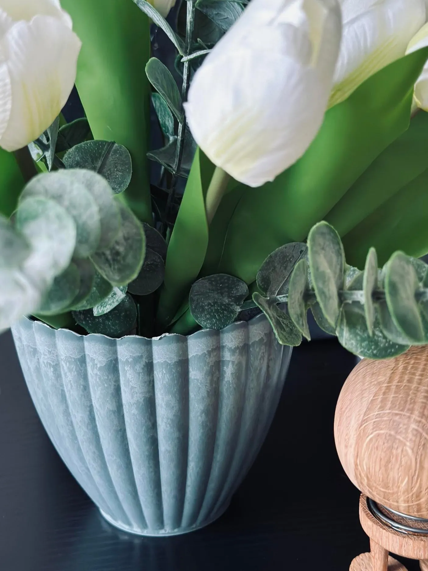 Disse potter i beton look er lavet af plastik og lækker ikke.