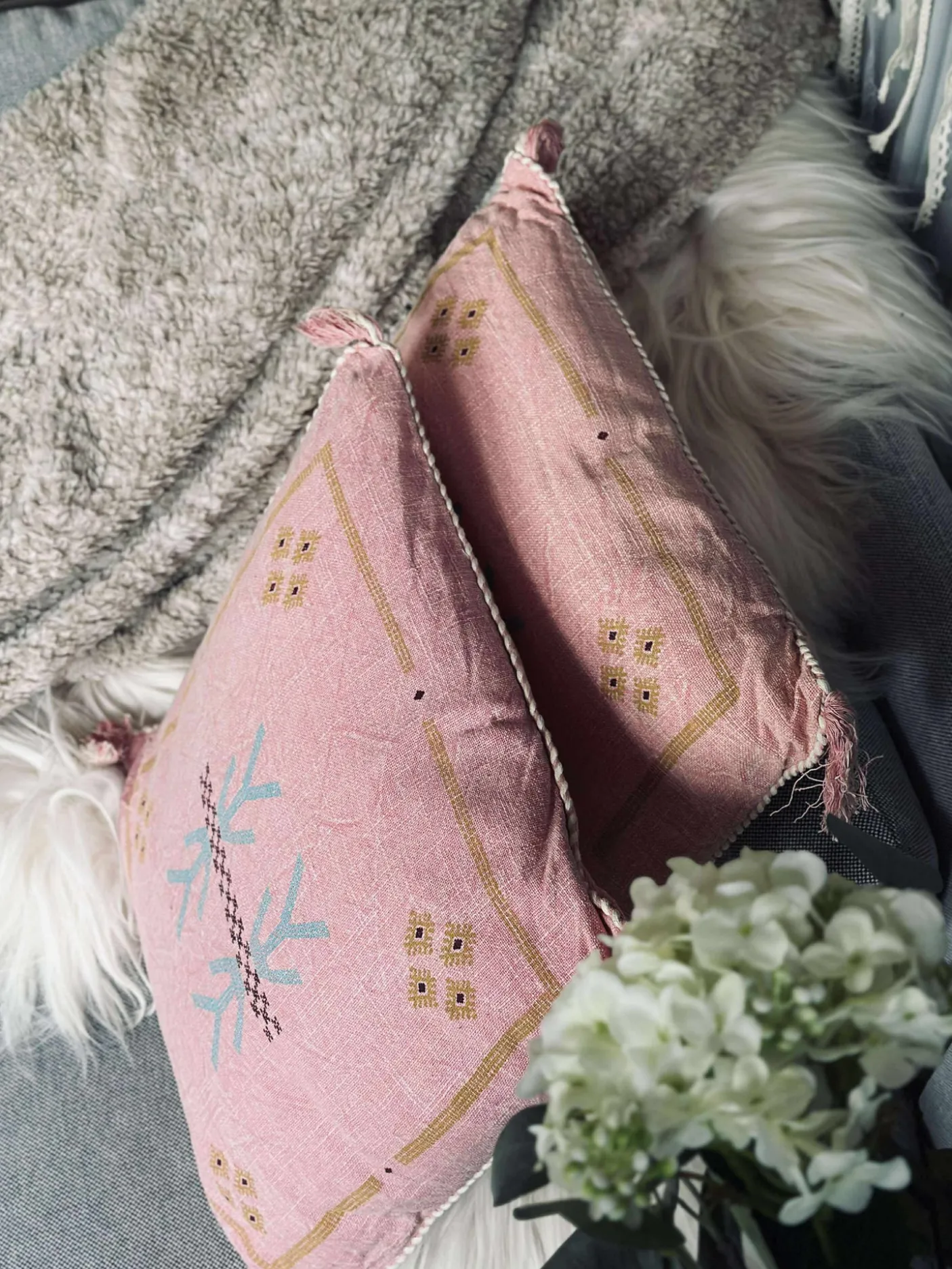 Pude med fyld og smukt mønster. Sæt med 2 puder
