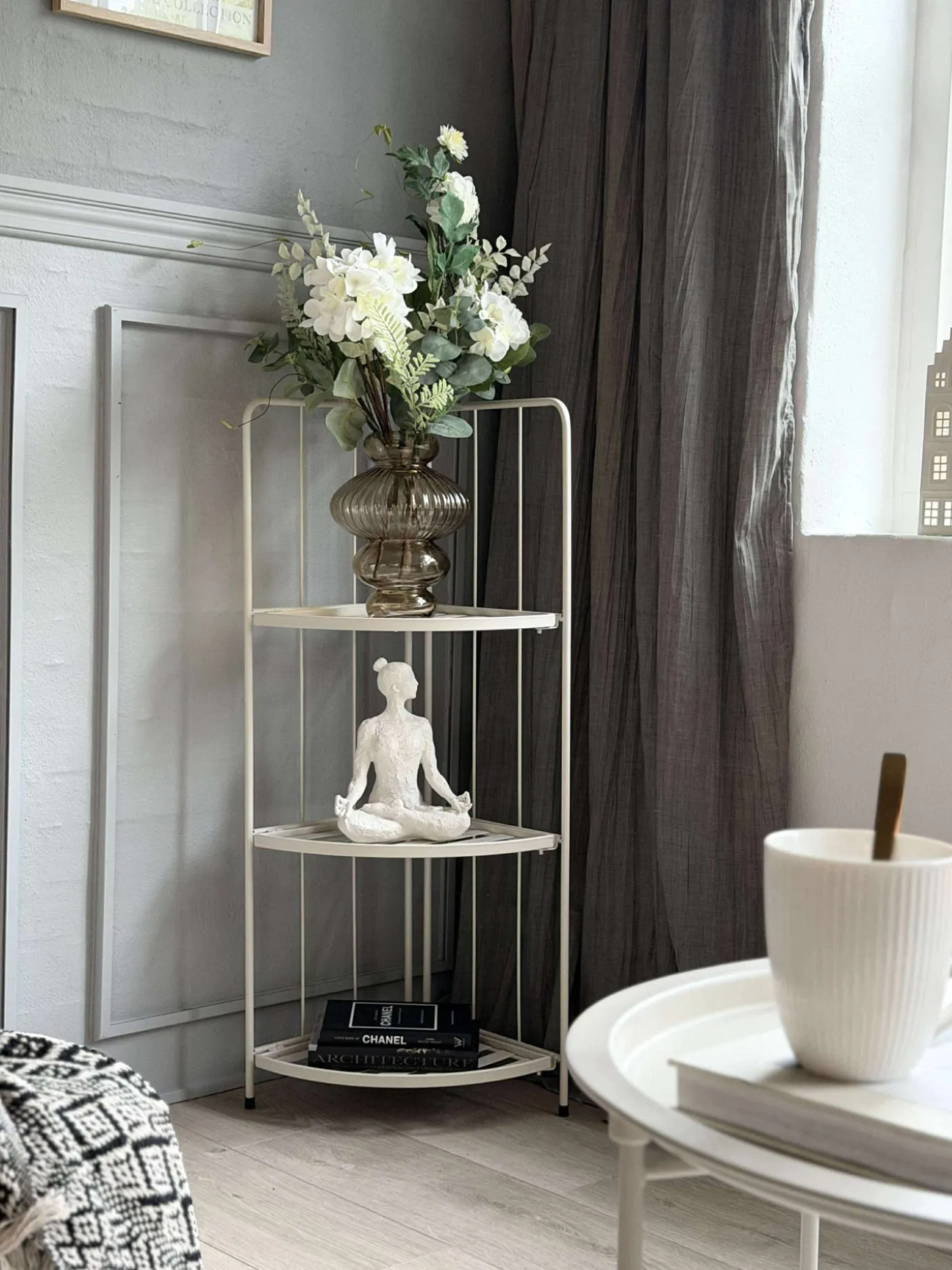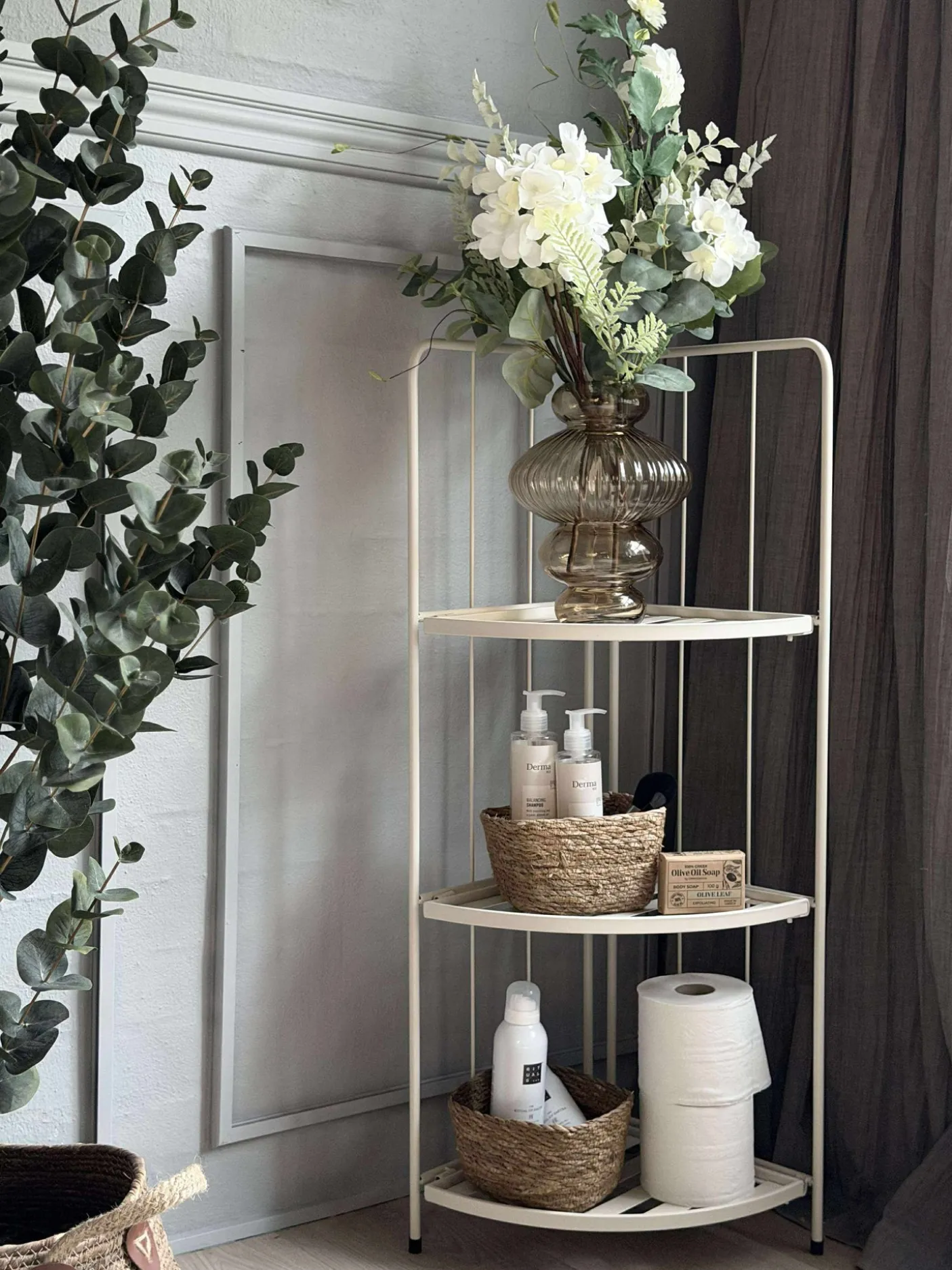 Reol med 3 hylder i metal.