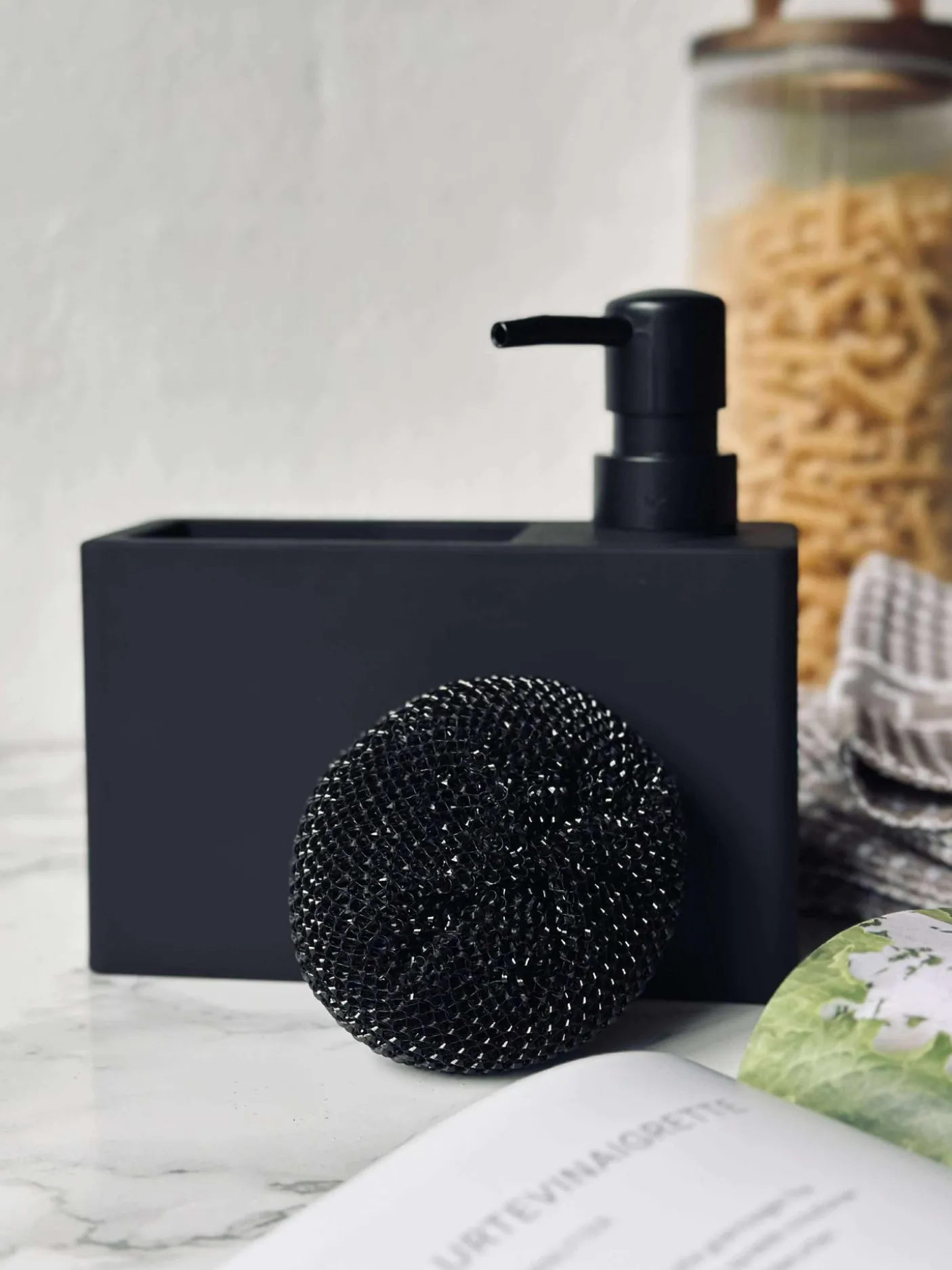Sæbedispenser med svamp.