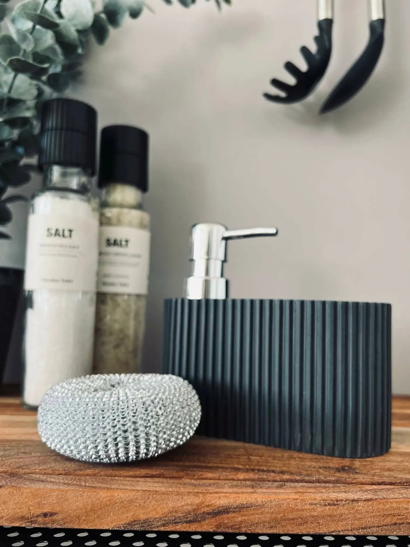 Sæbedispenser i sort inkl. svamp.
