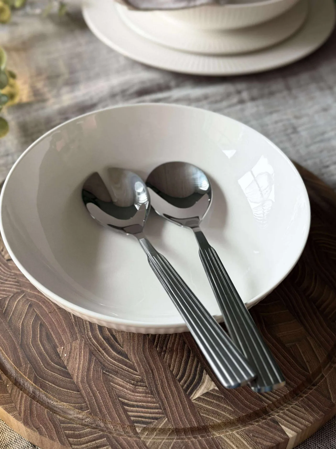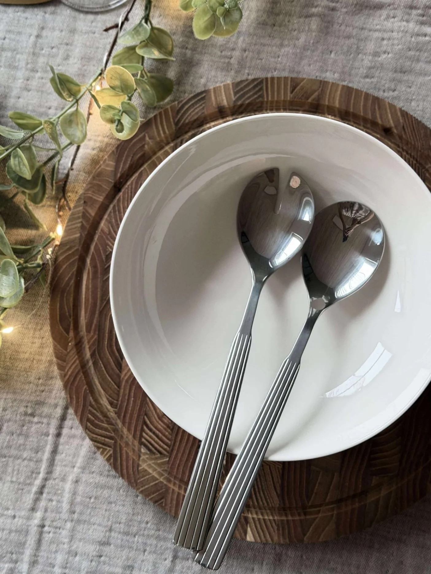 Servér en lækker salat med dette salatbestik i salatskålen for dine gæster for at sætte prikken over i’et. Når bestikket ikke er i brug, kan du sætte det ned i en krukke til køkkenredskaber som en del af dit køkkendesign.