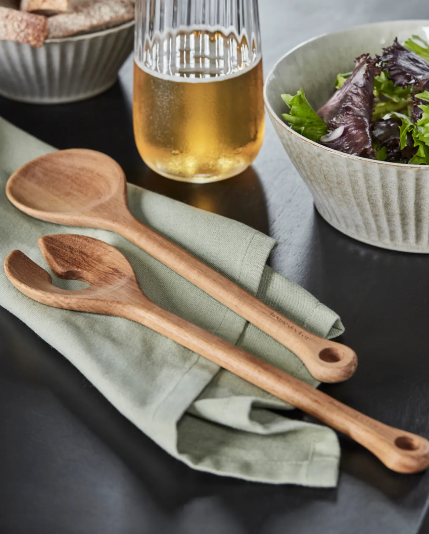 Skab et afslappet og naturligt look på dit bord med dette salatbestik af træ.