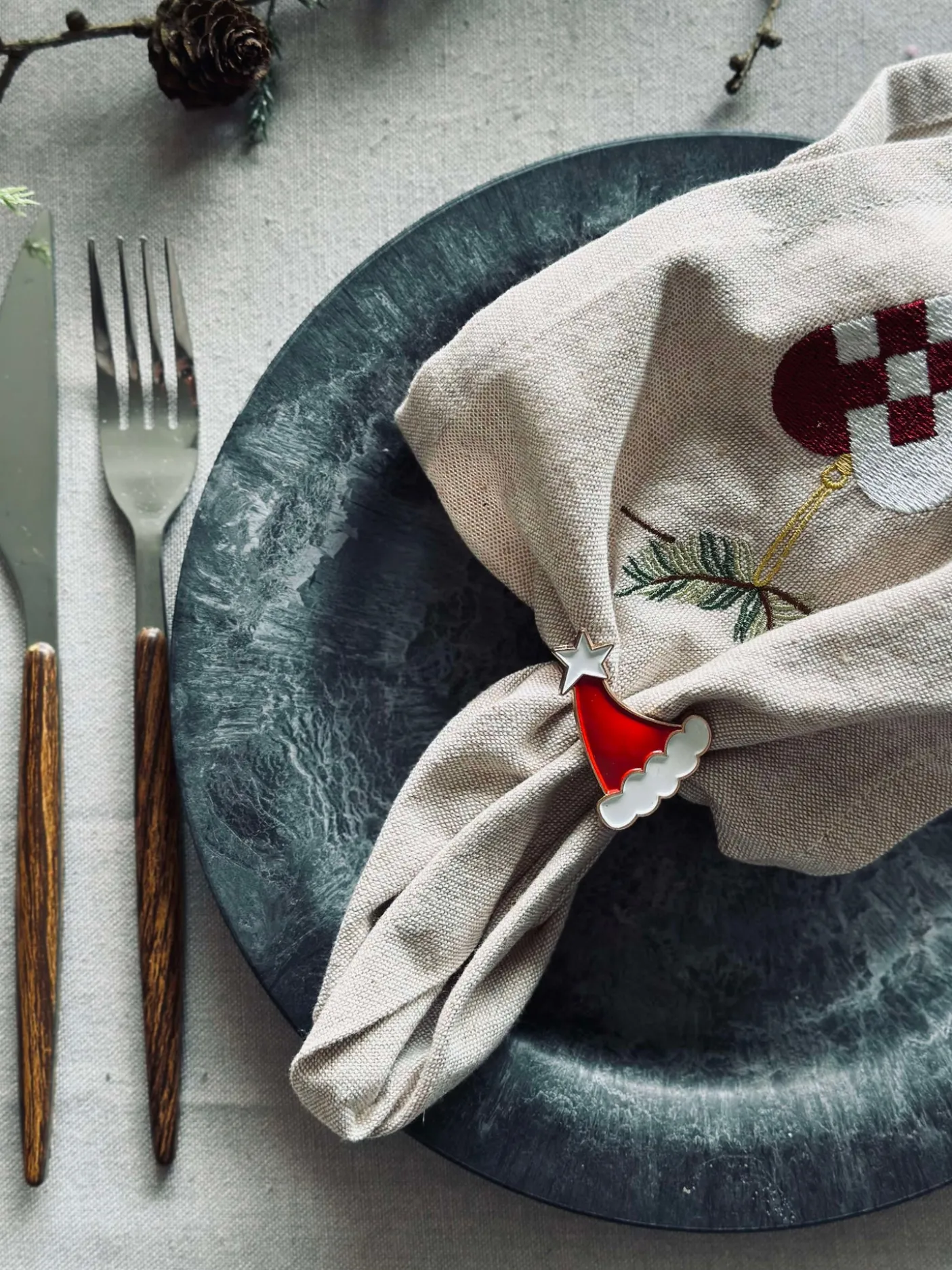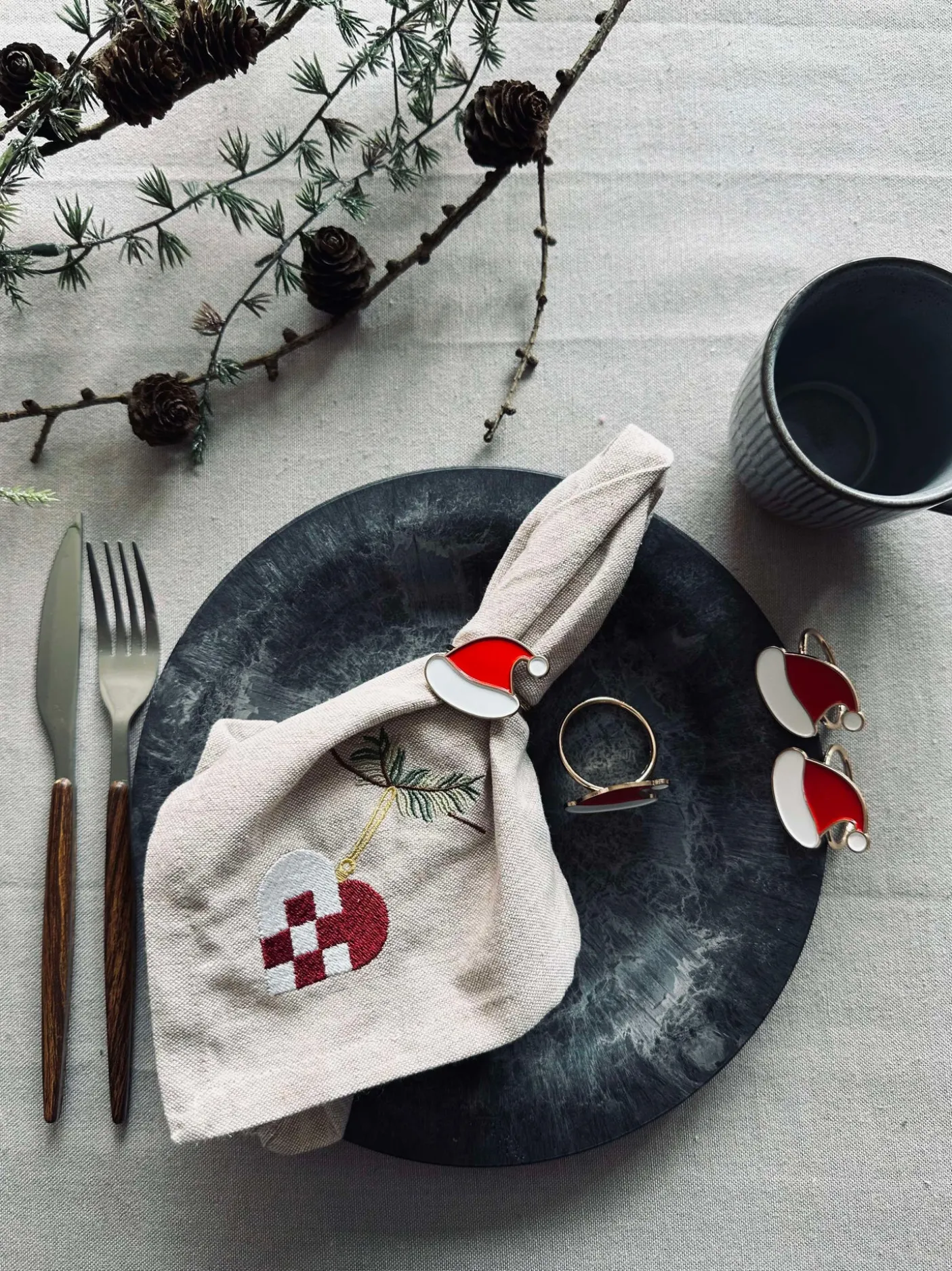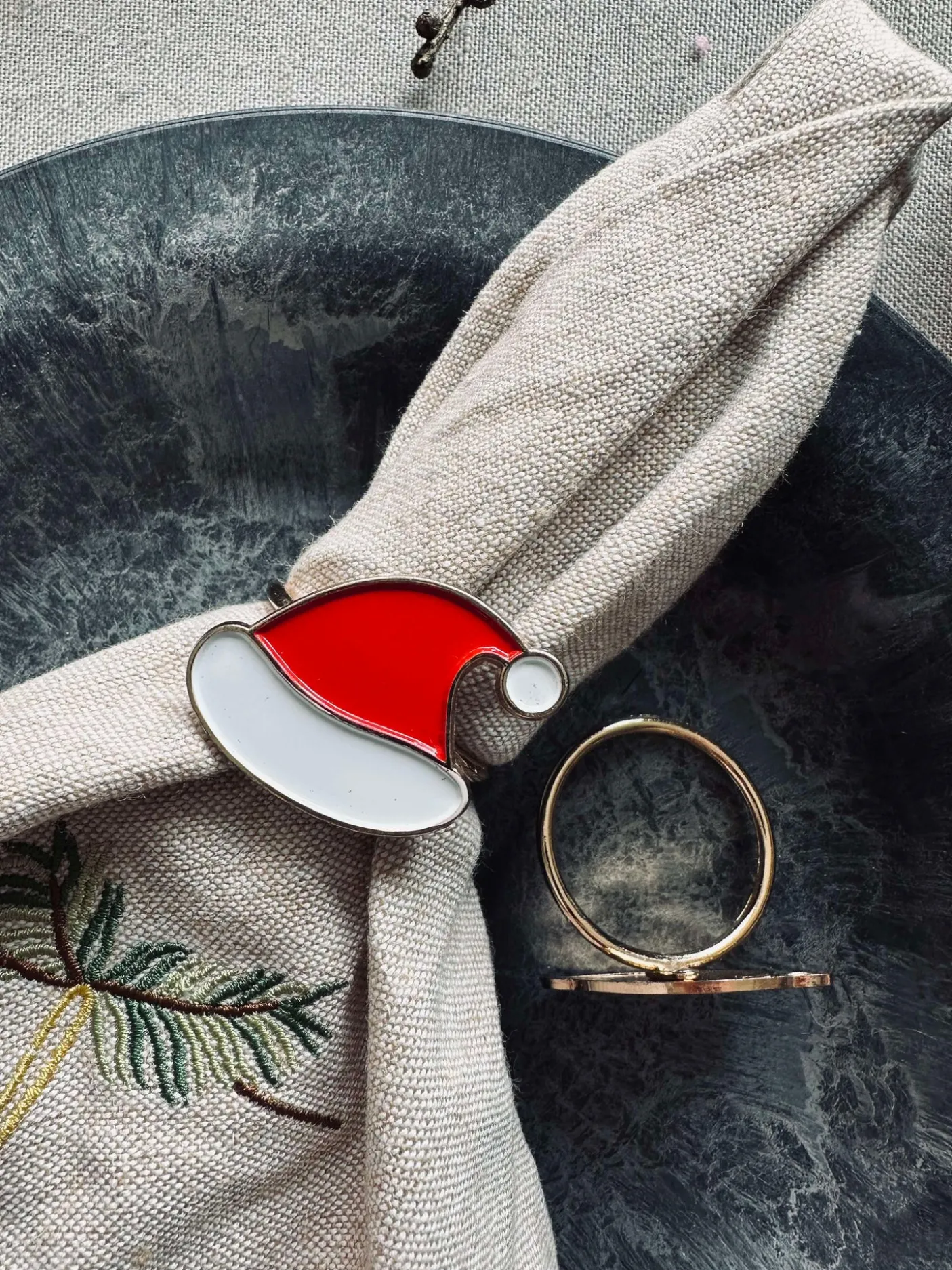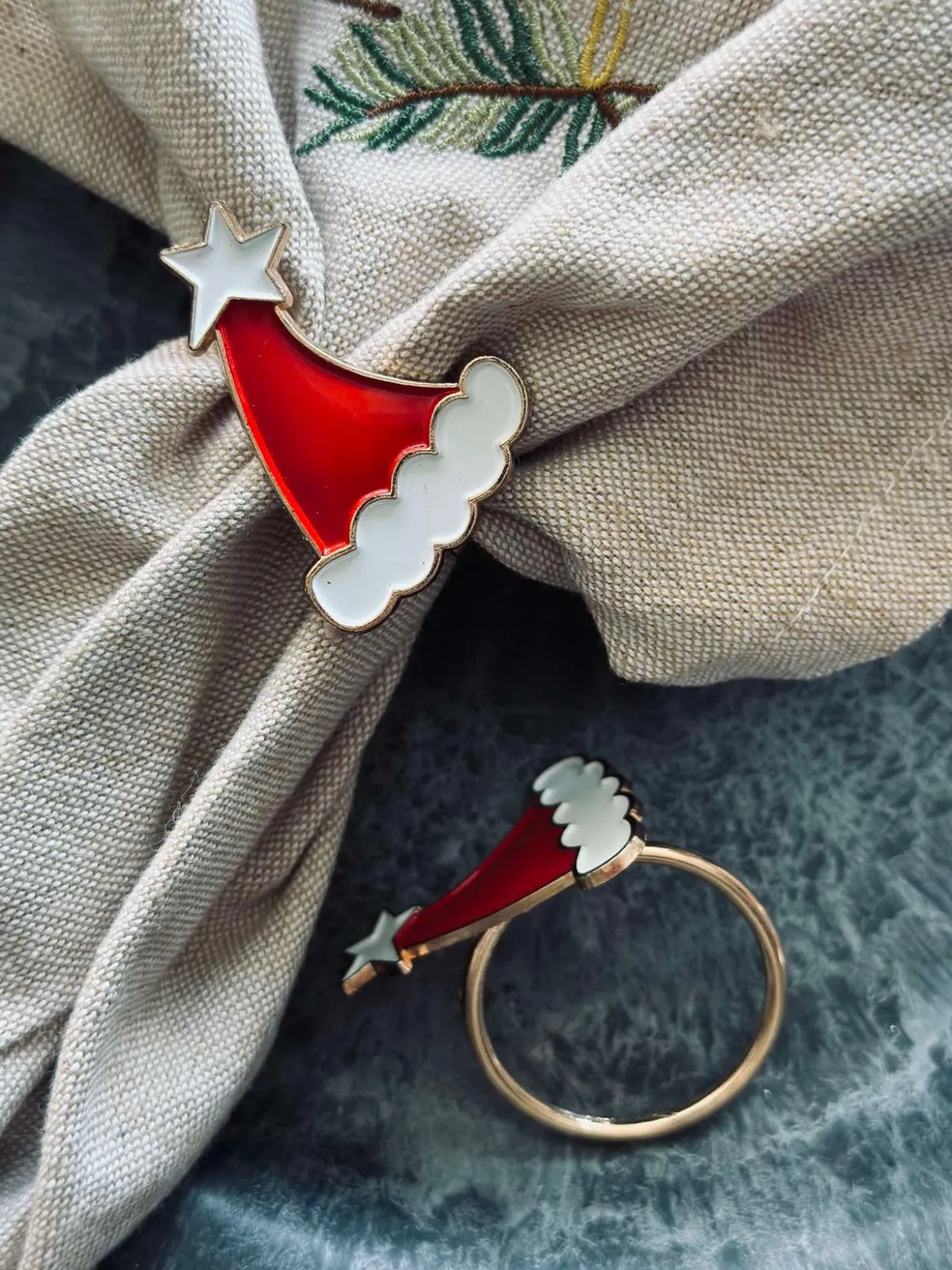 Servietringe med nissehue motiv.