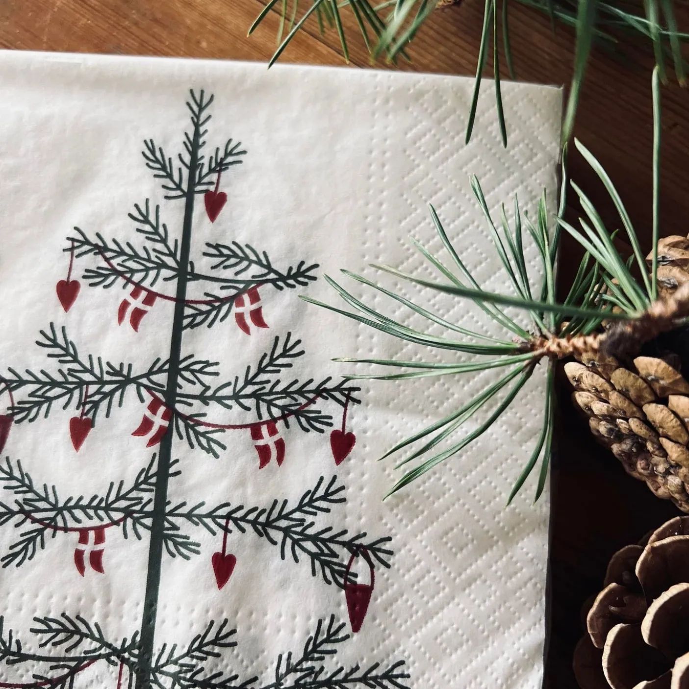 Servietter 20 stk – Hvid med Juletræ Nostalgi