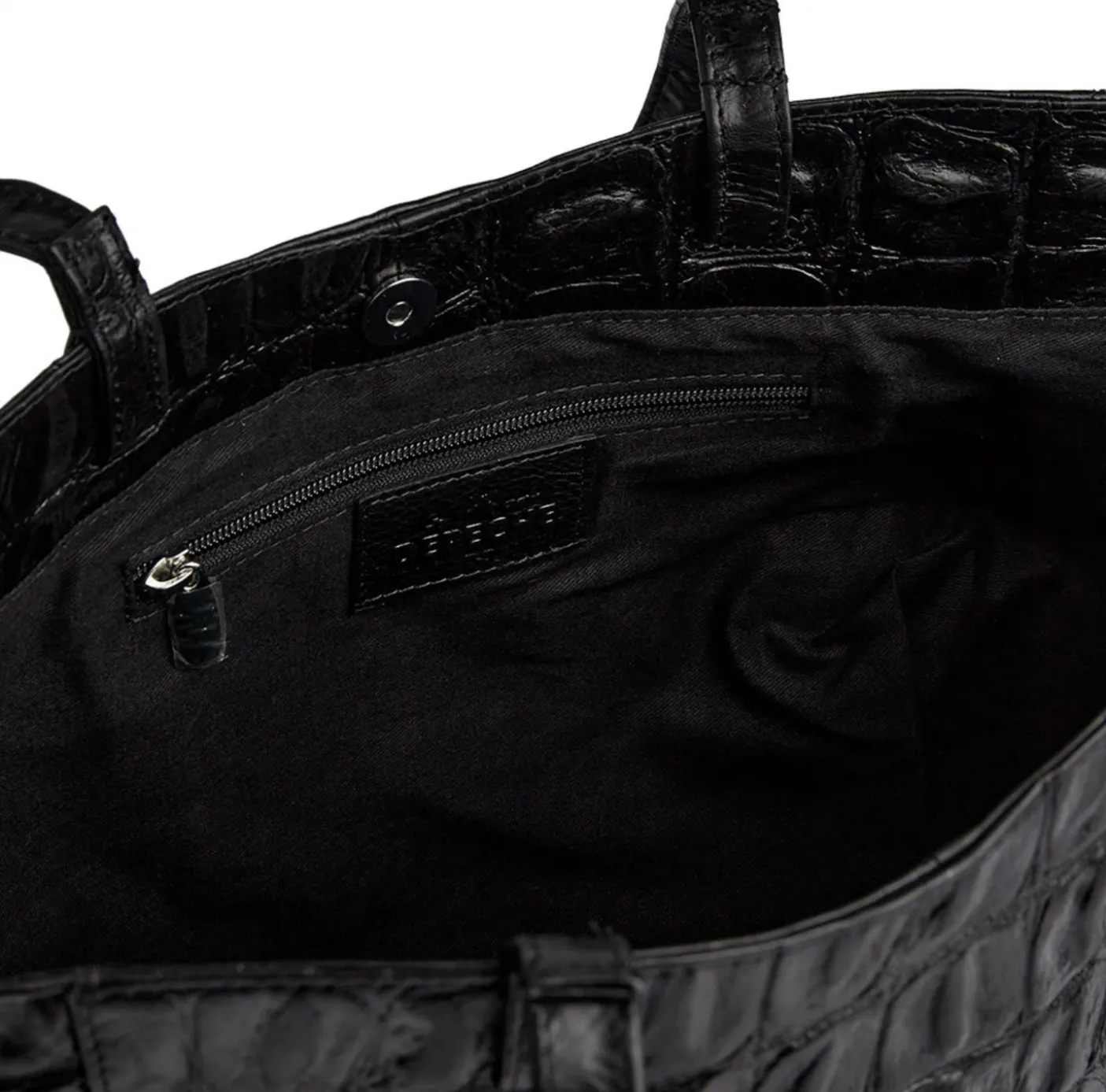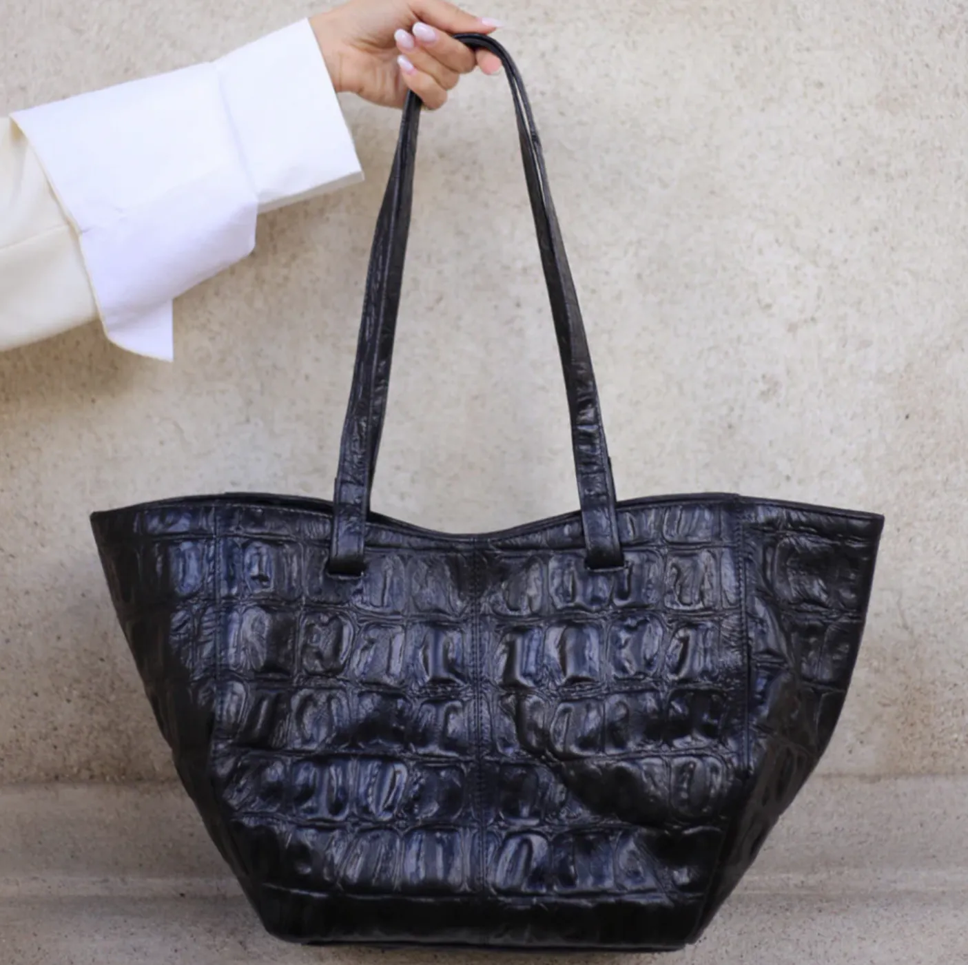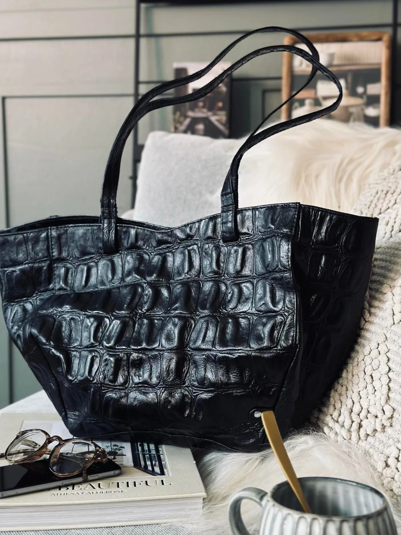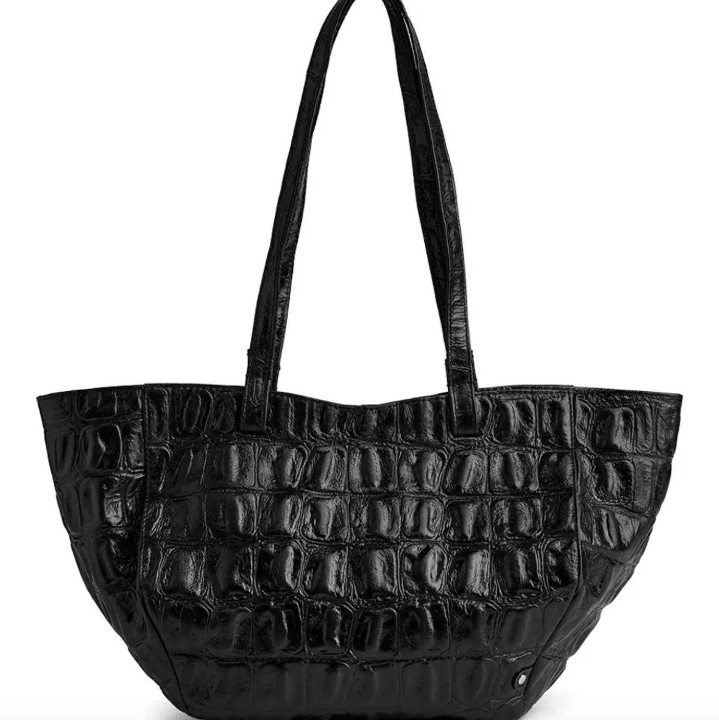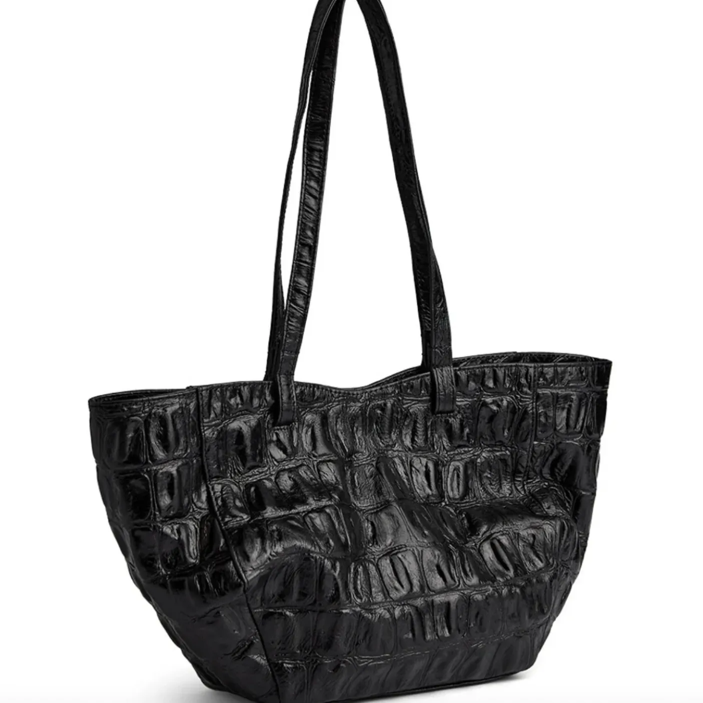 Denne shopper i croco look forener klassisk elegance med funktionelt design – et stilfuldt must-have til dig, der ønsker både rummelighed og raffineret udtryk i én og samme taske.
