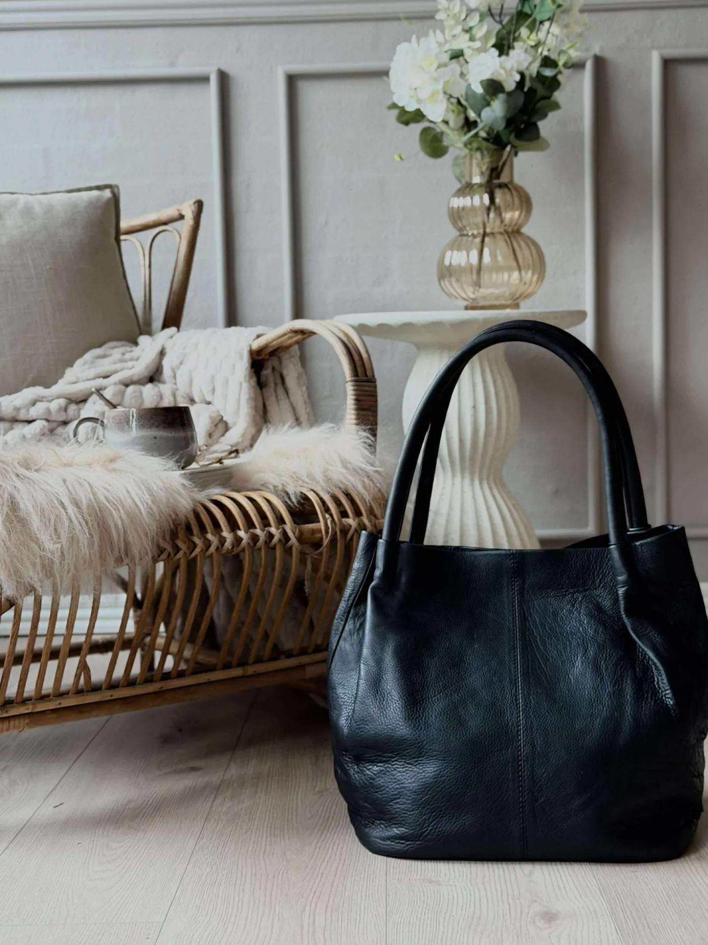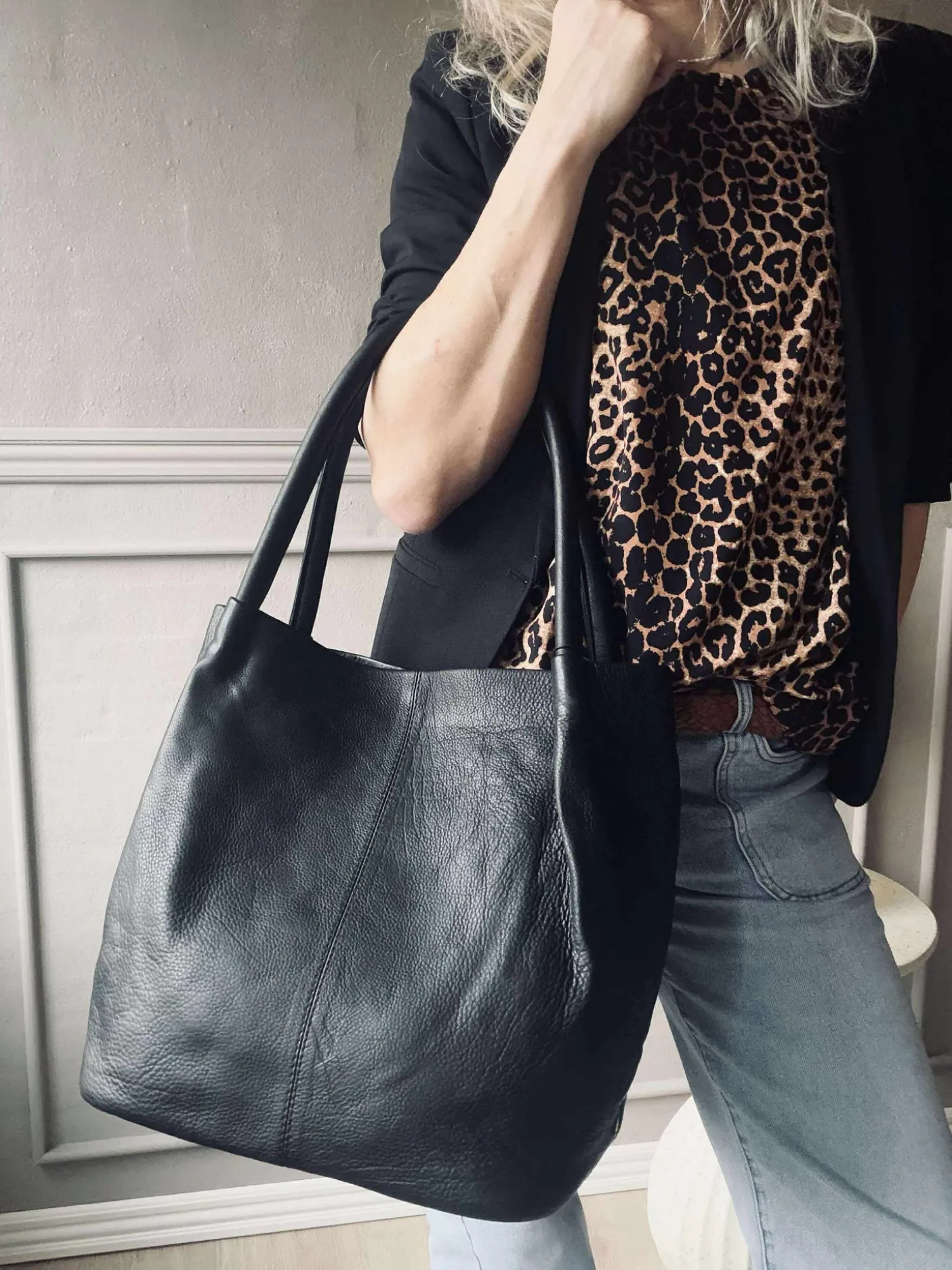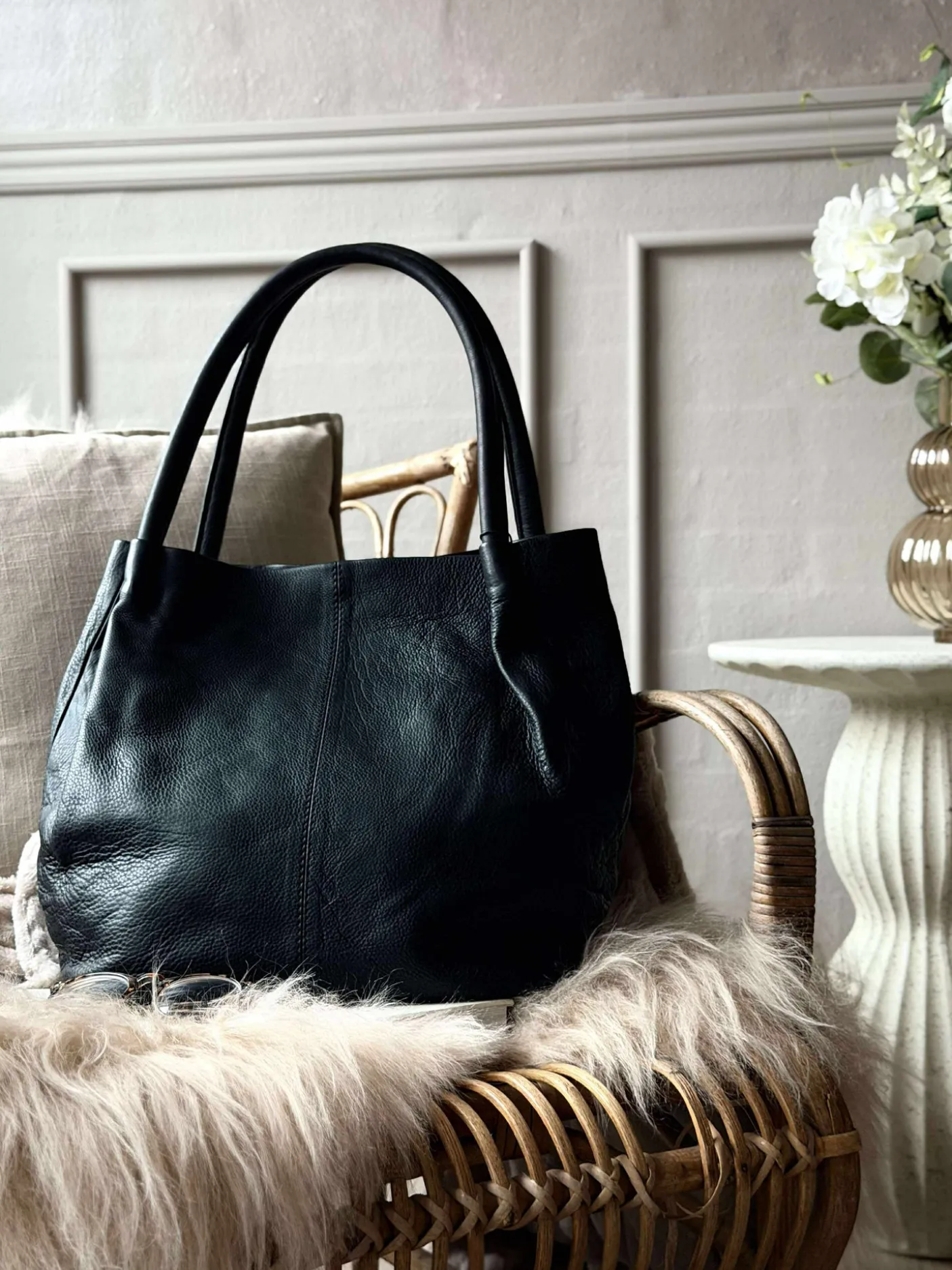Klassisk læder shopper taske i en smøragtig blød og bærbar kvalitet.