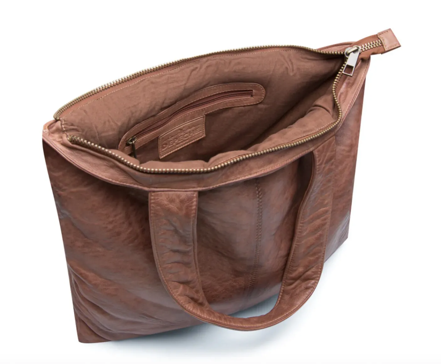 Tasken har et smukt vintage look, med en flot struktur i skindet og den lukkes i toppen med lynlås.
