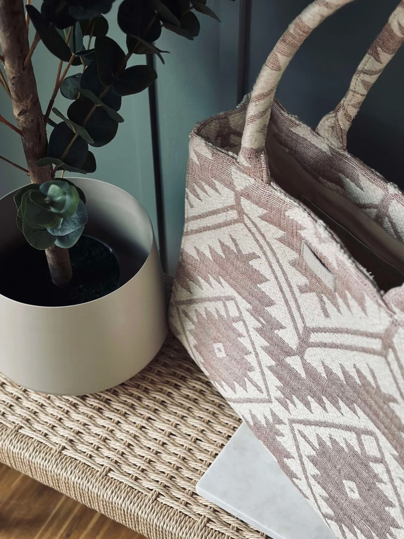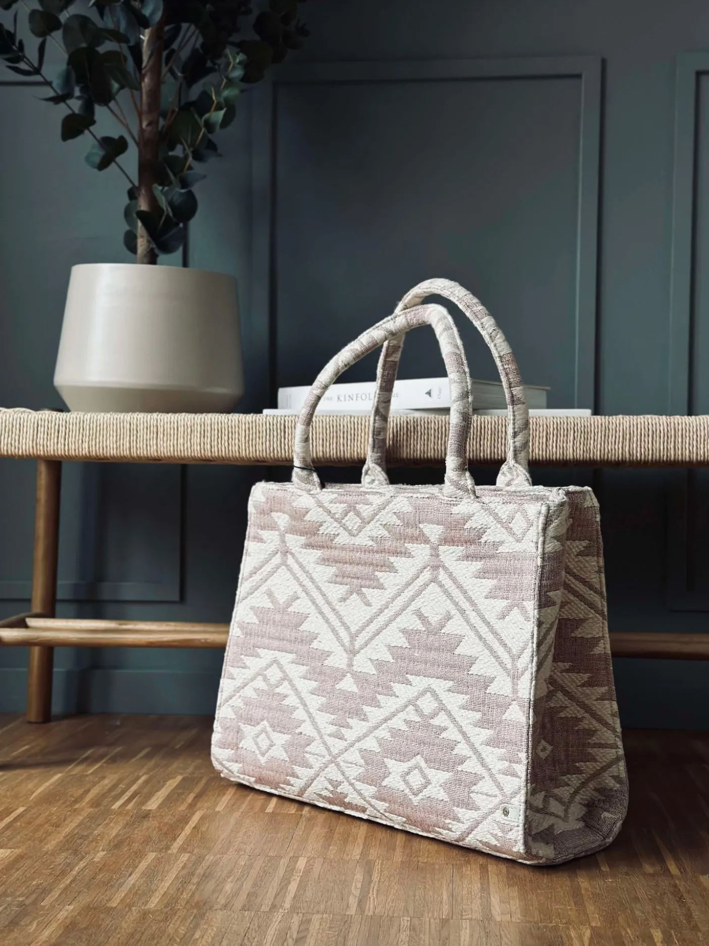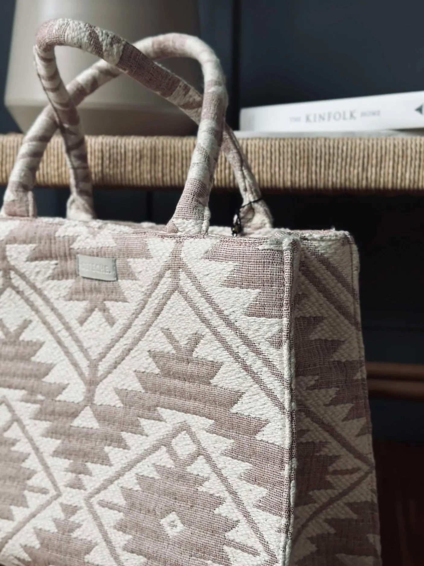 Denne store shoppertaske emmer af luksus og elegance med sit eksklusive mønster og sofistikerede design.
