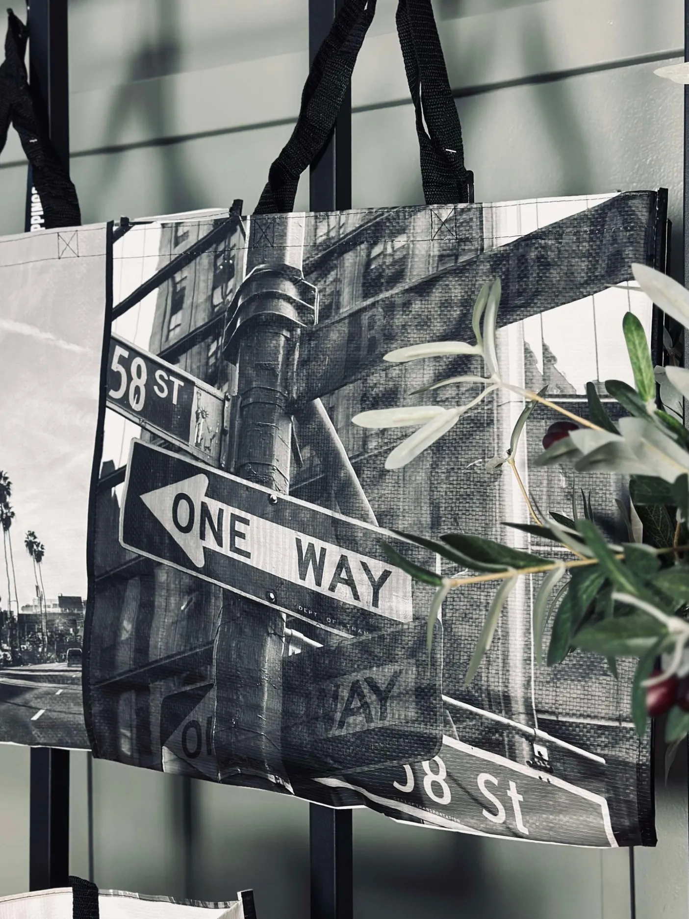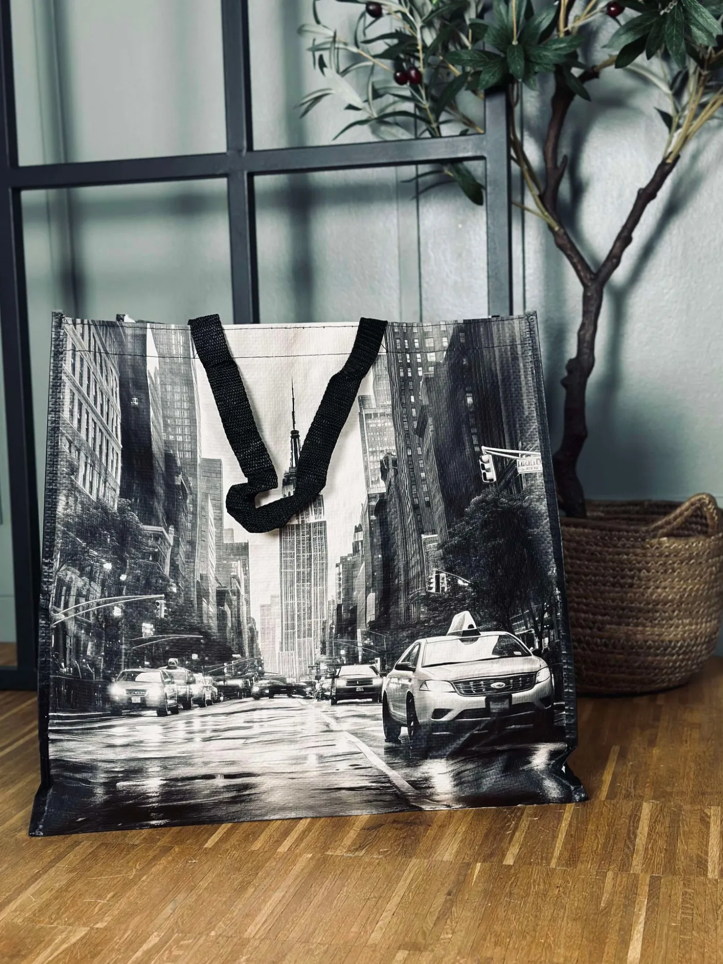 Shopper i sort/hvid med motiv.