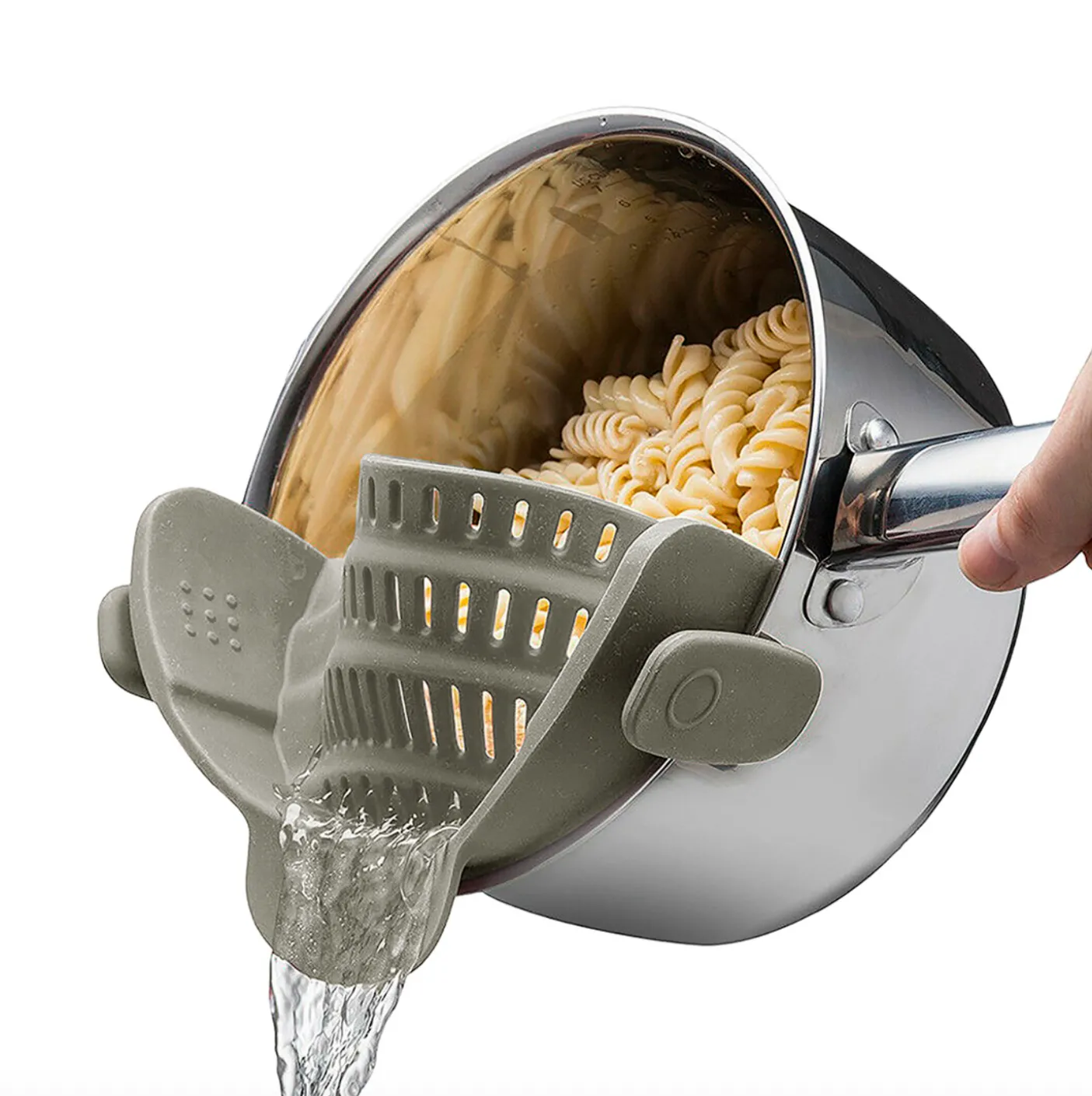 Hæld vand/fedt fra din mad uden at spilde. Sien klemmes fast på en gryde eller lignende og former sig efter den.