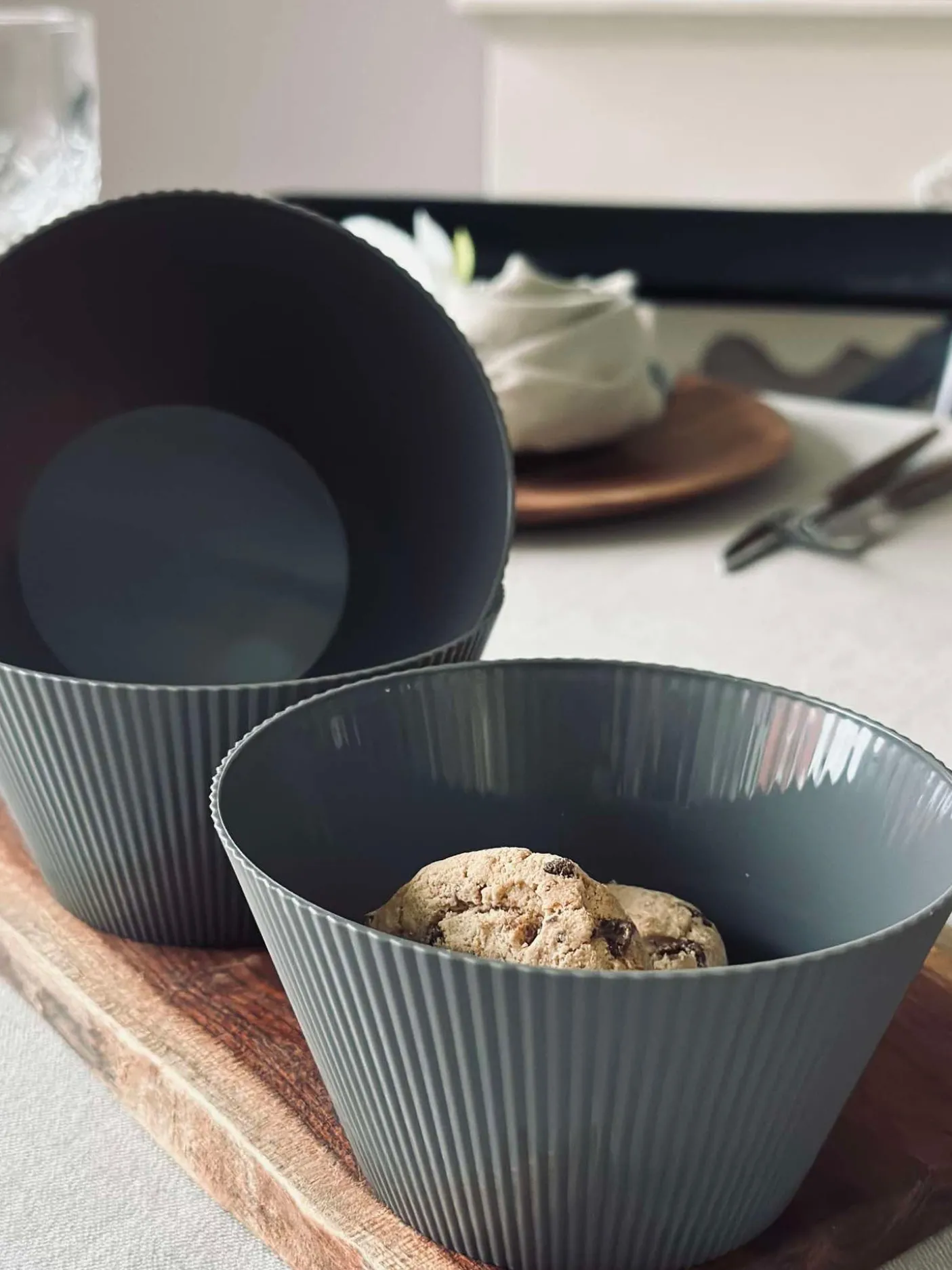 Skåle i grå plast.