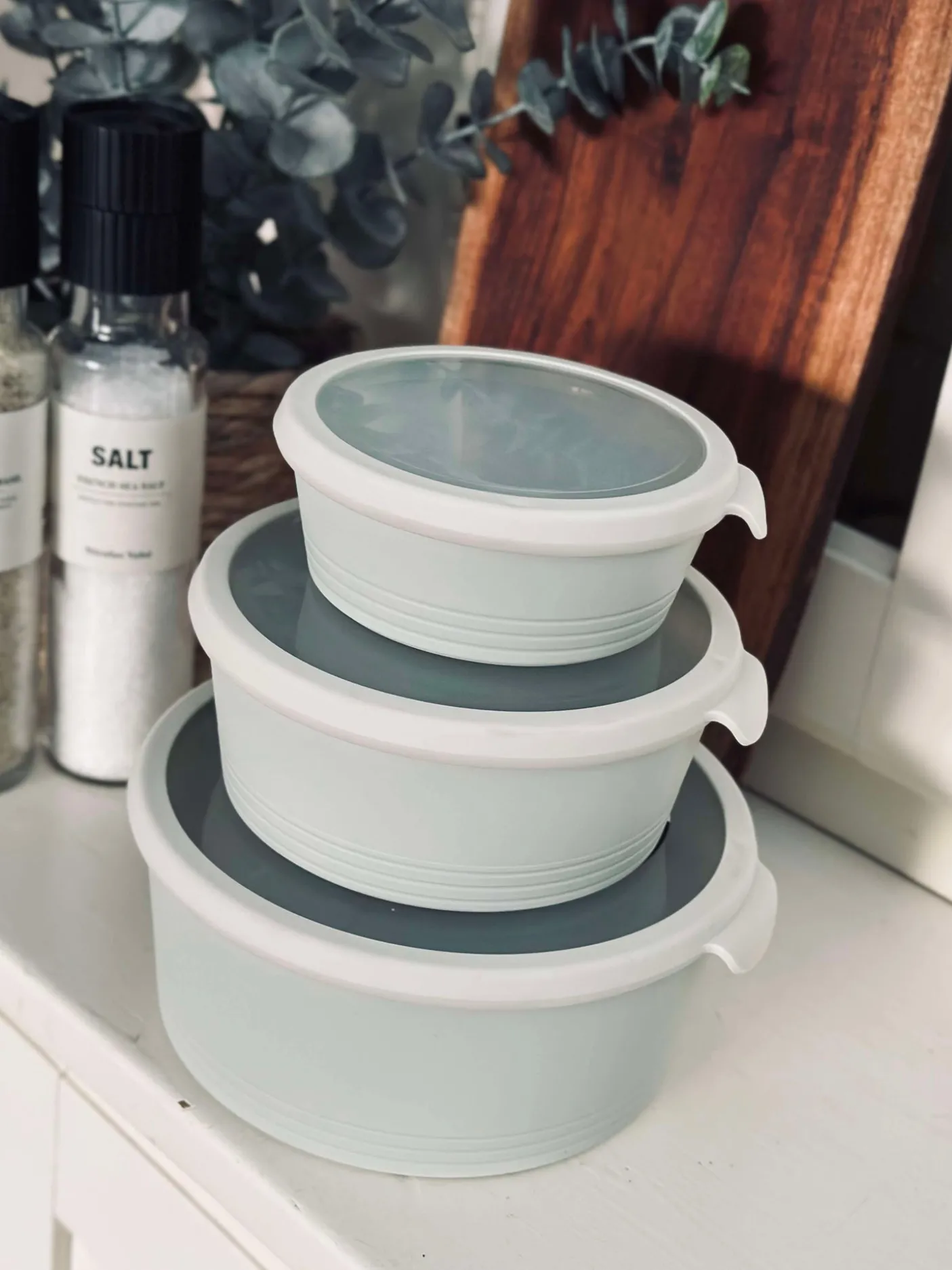 Skåle med låg – sæt af 3 skåle – Hvid