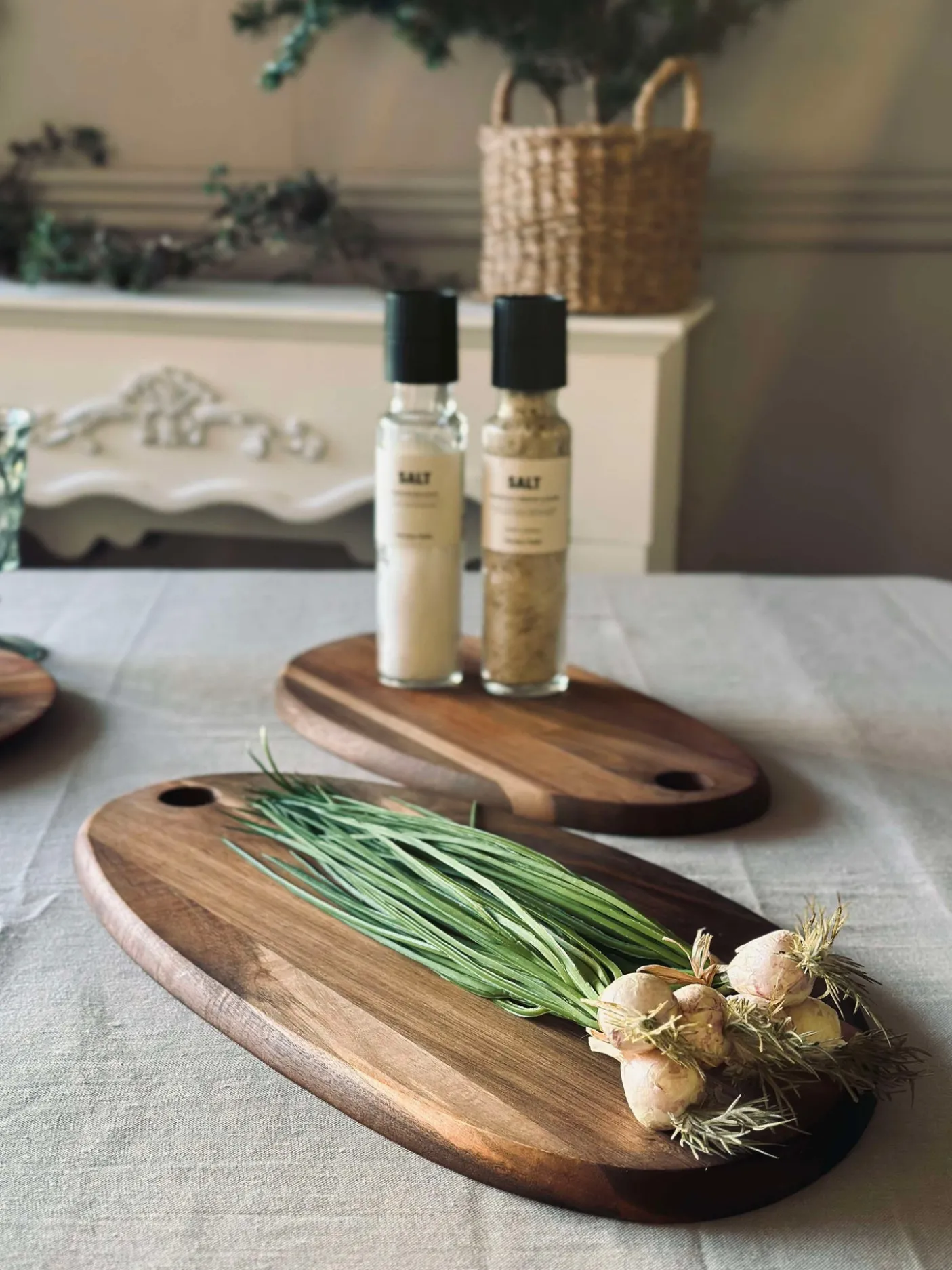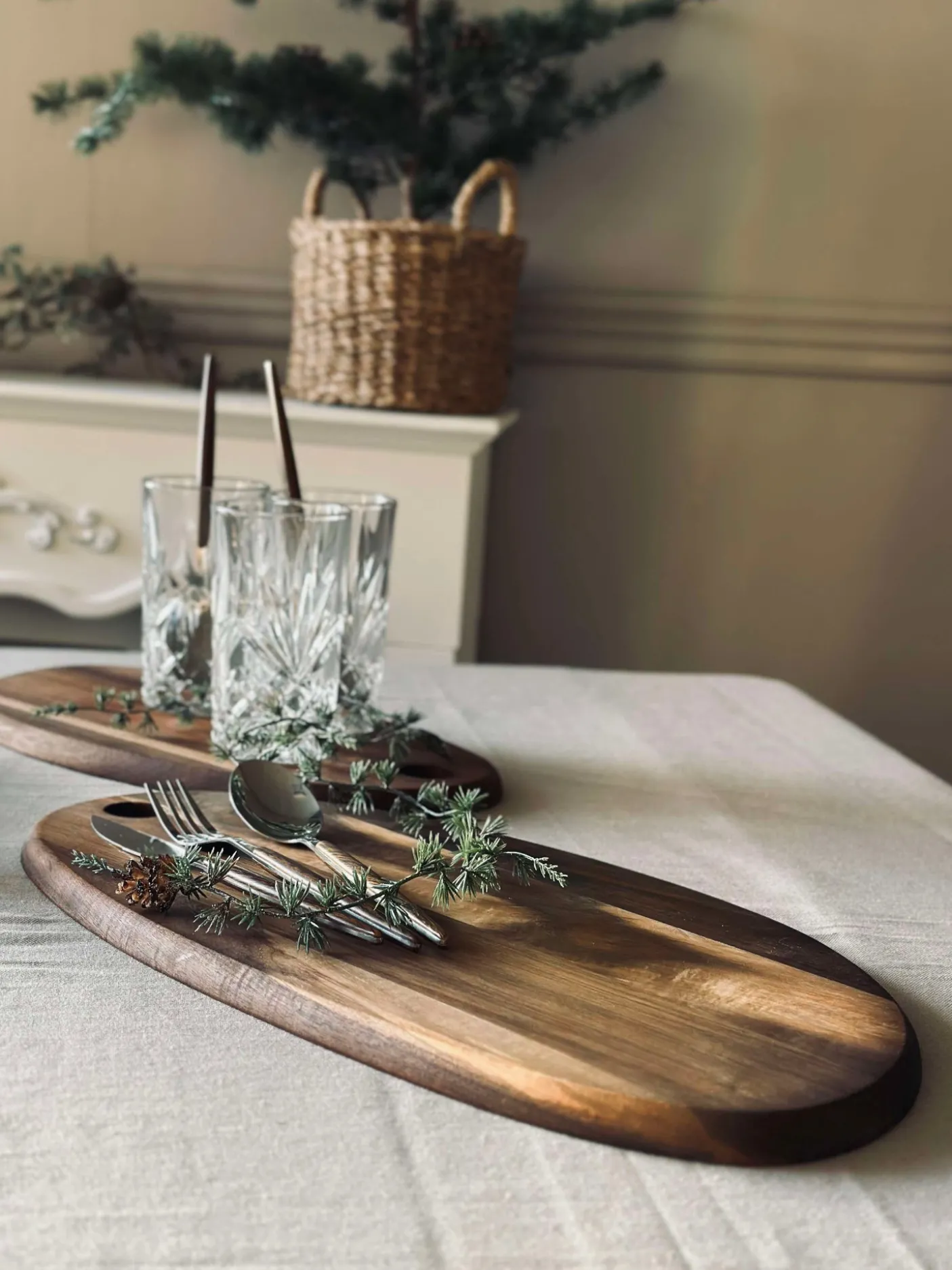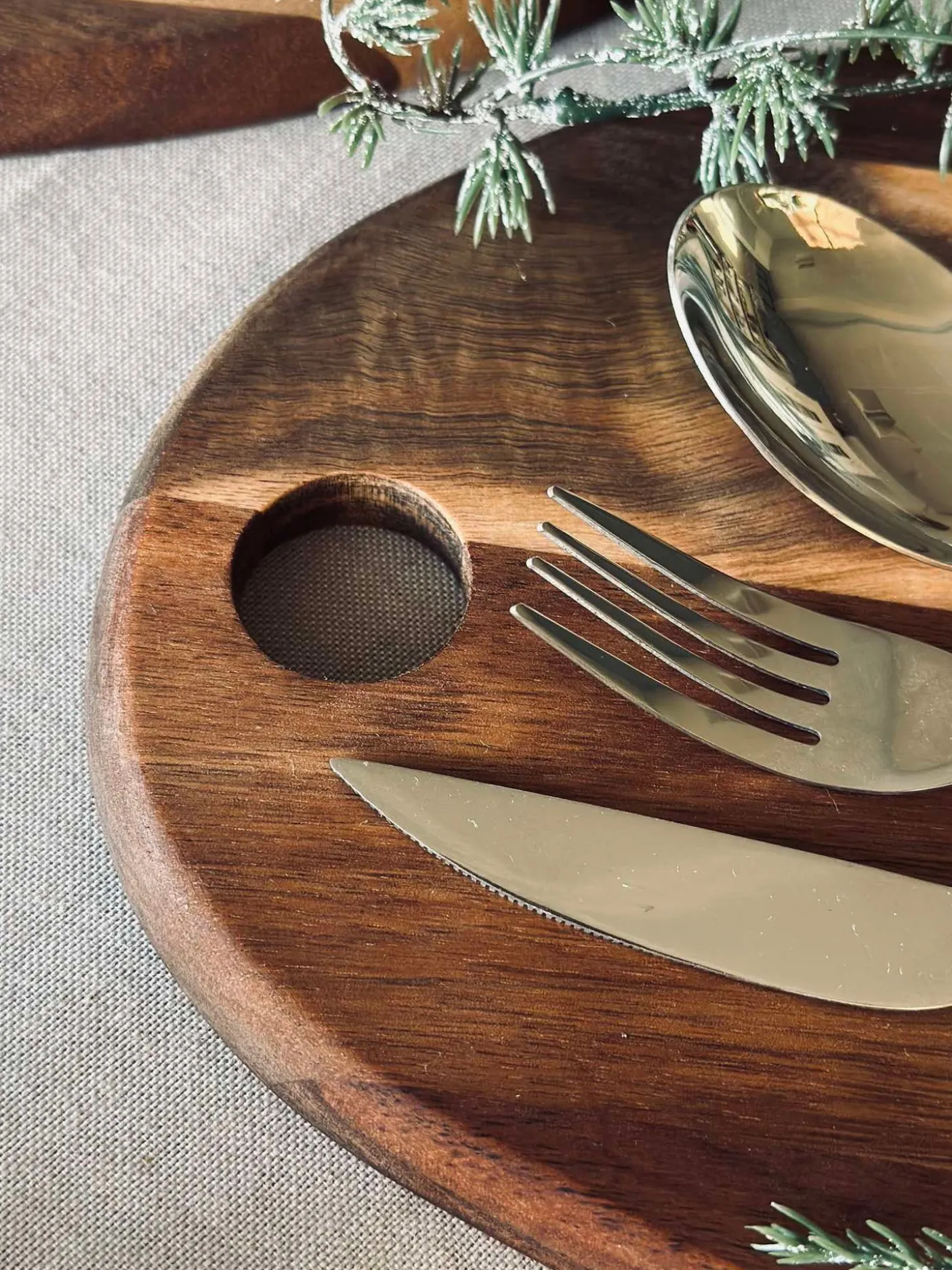 Akacietræets varme udtryk passer fint ind på køkkenbordet eller som en del af en enkel borddækning.