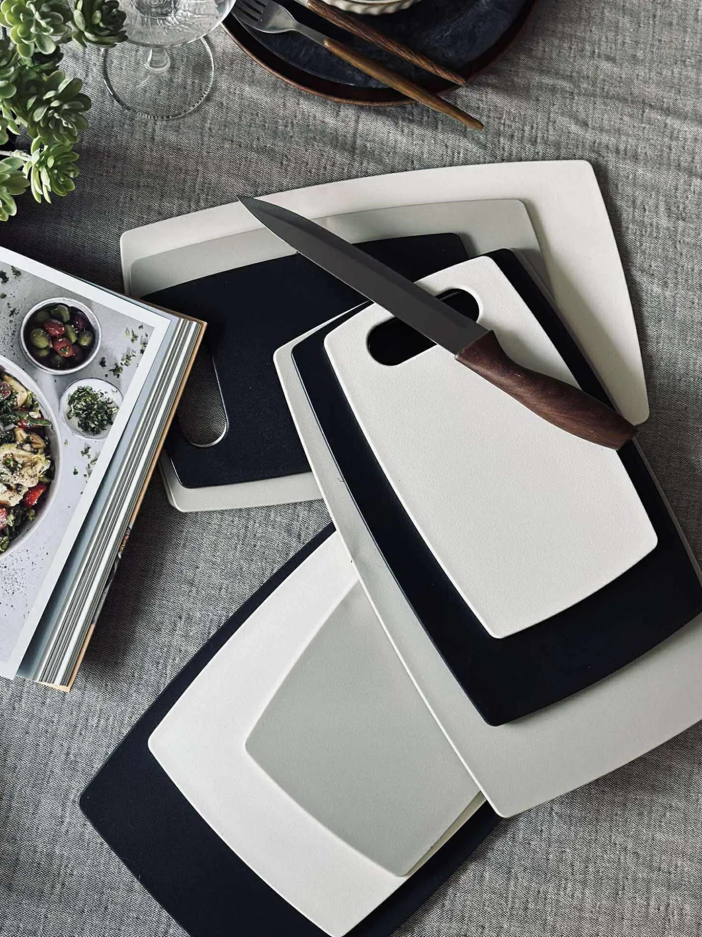 Sæt med 3 skærebrætter i plast i 3 størrelser og farver.