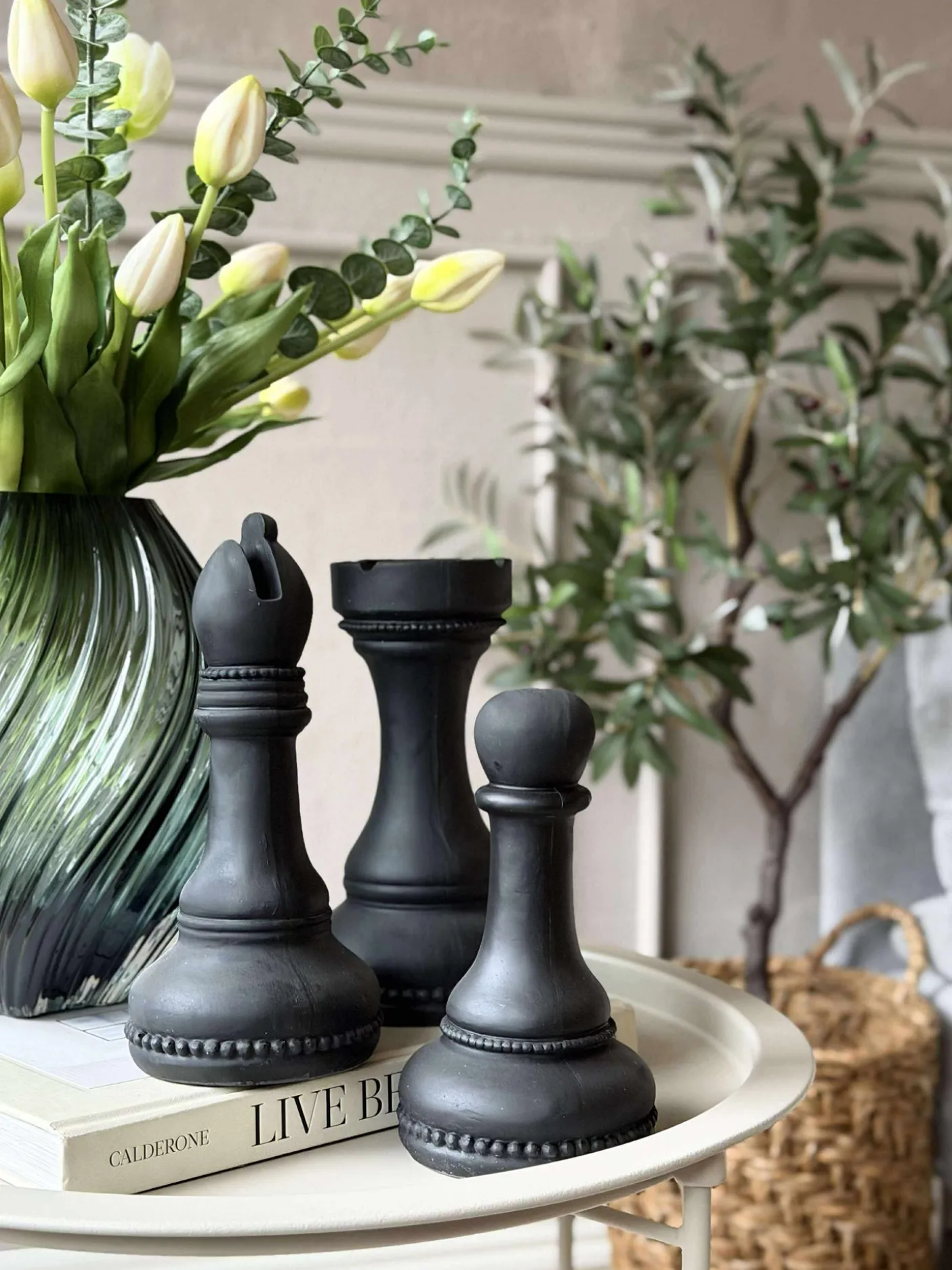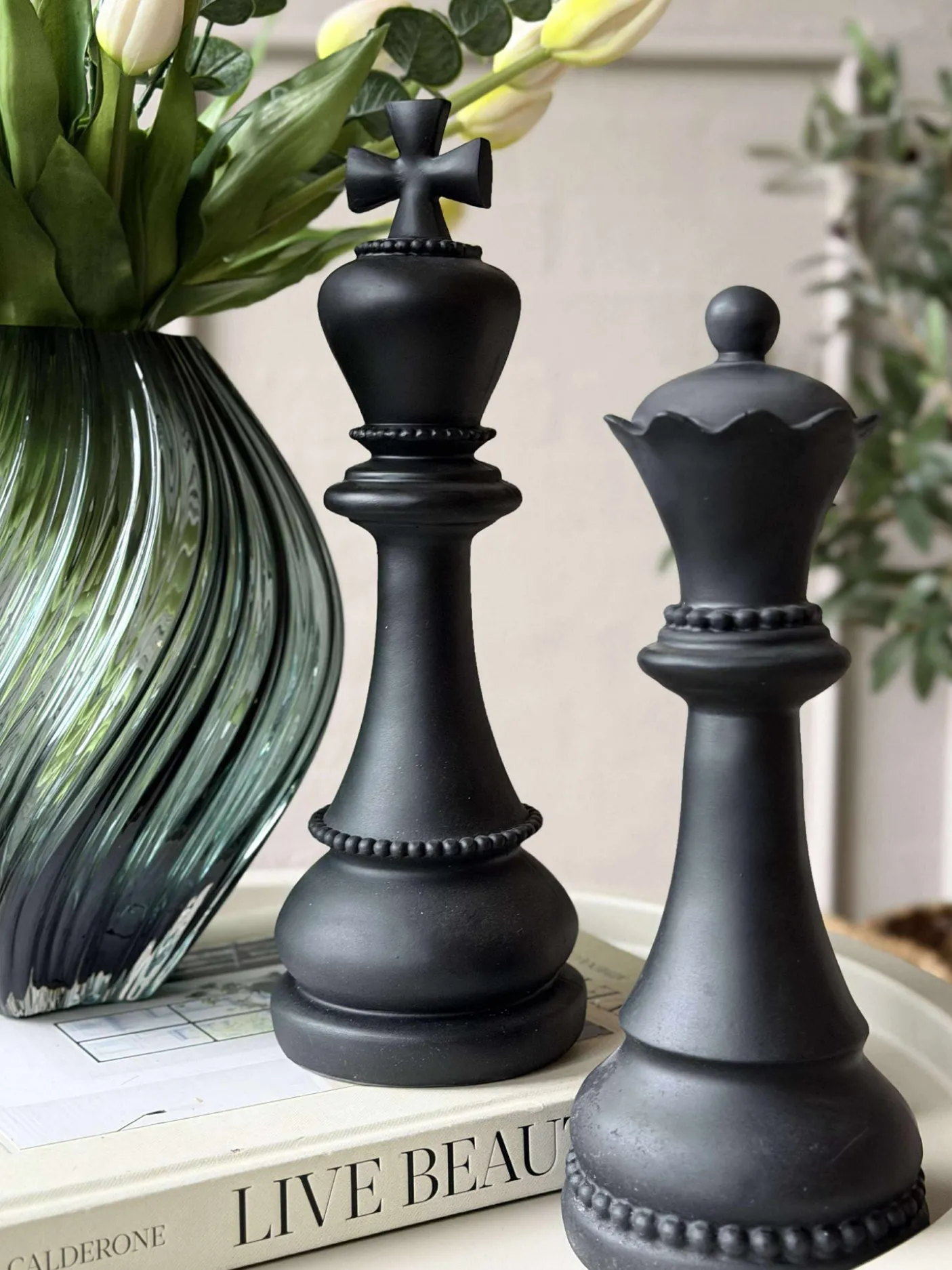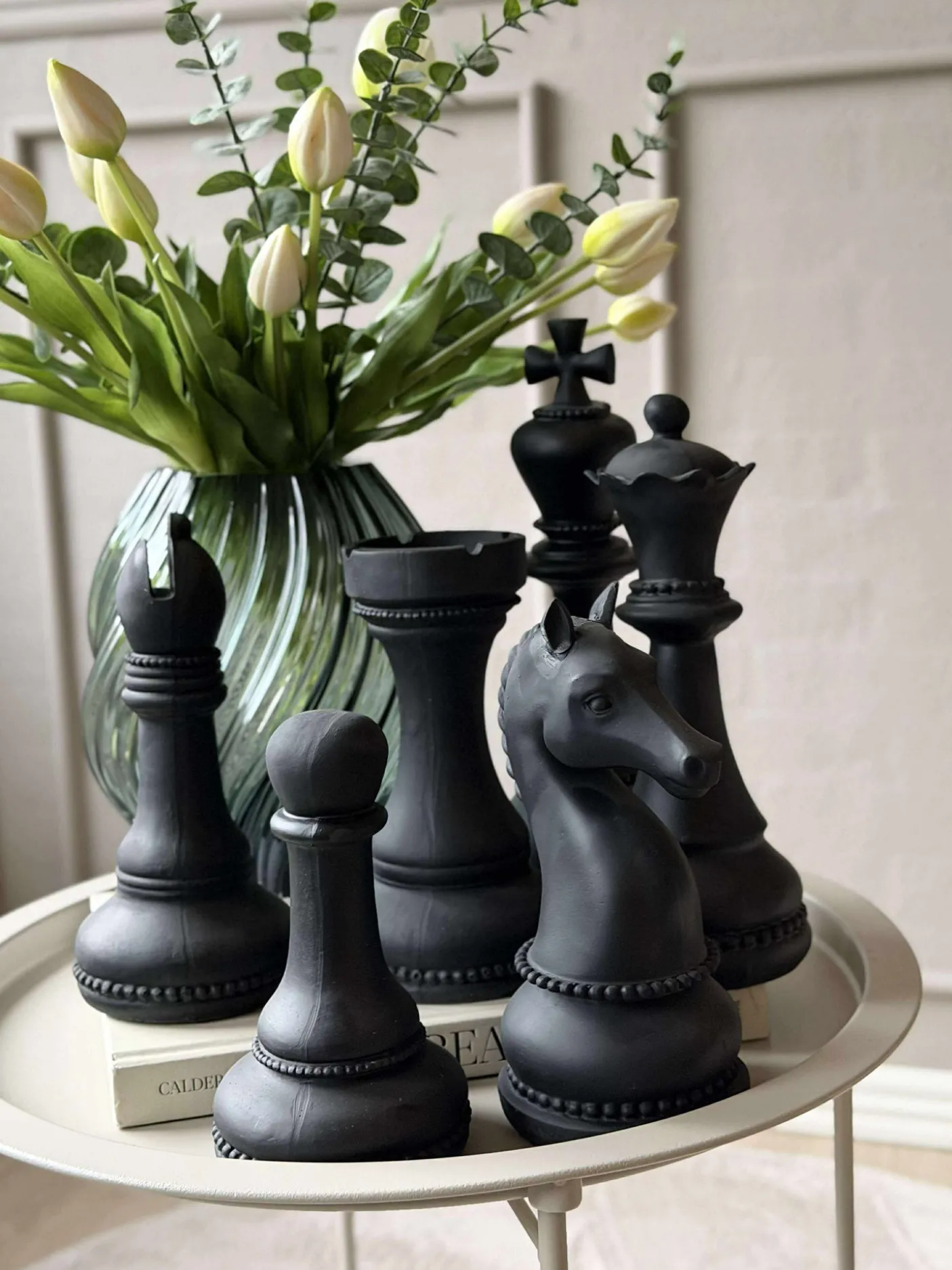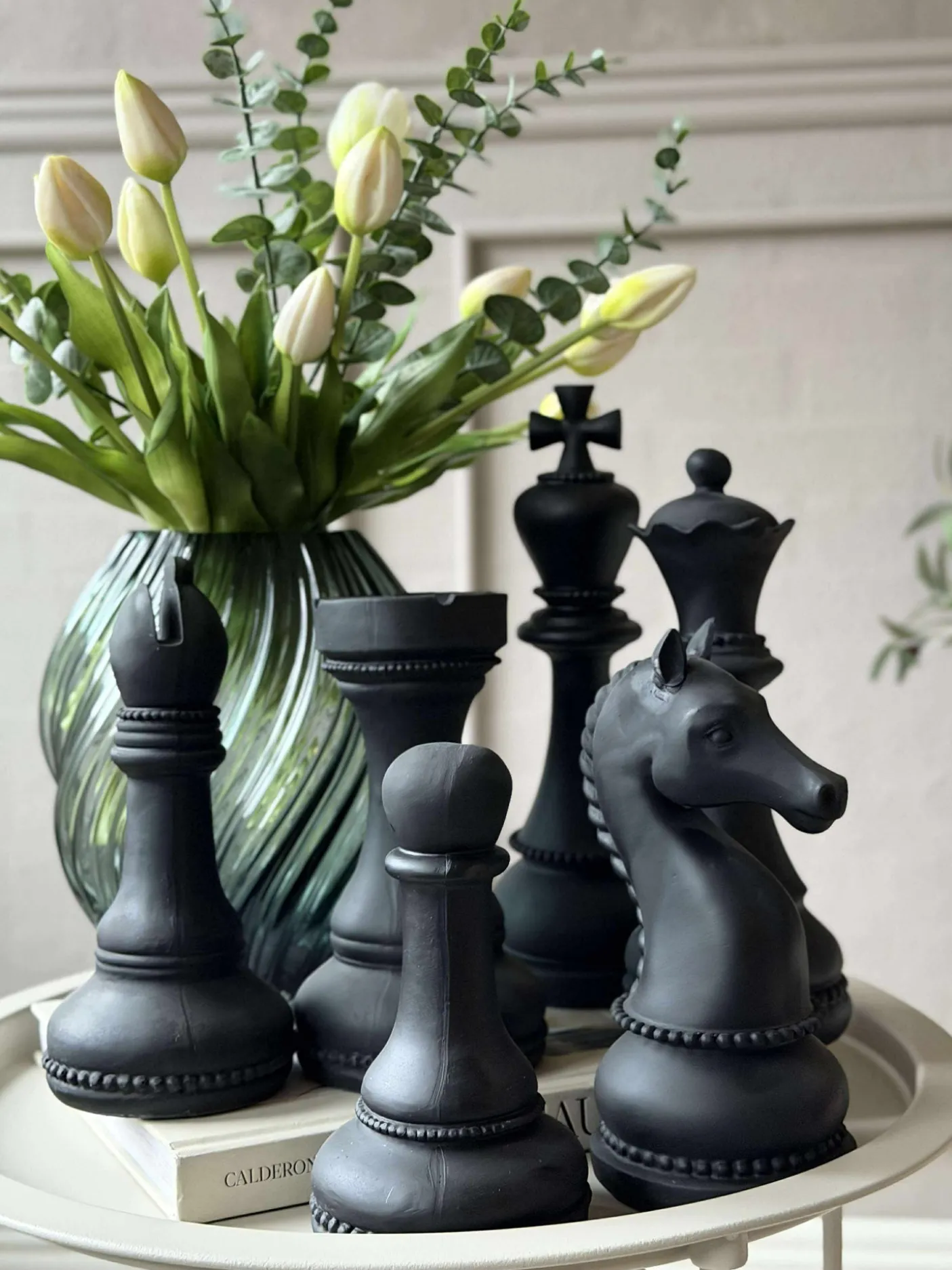 Sæt med 6 oversize skakbrikker.