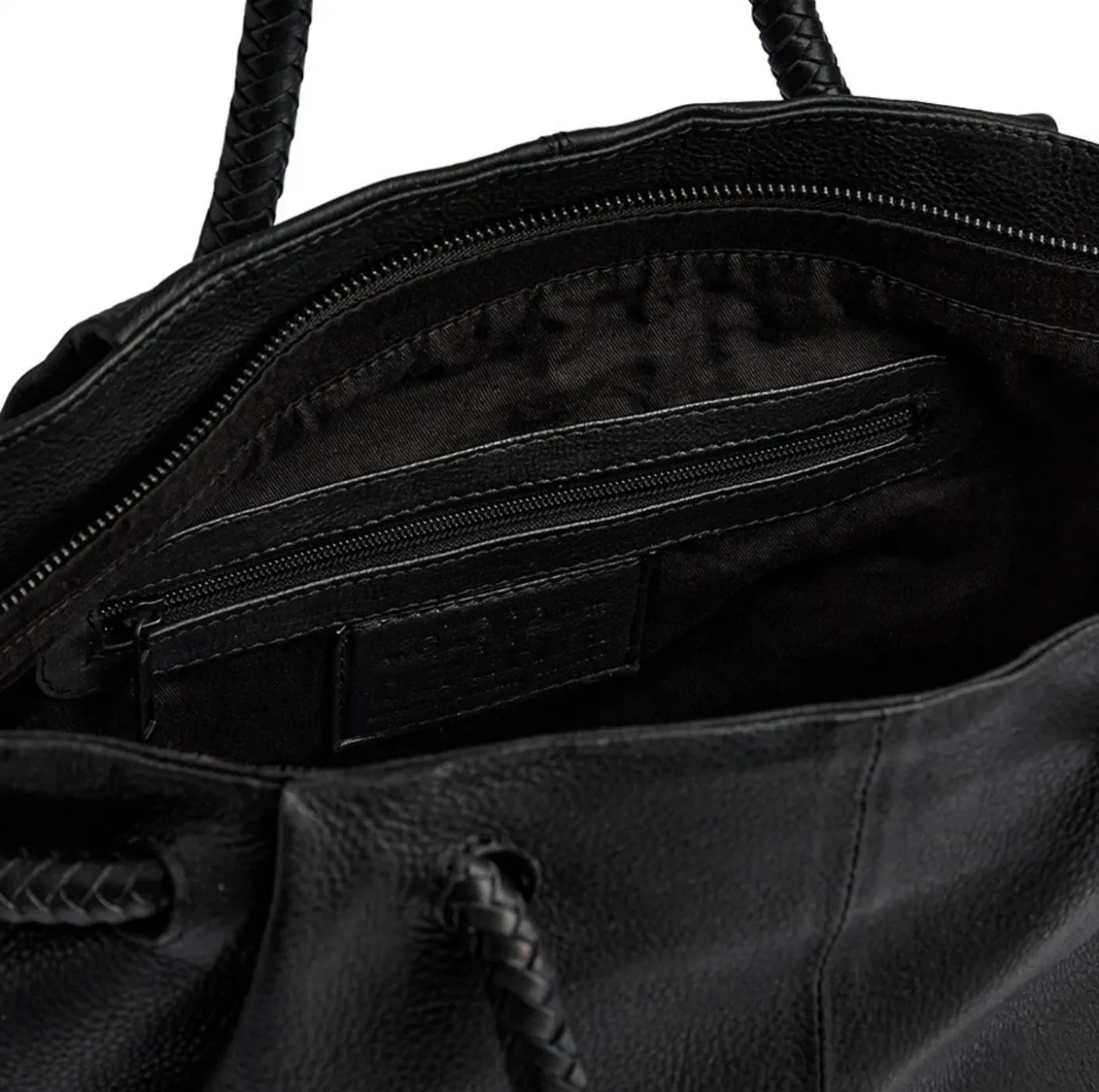 Denne skuldertaske kombinerer enkelthed og elegance med en smuk, flettet rem, der løber rundt om tasken og tilfører et eksklusivt udtryk. Det rene design og de håndværksmæssige detaljer gør tasken til en klassiker med karakter.