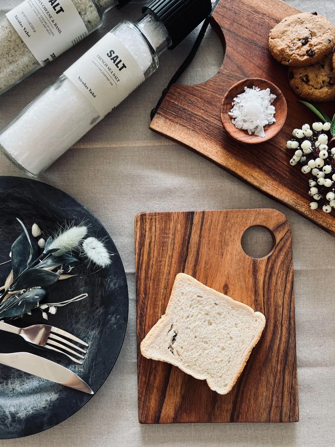 Et smørrebræt i træ, der fungerer både til smørrebrikker og som et lille skærebræt. Brættet er olieret og har et enkelt, naturligt udtryk, som passer fint til alt fra morgenbord til tapas og små serveringer.